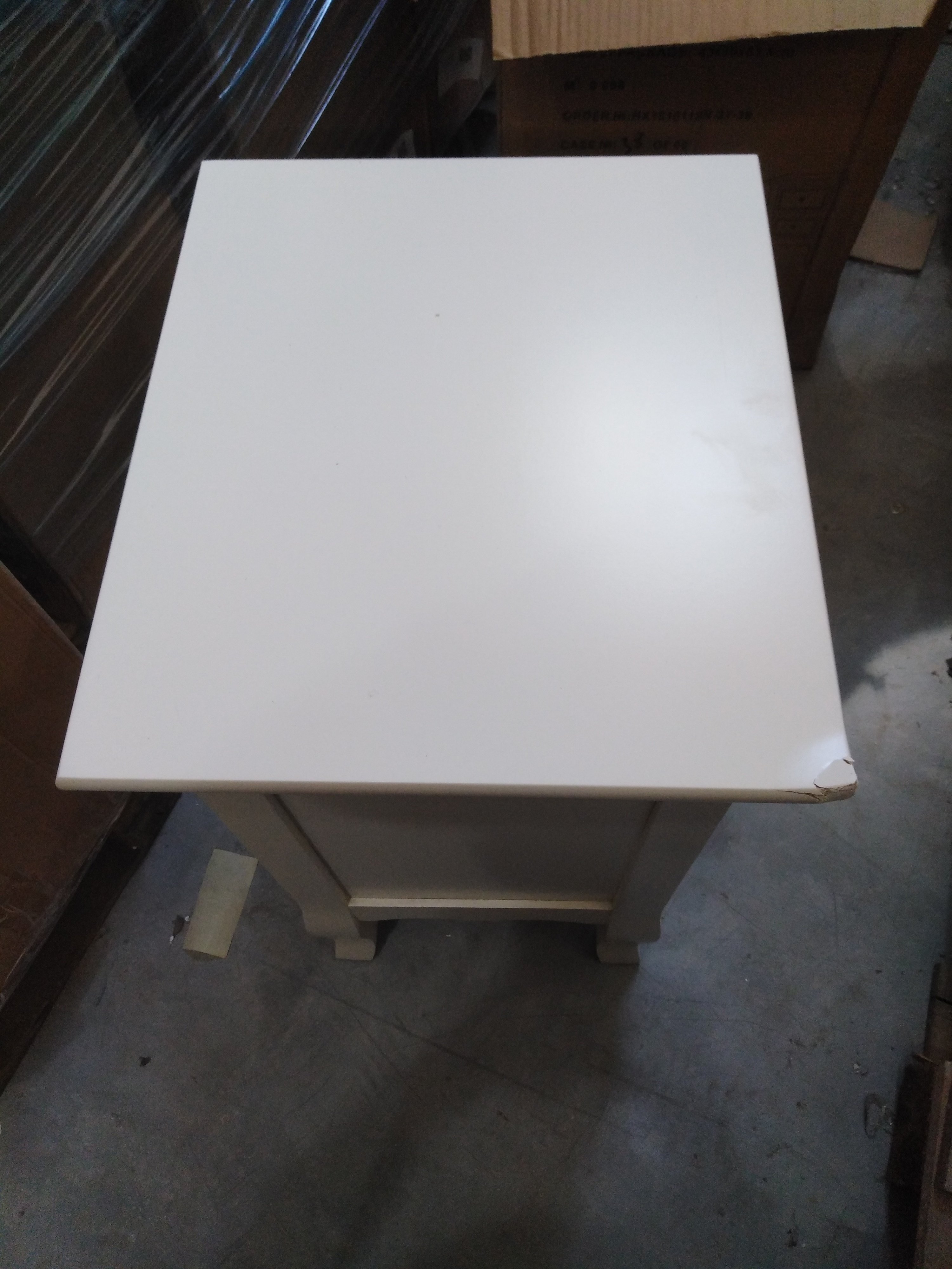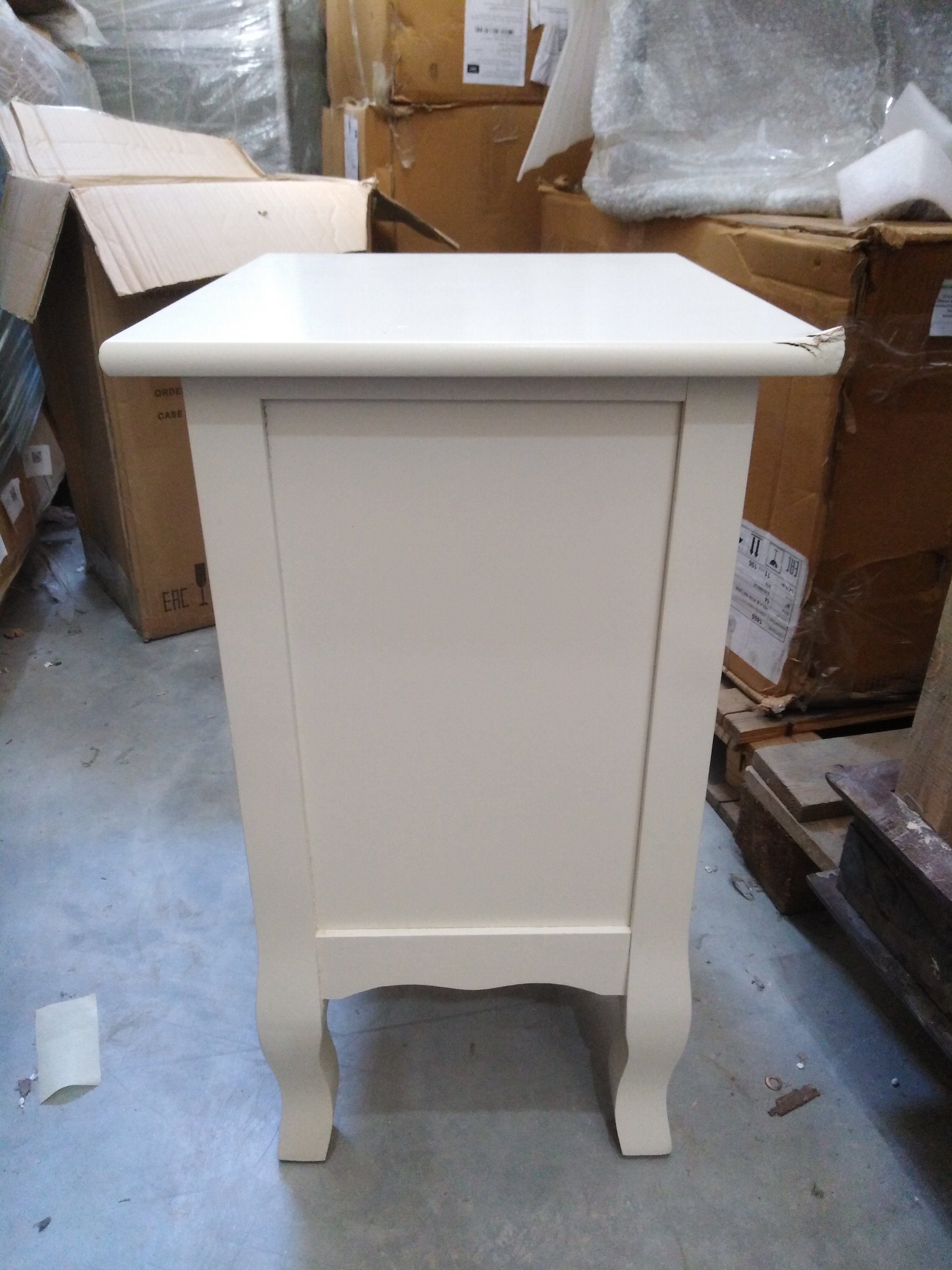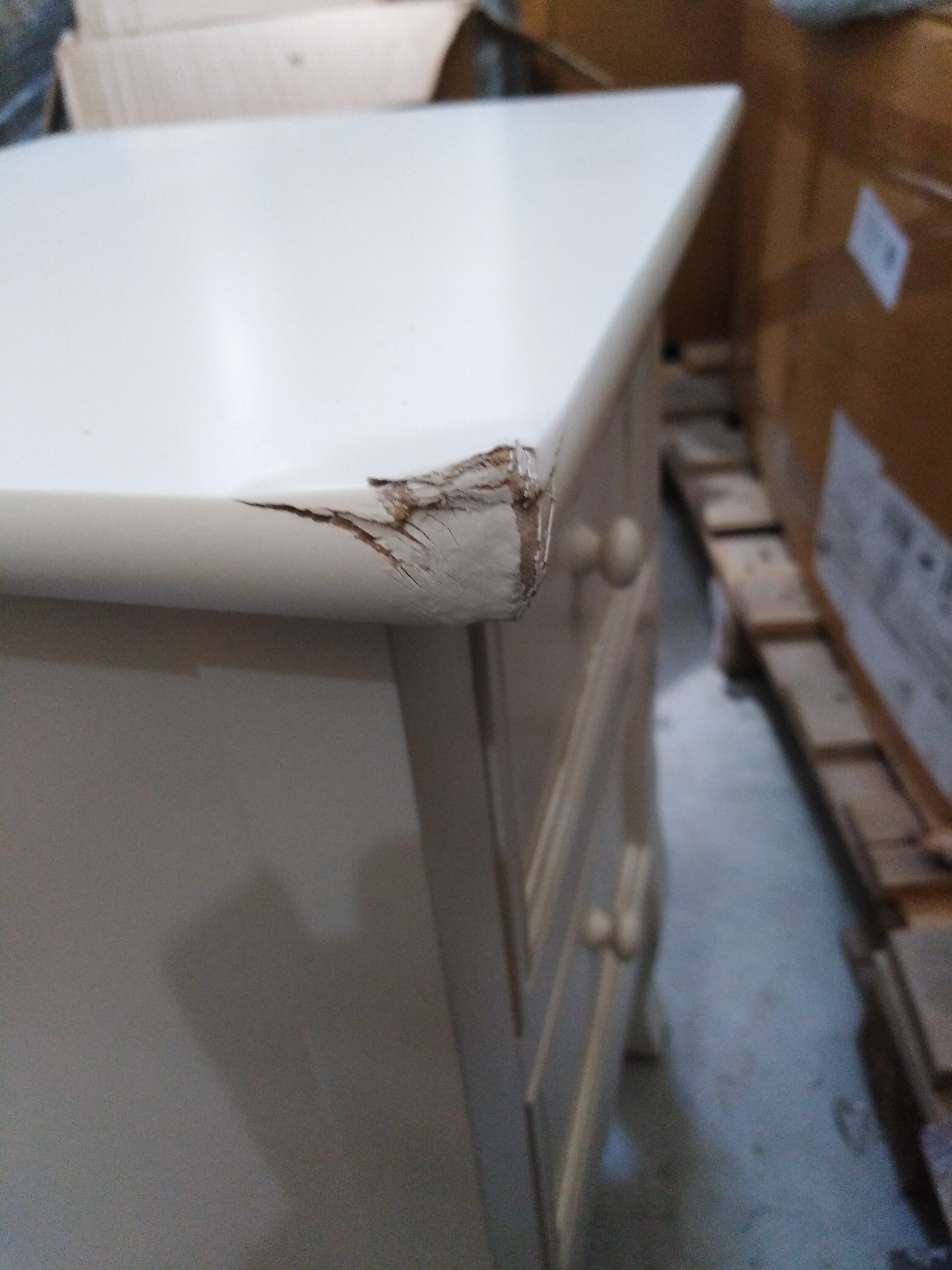 Описание дефекта: Нарушние ЛКП на деревянных частях тумбы. Расслоение массива дерева а верхней крышке