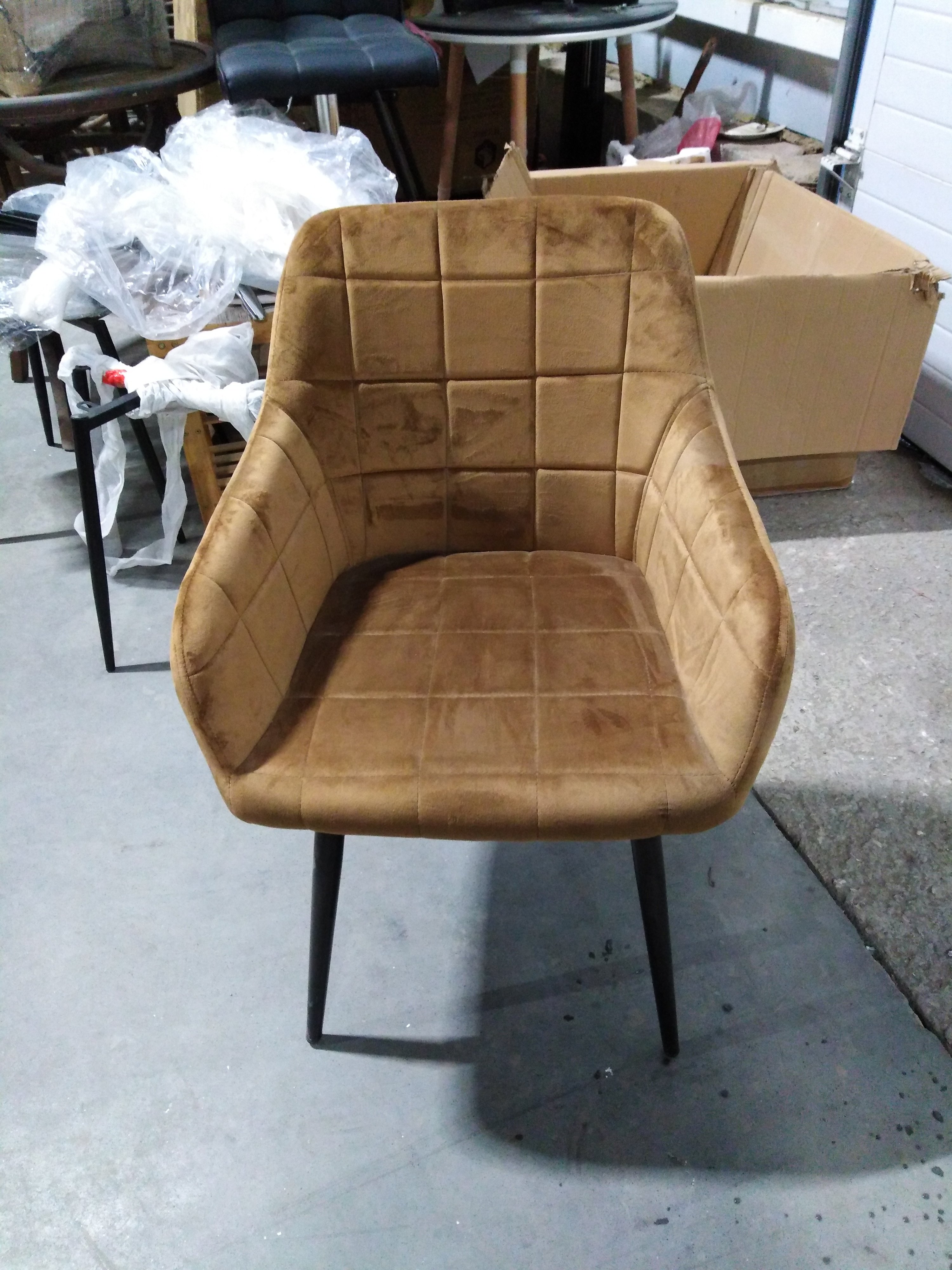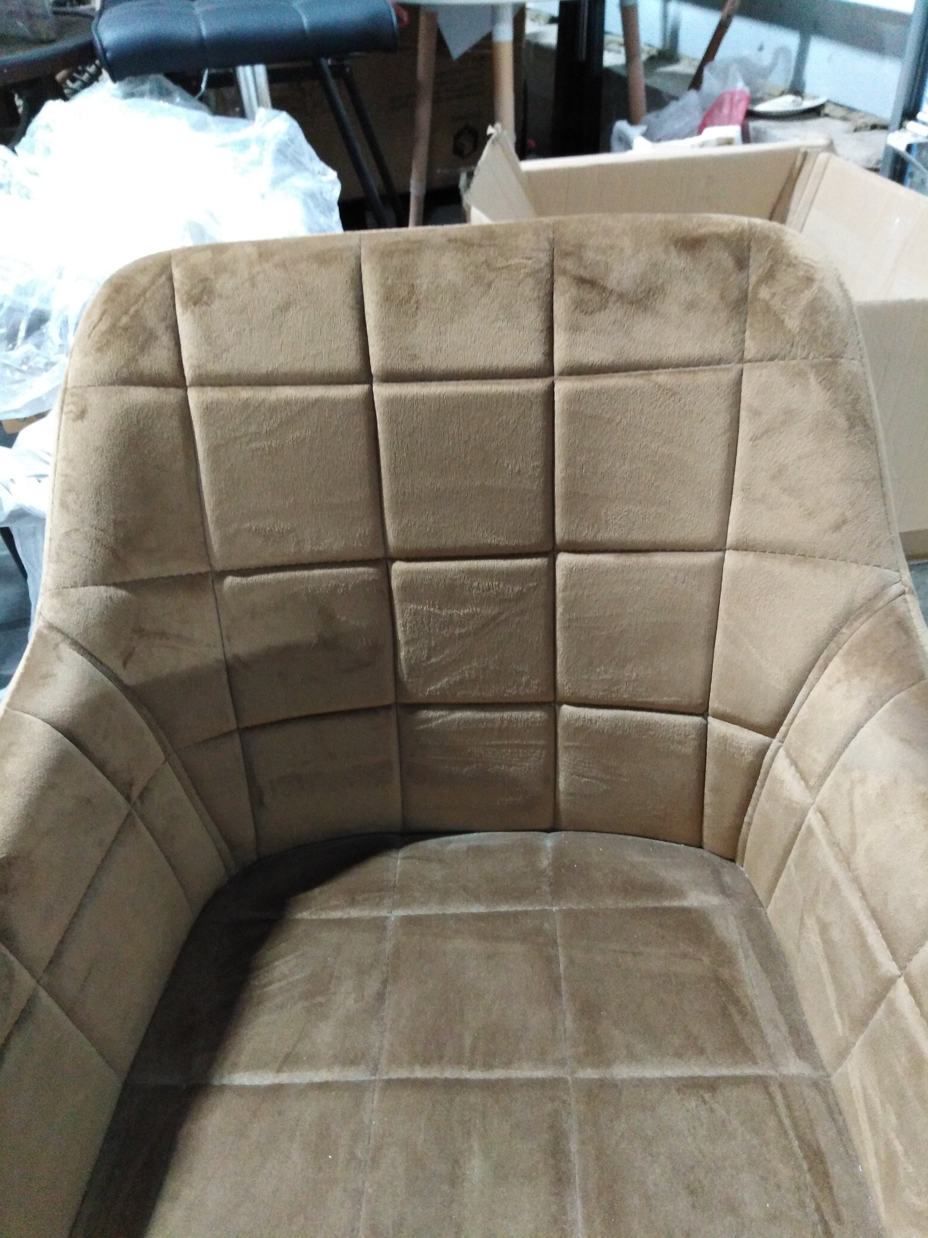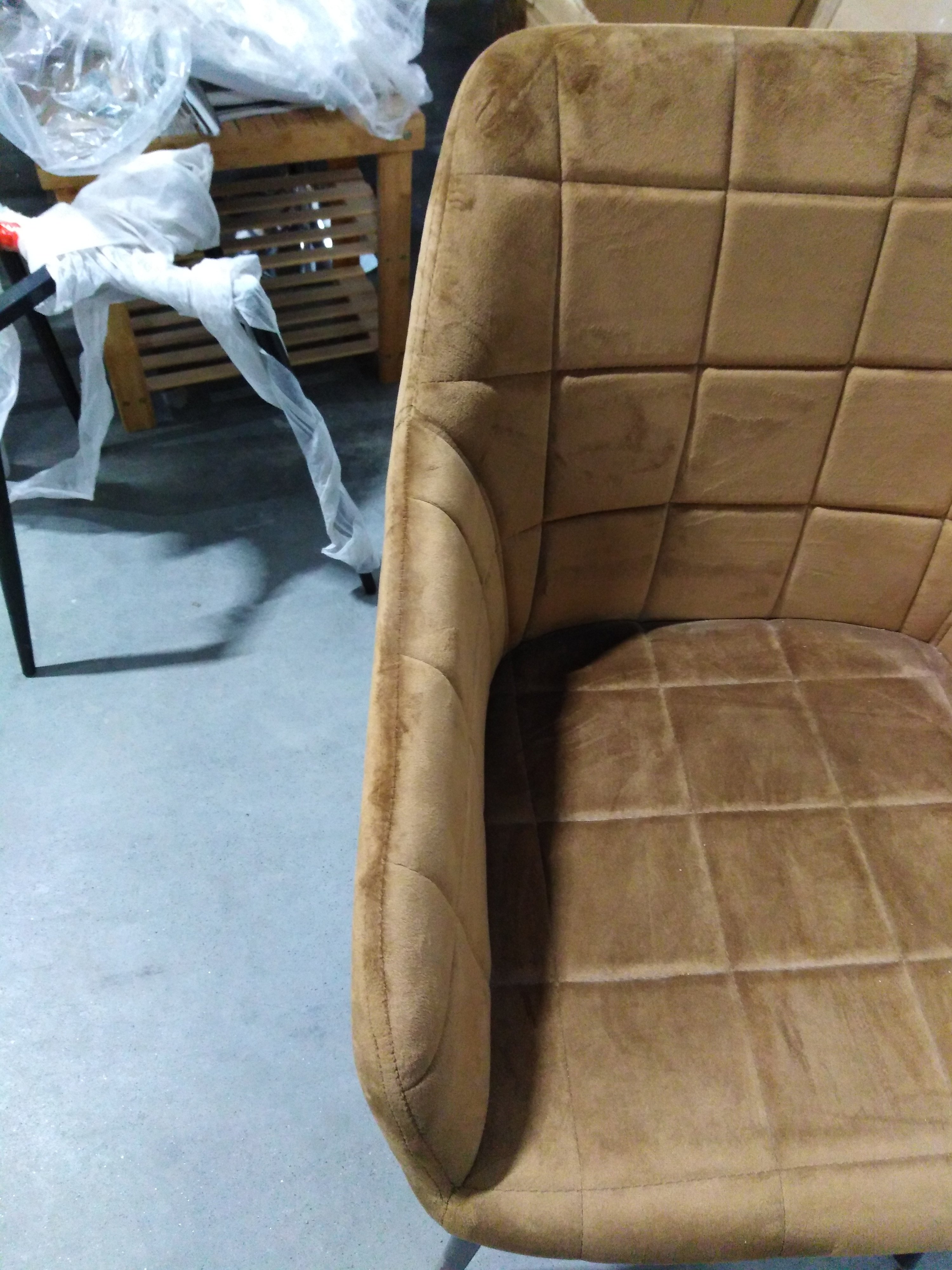 Описание товара без дефектов: Кресло BEATA из коллекции Modern сделает ваш интерьер не только стильным, но по-домашнему уютным и комфортным. Оно хорошо впишется в обстановку гостиной, кухни или столовой. Простая форма, стеганая обивка благородного цвета и изящные металлические ножки придают креслу особую привлекательность, оригинальность и визуальную легкость. Эргономичная спинка, мягкое сиденье и высокие подлокотники позволяют удобно расположиться для продолжительного отдыха. Мягкая, бархатистая и приятная на ощупь поверхность сиденья и спинки обеспечит вам максимальный комфорт и уют. Прочные металлические ножки делают модель крепкой и основательной. Ткань обивки коричневого цвета обладает повышенной износостойкостью, способна на долгие годы сохранить свой первоначальный цвет, не протираясь и не выцветая. Кресло подойдёт для гостиной, для кухни или для спальни. Кресло очень простое в сборке, инструкция по сборке прилагается.