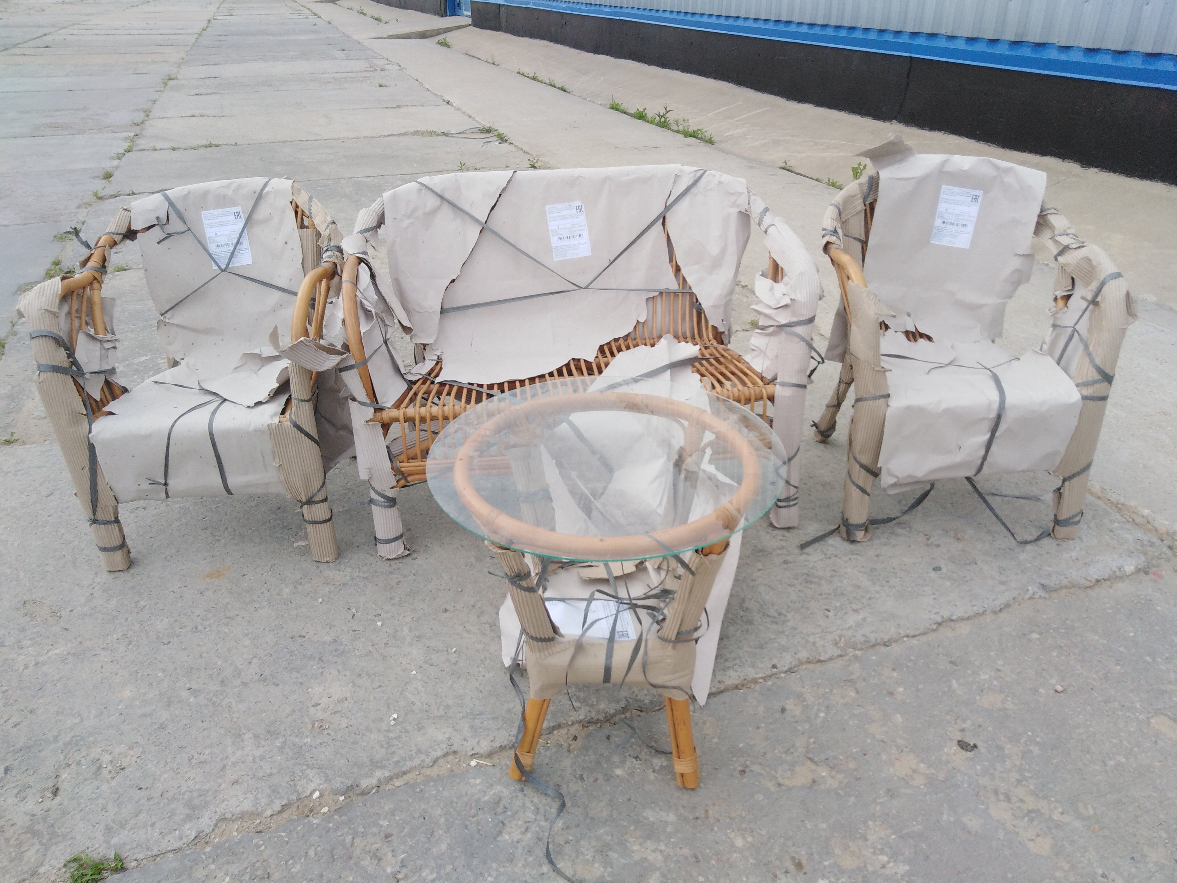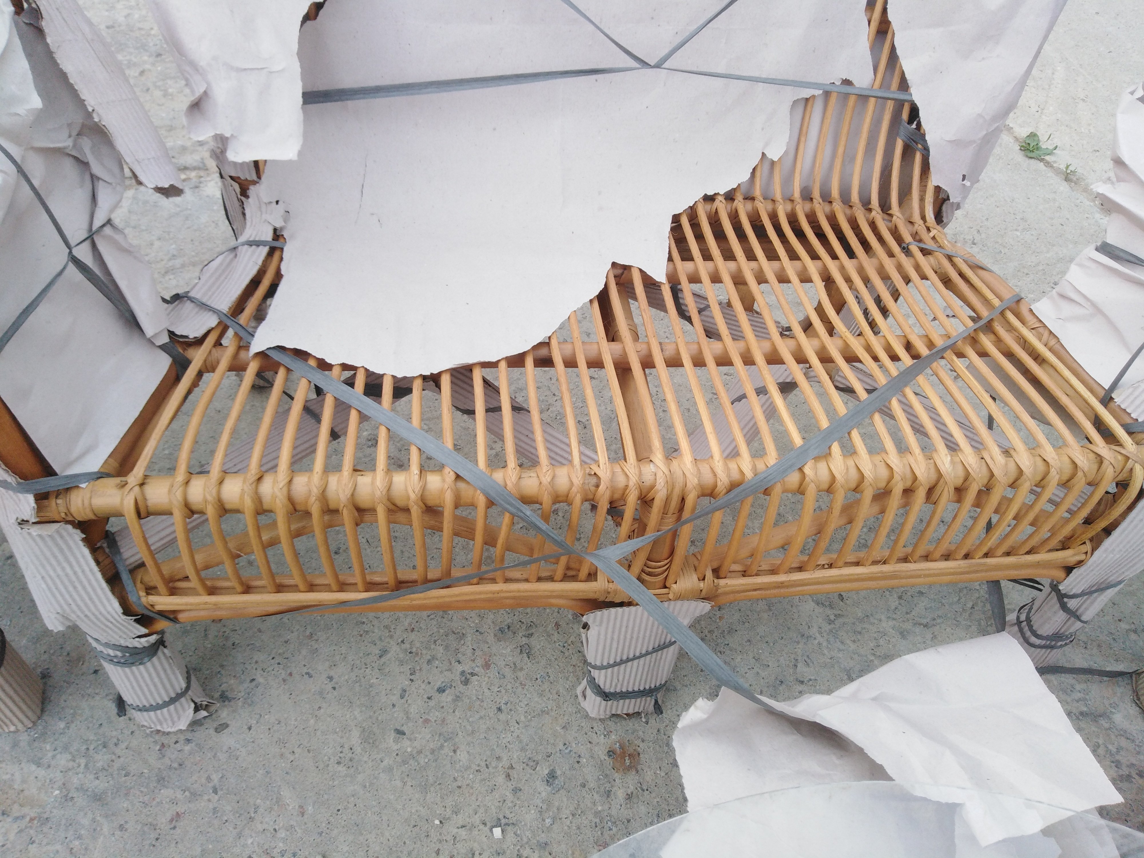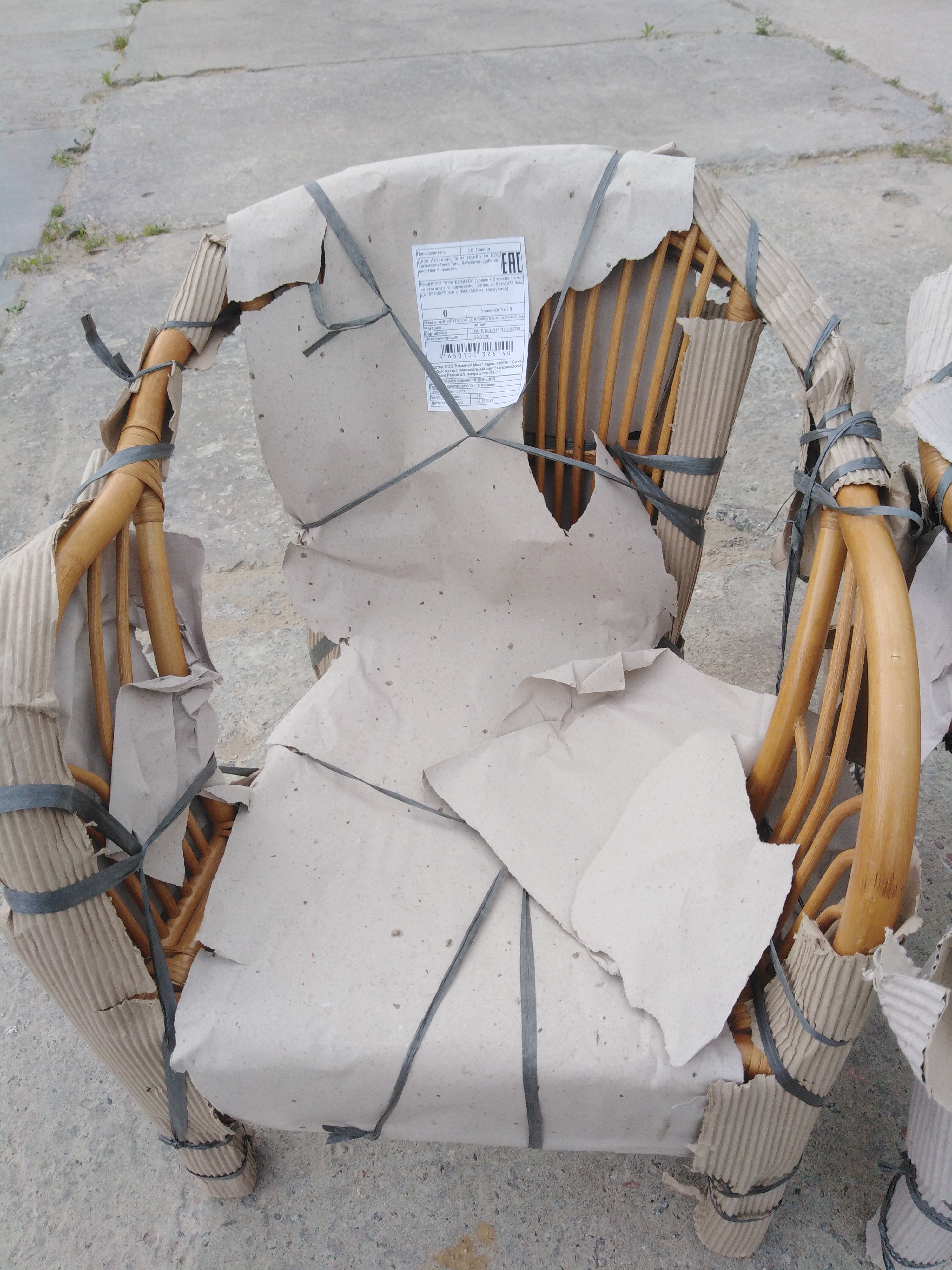 Описание дефекта: при вскрытии упаковки - бумаги обнаружили нарушение ротанга и на кресле трещины