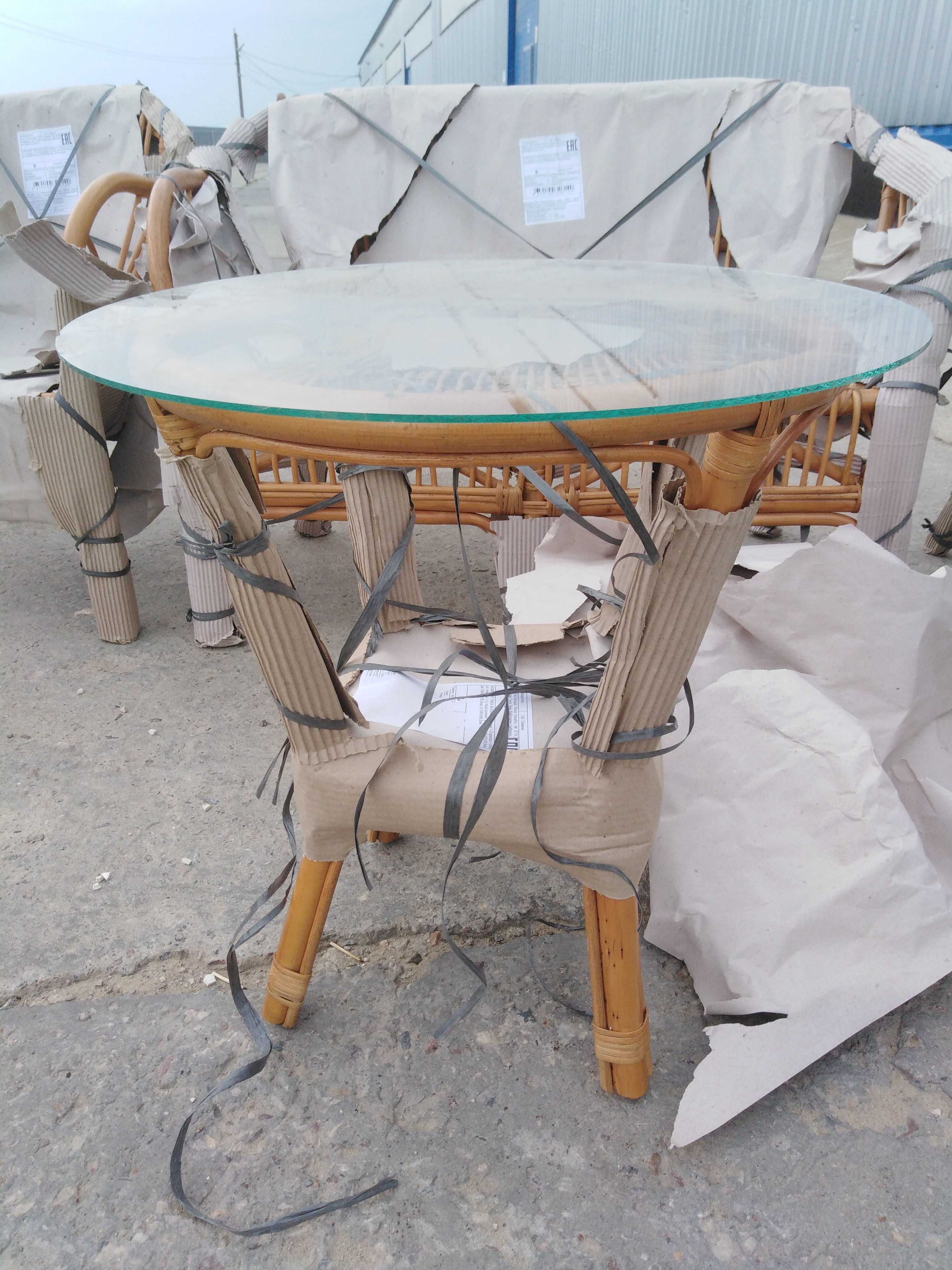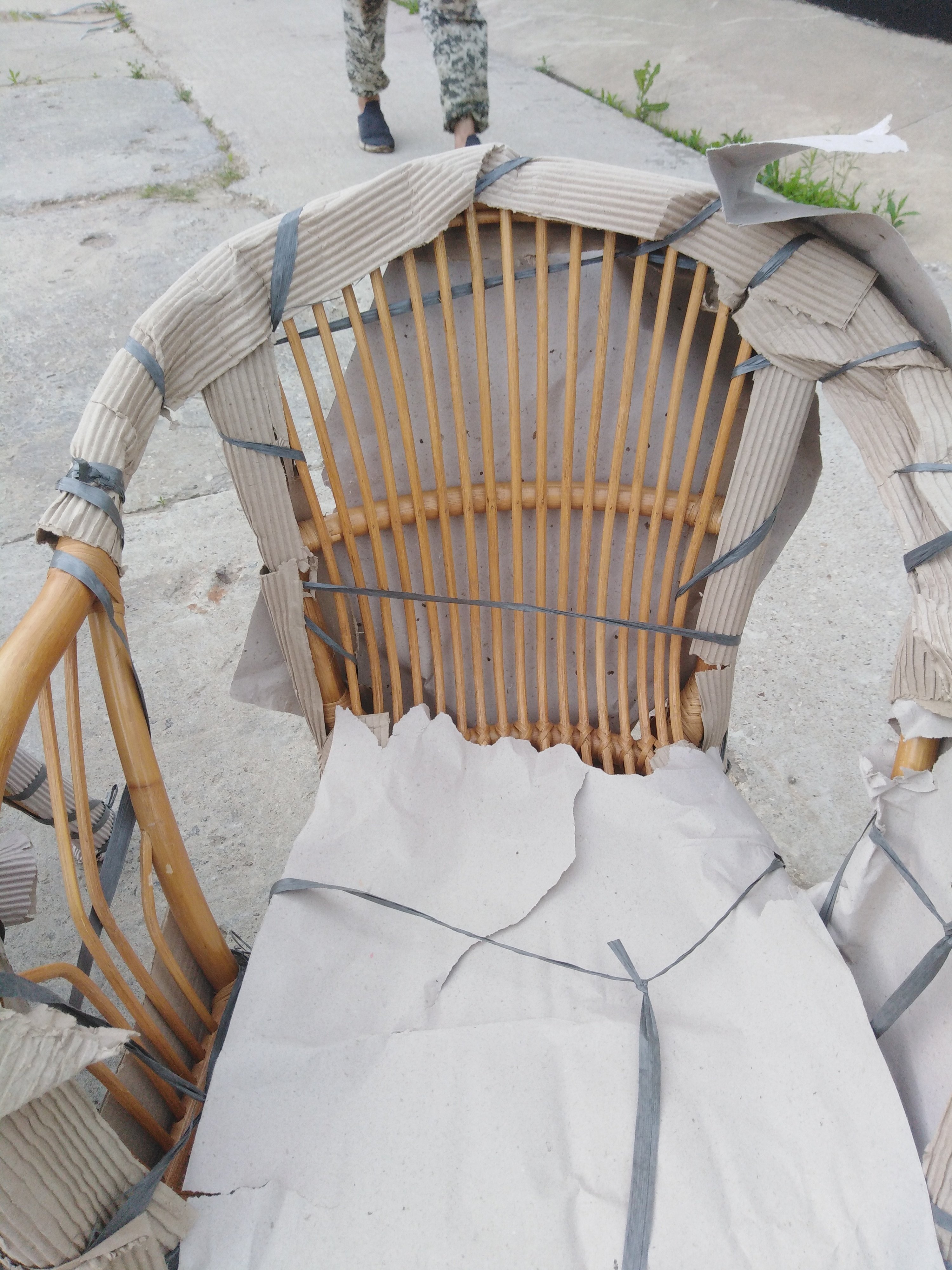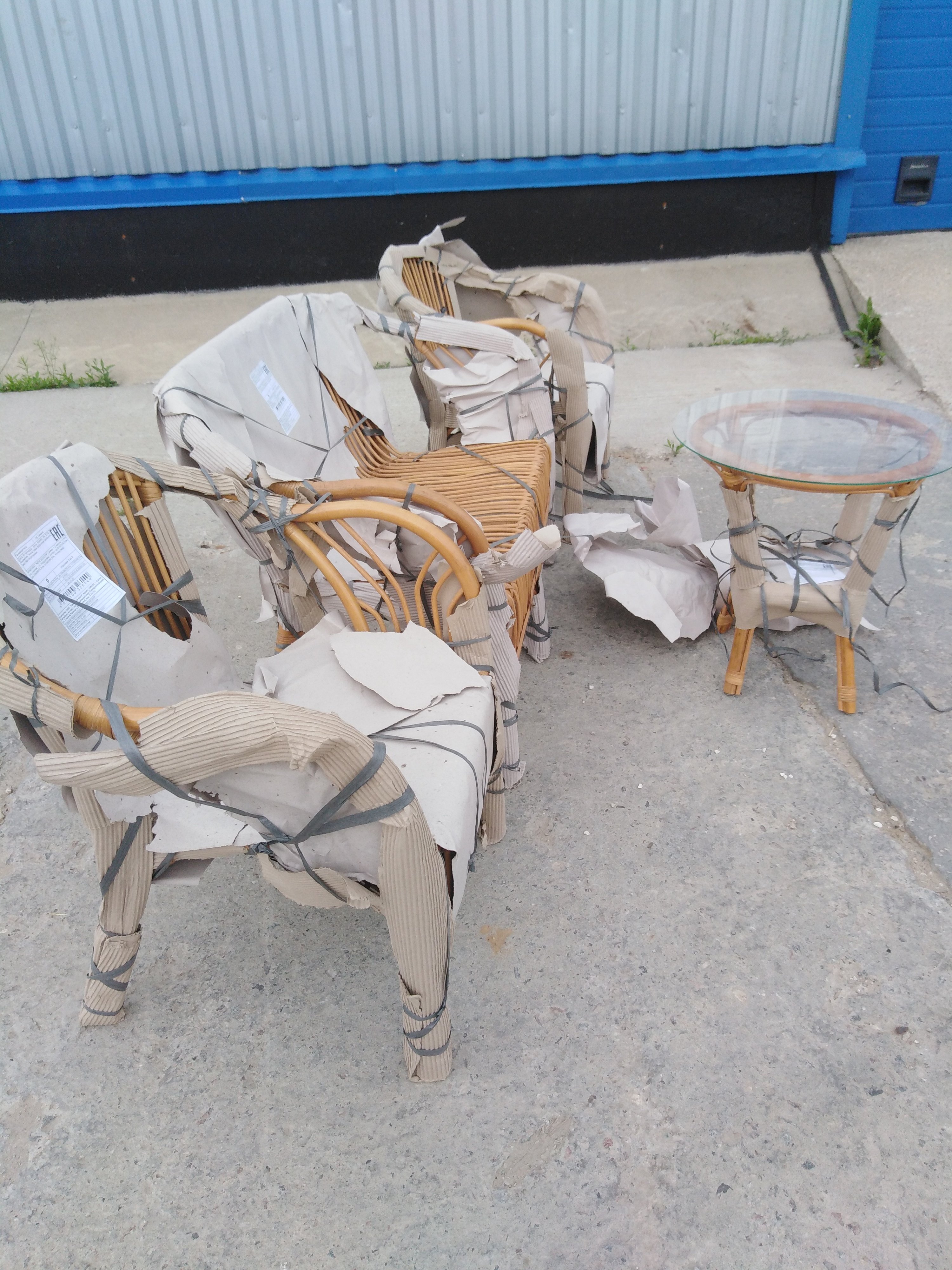 Описание дефекта: при вскрытии упаковки - бумаги обнаружили нарушение ротанга и на кресле трещины