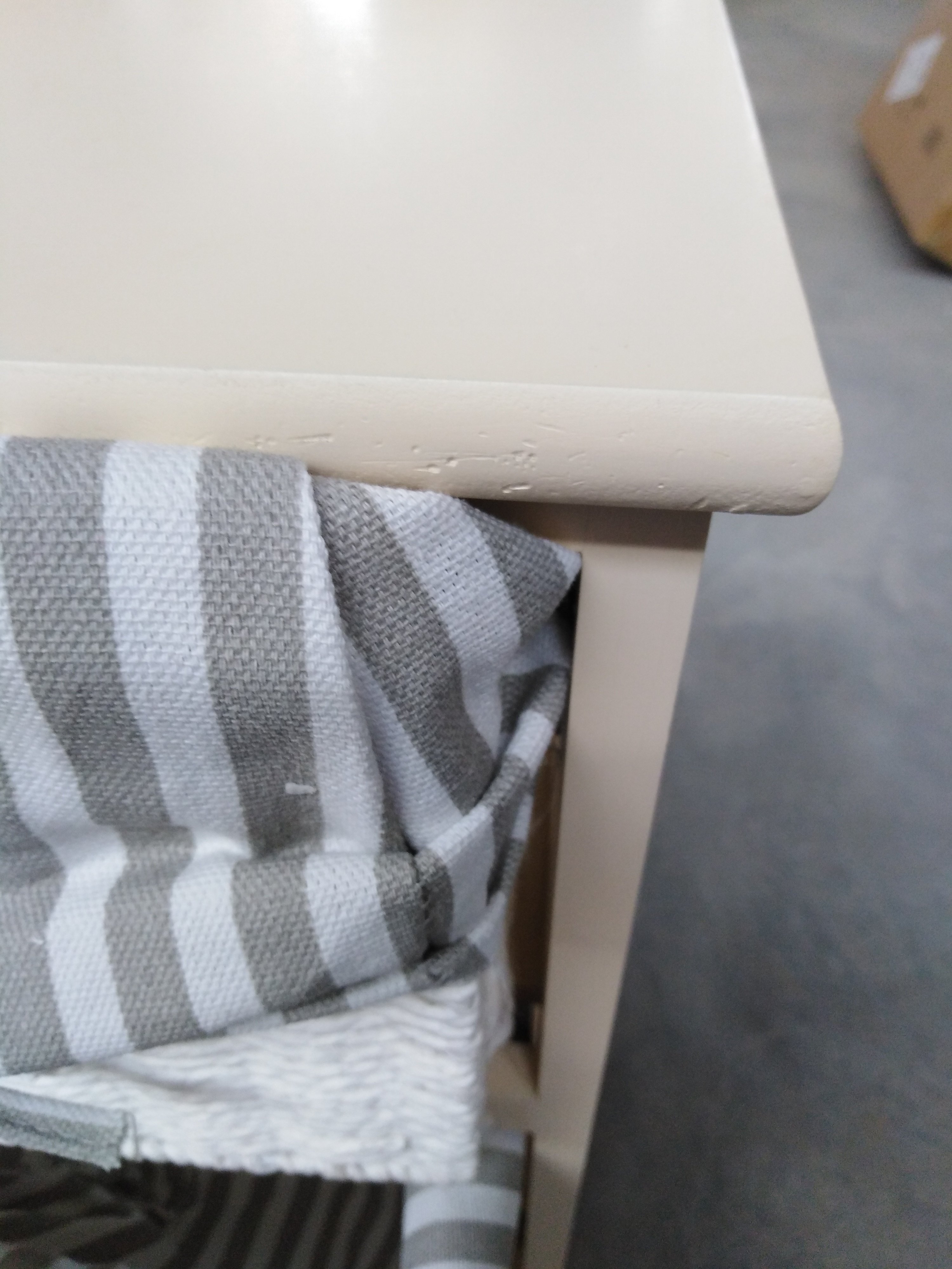 Описание дефекта: Расслоение ЛКП на боковой части тумбы. Имеются сколы на деревянных частях
