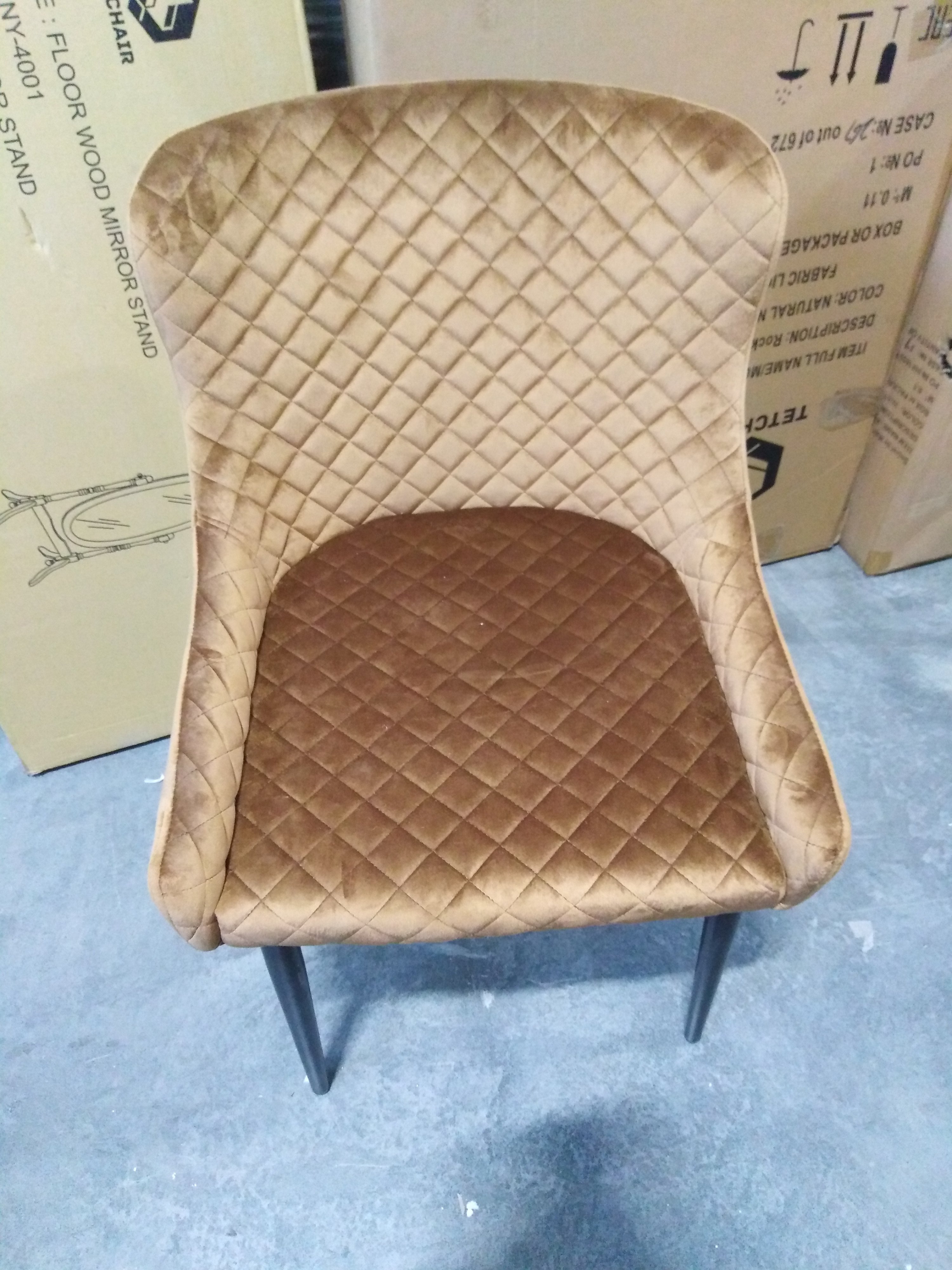 Описание товара без дефектов: Уникальный силуэт стула ELI из коллекции Modern – это удачное сочетание простоты и элегантности. Он хорошо впишется в обстановку гостиной, кухни или столовой. Простая форма, стеганая обивка благородного цвета и изящные металлические ножки придают стулу особую красоту и привлекательность. Удобные и обволакивающие формы спинки и сиденья обеспечат комфорт на протяжении длительного времени. Прочные металлические ножки делают модель крепкой и основательной. Тканевая обивка выглядит дорого, стильно, элегантно. Ее бархатистая и приятная на ощупь поверхность притягивает к себе мягкостью и изысканной красотой. Ткань обивки коричневого цвета обладает повышенной износостойкостью, способна на долгие годы сохранить свой первоначальный цвет, не протираясь и не выцветая.