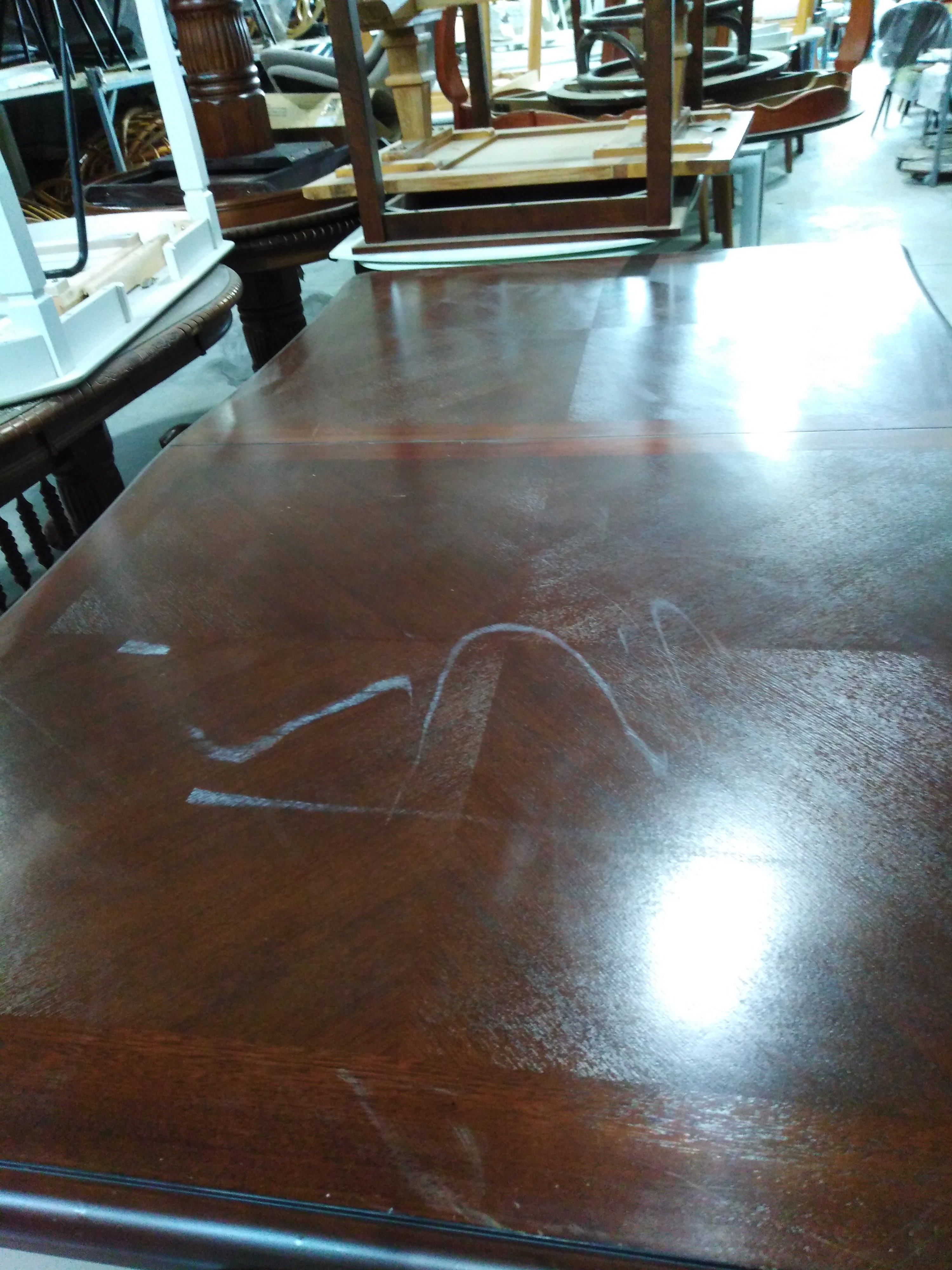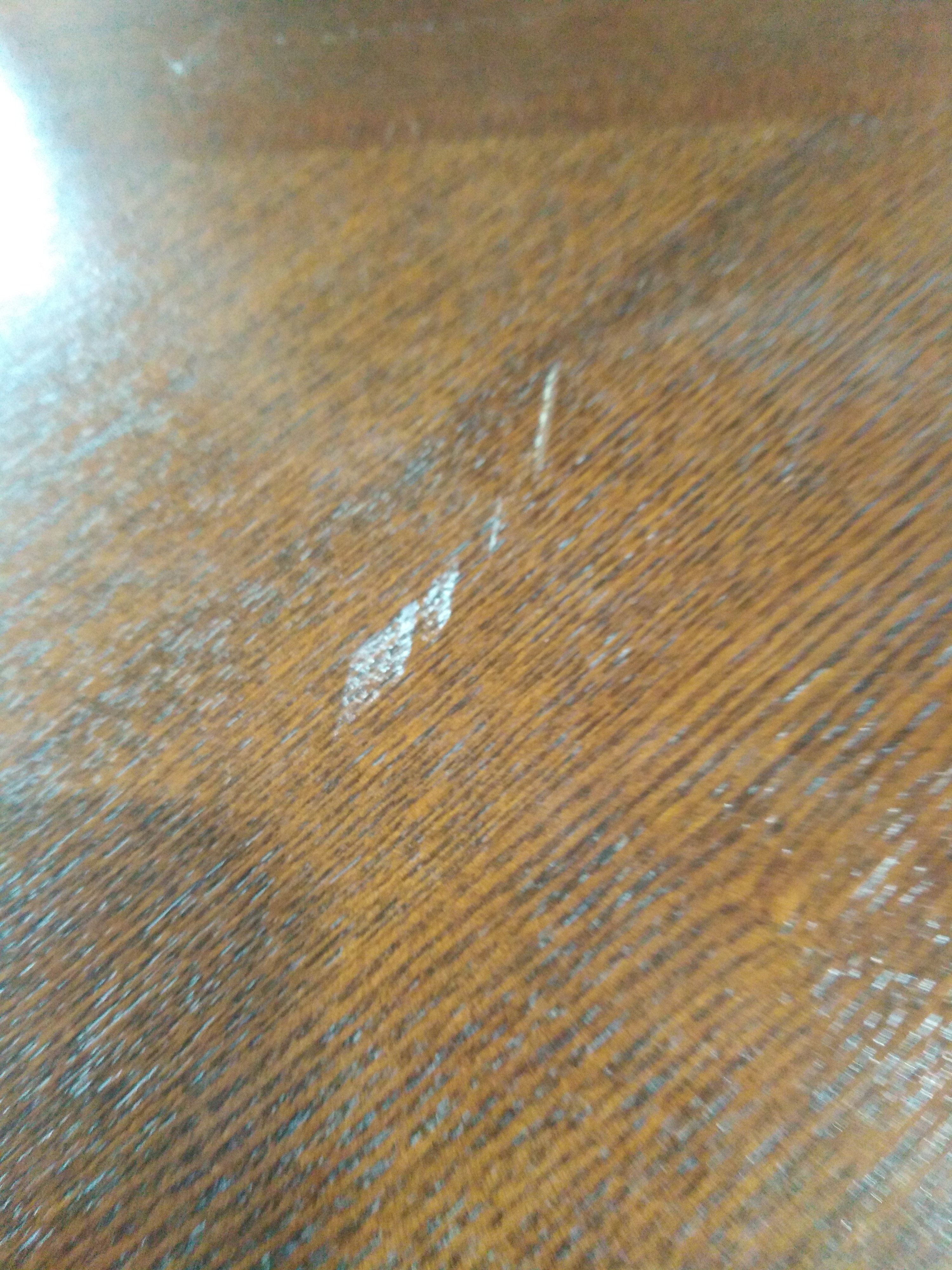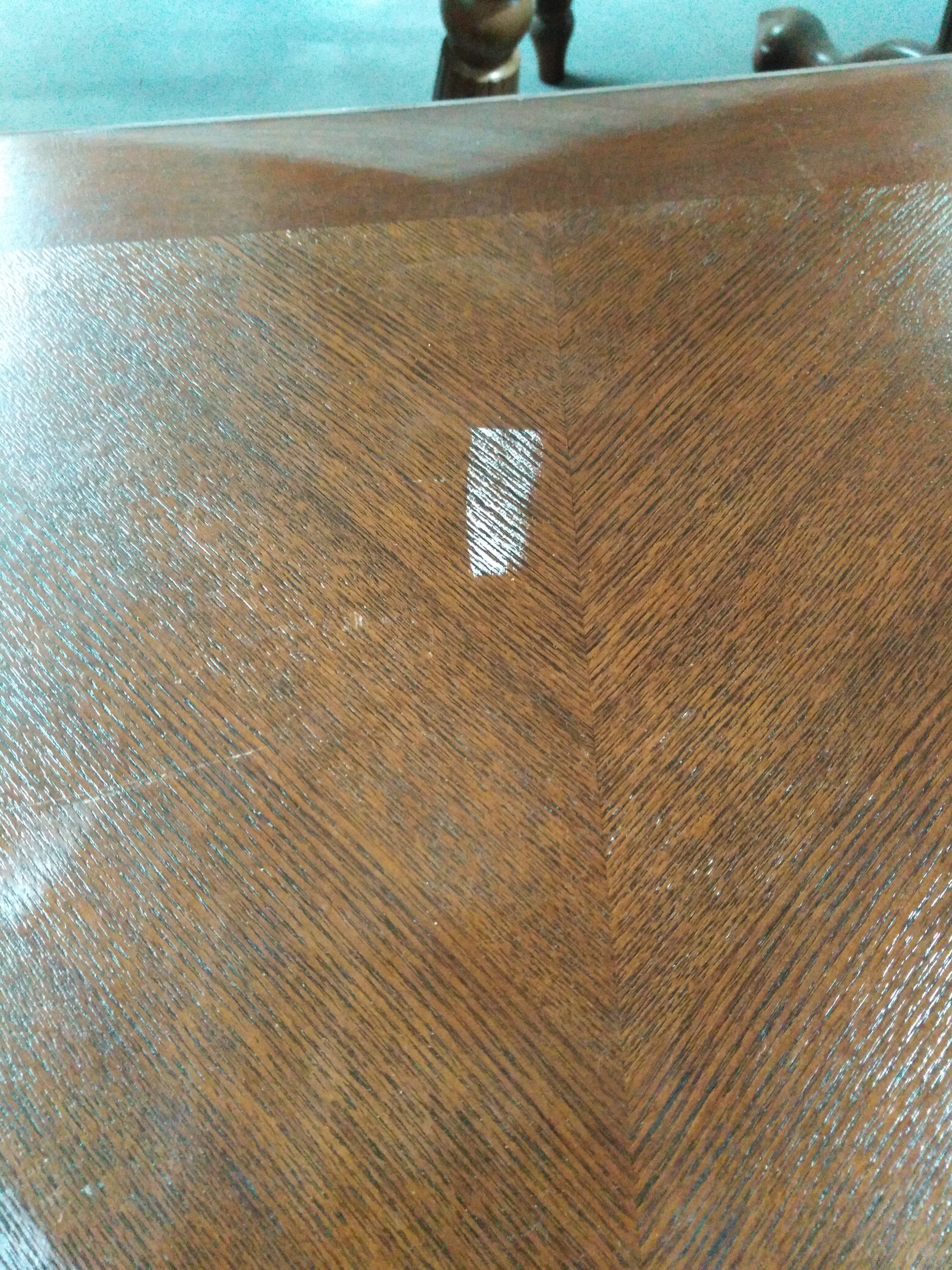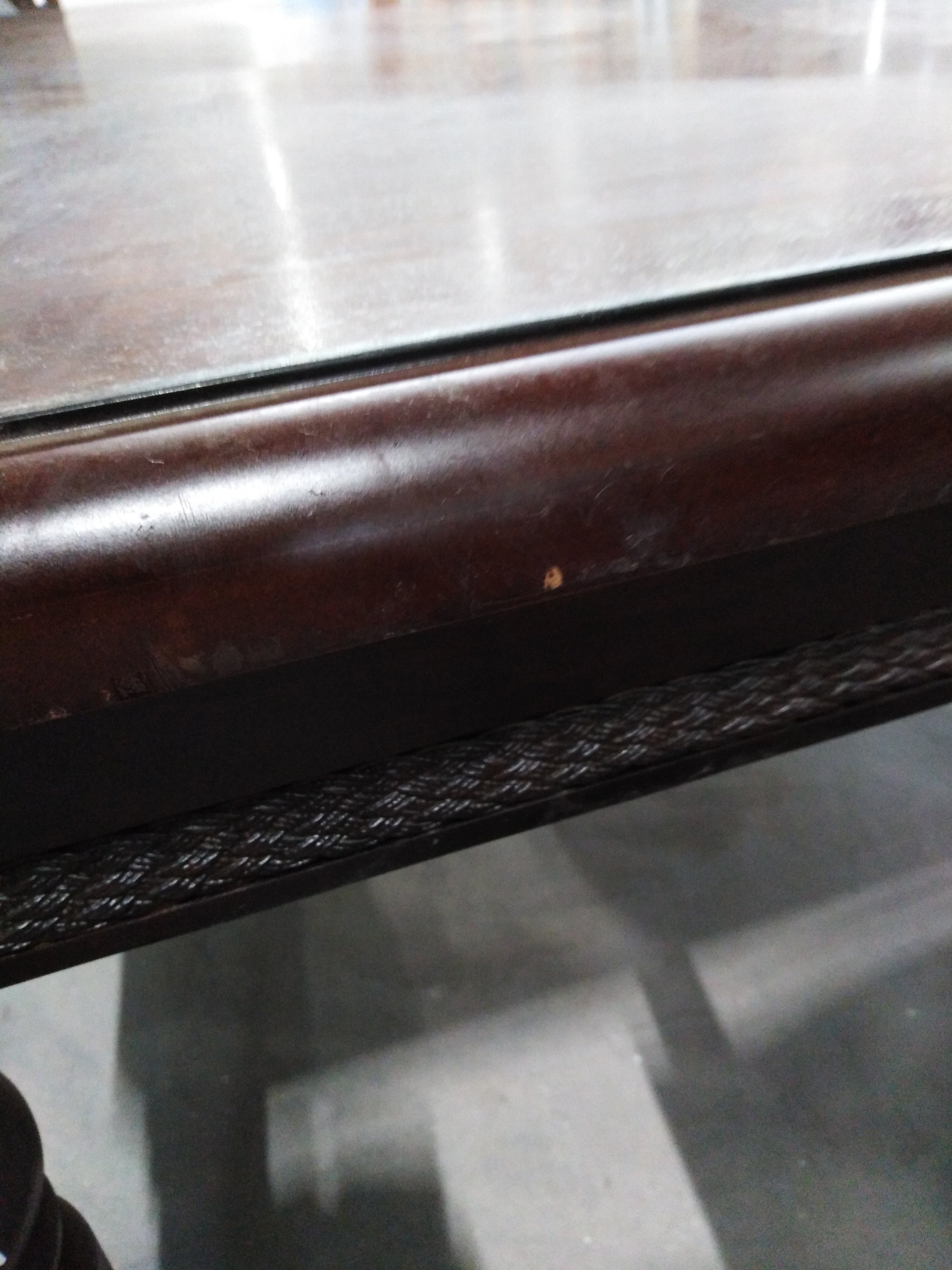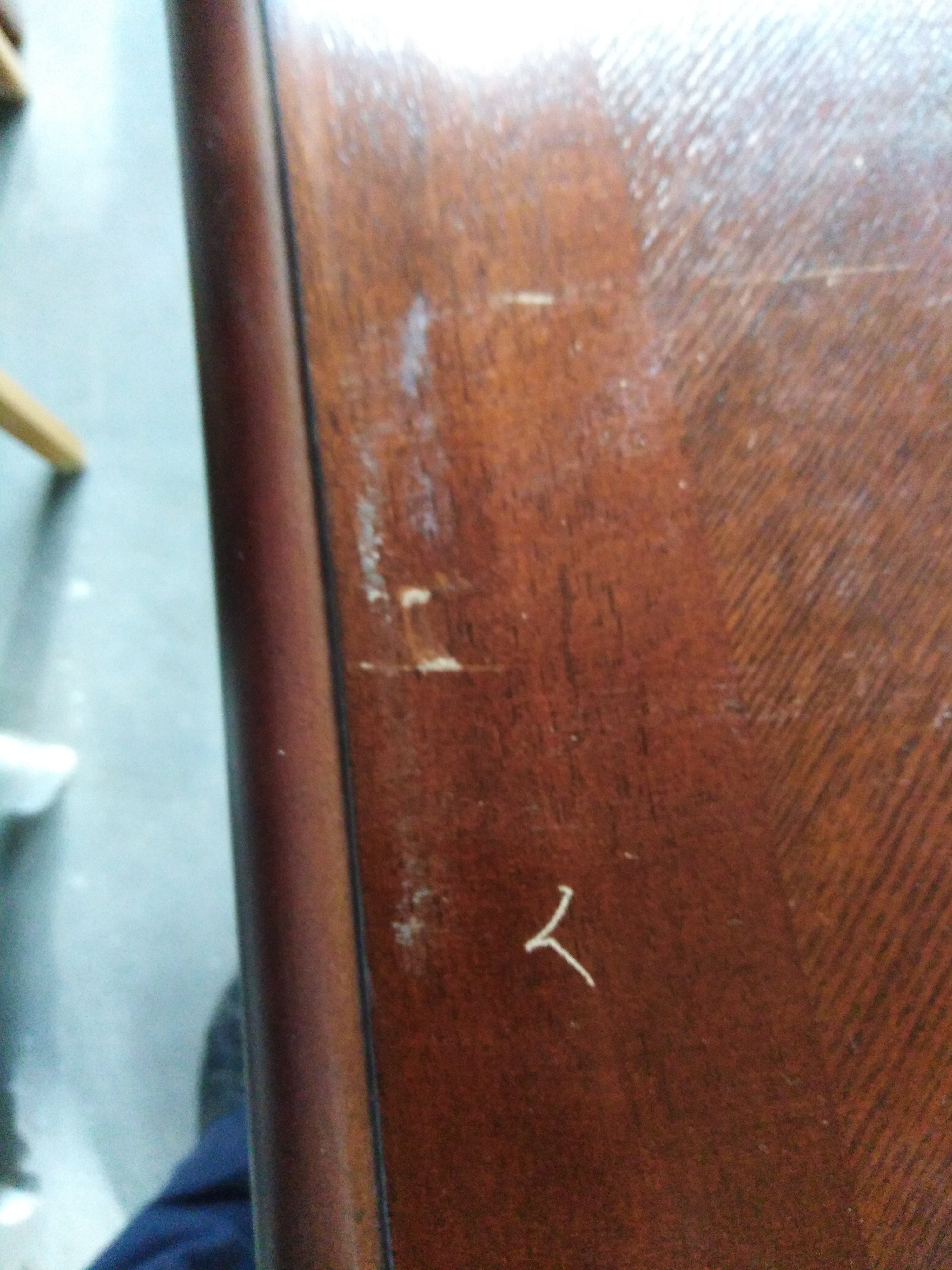Описание дефекта: Нарушение ЛКП на столешнице. Потёртости и сколы на деревянных деталях