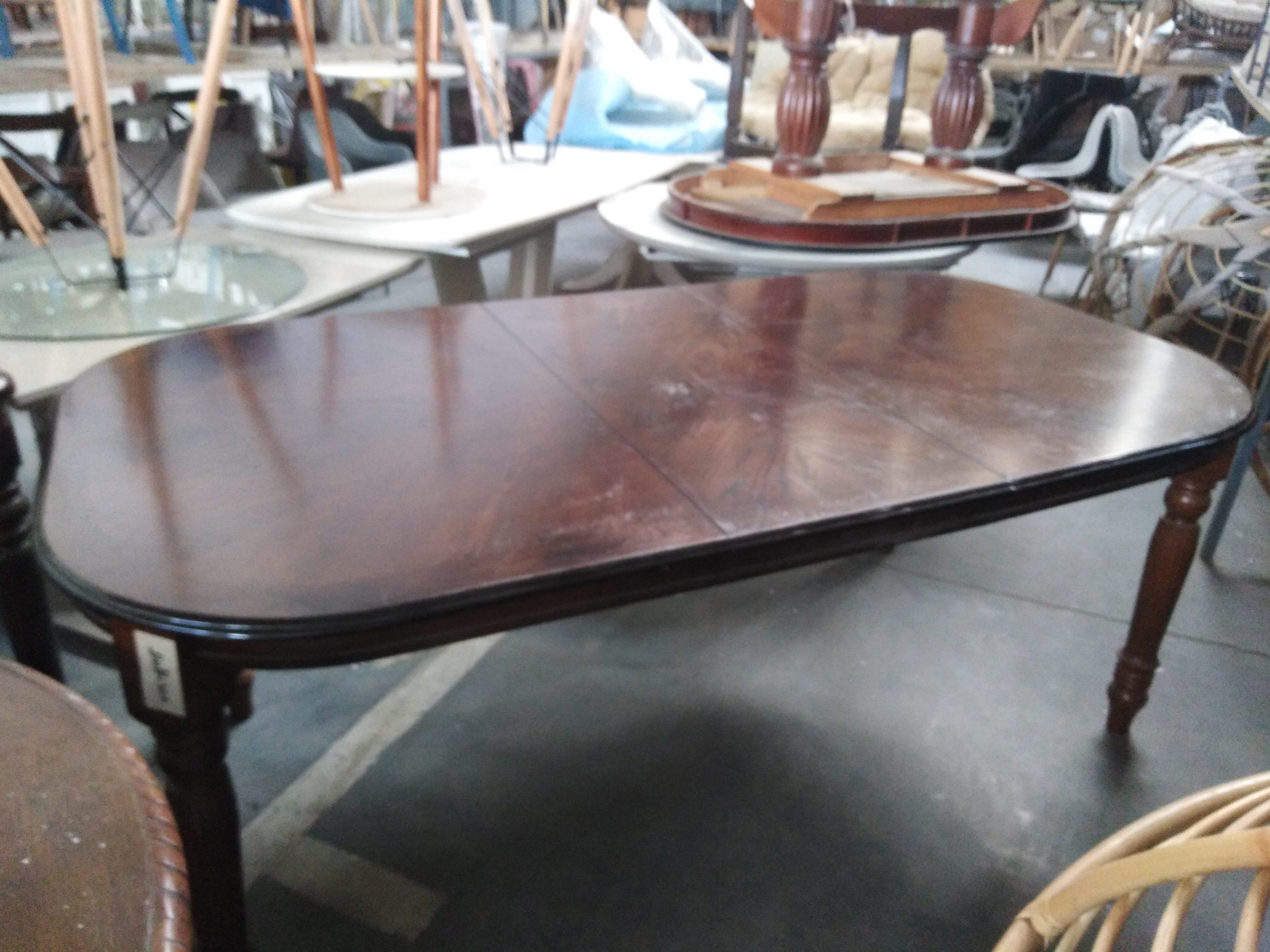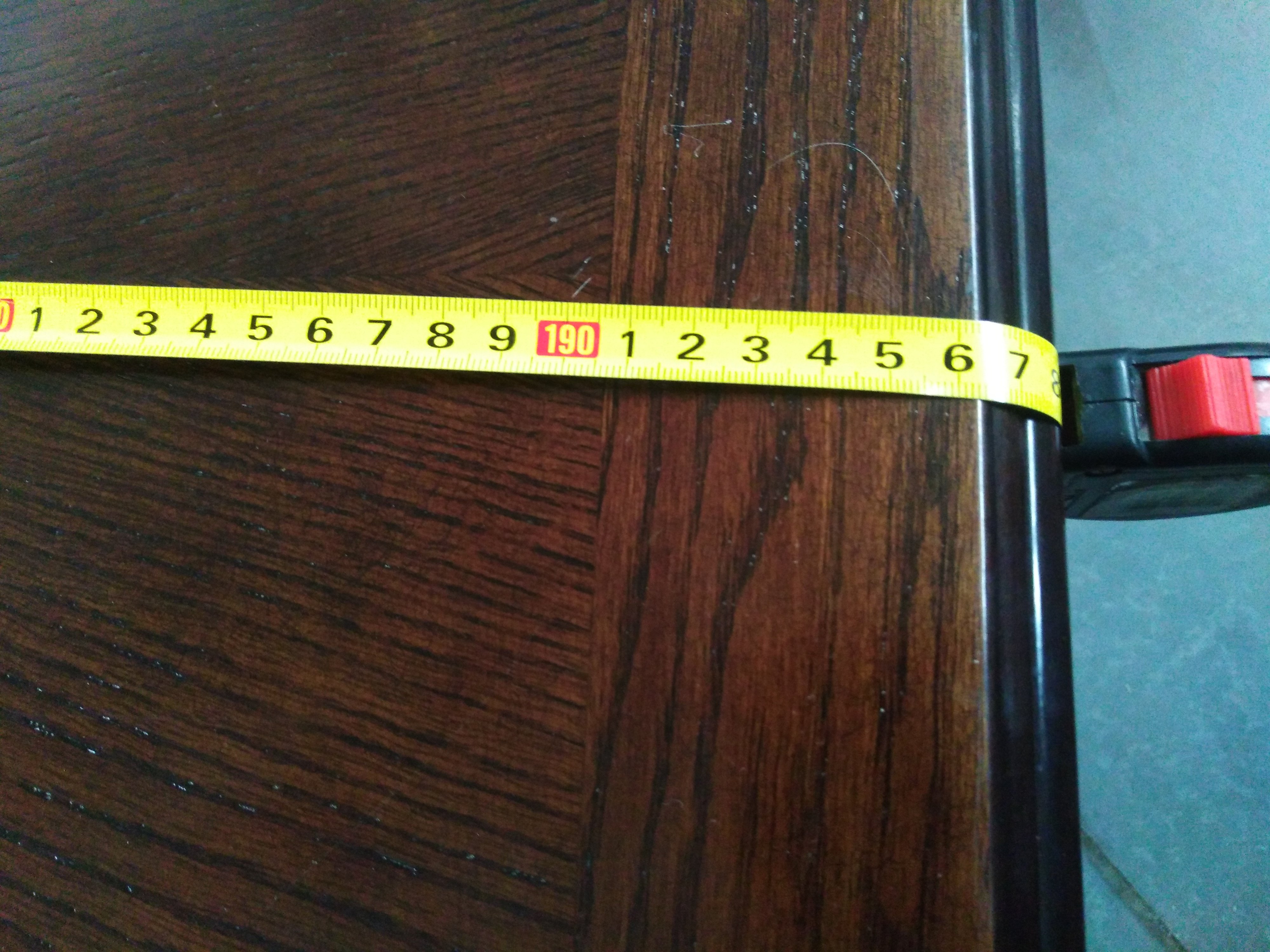 Описание товара без дефектов: Материал: ножки- массив гевеи, столешница - МДФ+дубовый шпон. Размеры: 107х153 (198) см