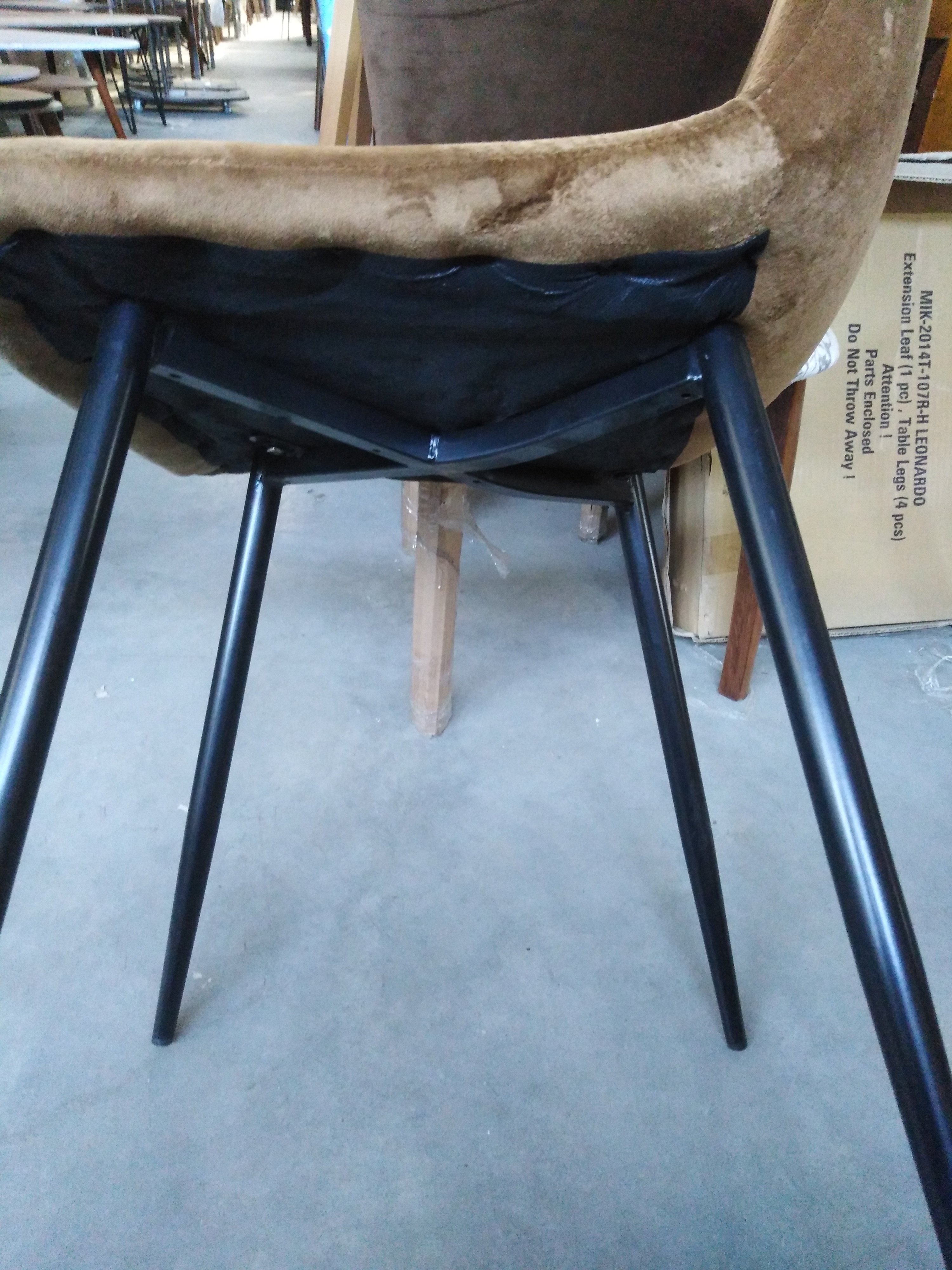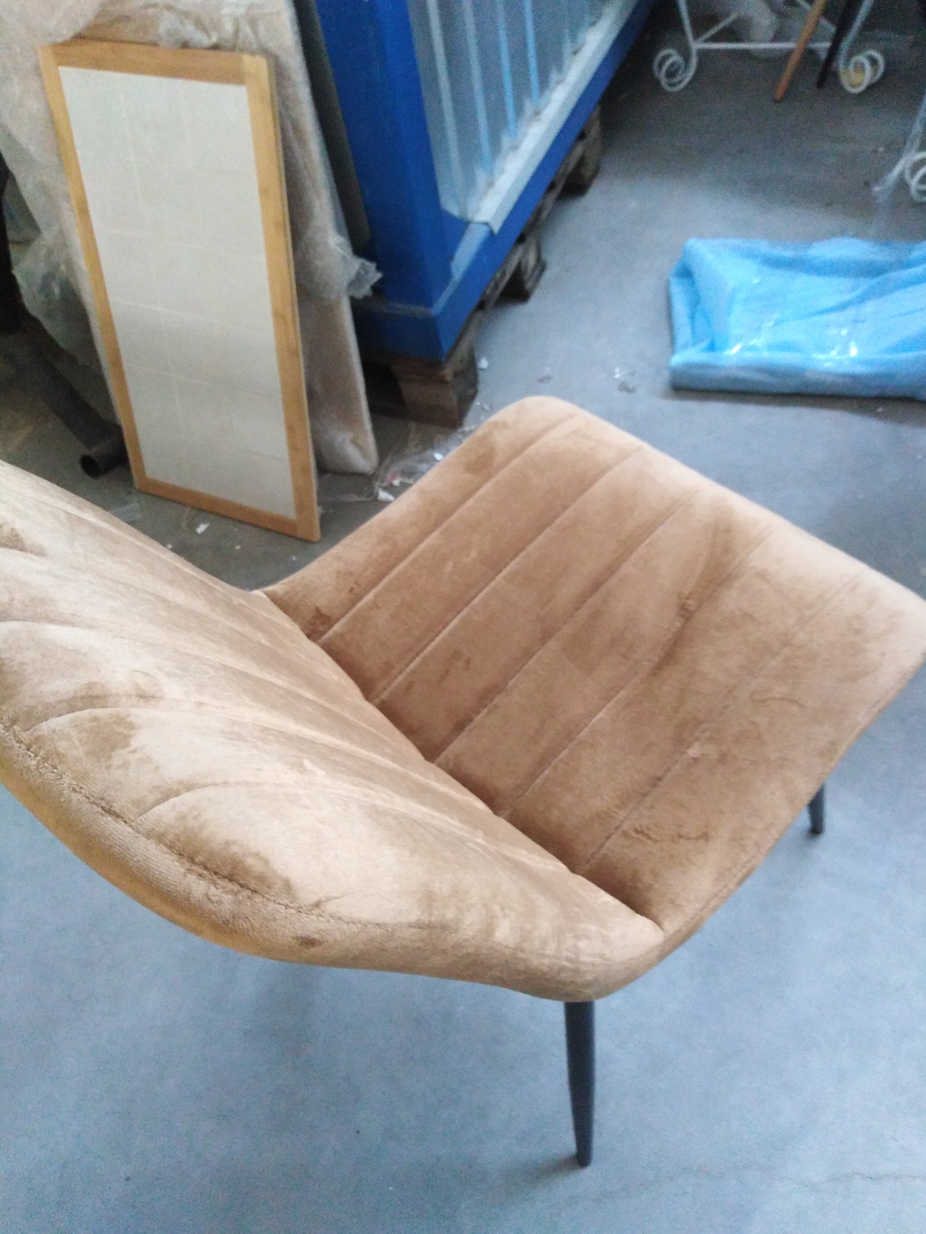Описание товара без дефектов: Великолепный стул DUBLIN из коллекции Modern сделает ваш интерьер не только стильным, но по-домашнему уютным и комфортным. Тонкие изящные ножки в сочетании со стеганой обивкой из вельвета коричневого цвета выгодно выделяют его в интерьере. Мягкое сиденье и спинка позволяют комфортно сидеть в течение длительного времени. Бархатистая и приятная на ощупь поверхность обивки обеспечит максимальный комфорт и уют. Четыре прочные ножки делают модель устойчивой и надежной. Тканевая обивка не мнётся, не меняет форму, пропускает воздух, экологична и гипоаллергенна. Этот стильный и удобный стул отлично впишется в интерьер гостиной, кухни или столовой.