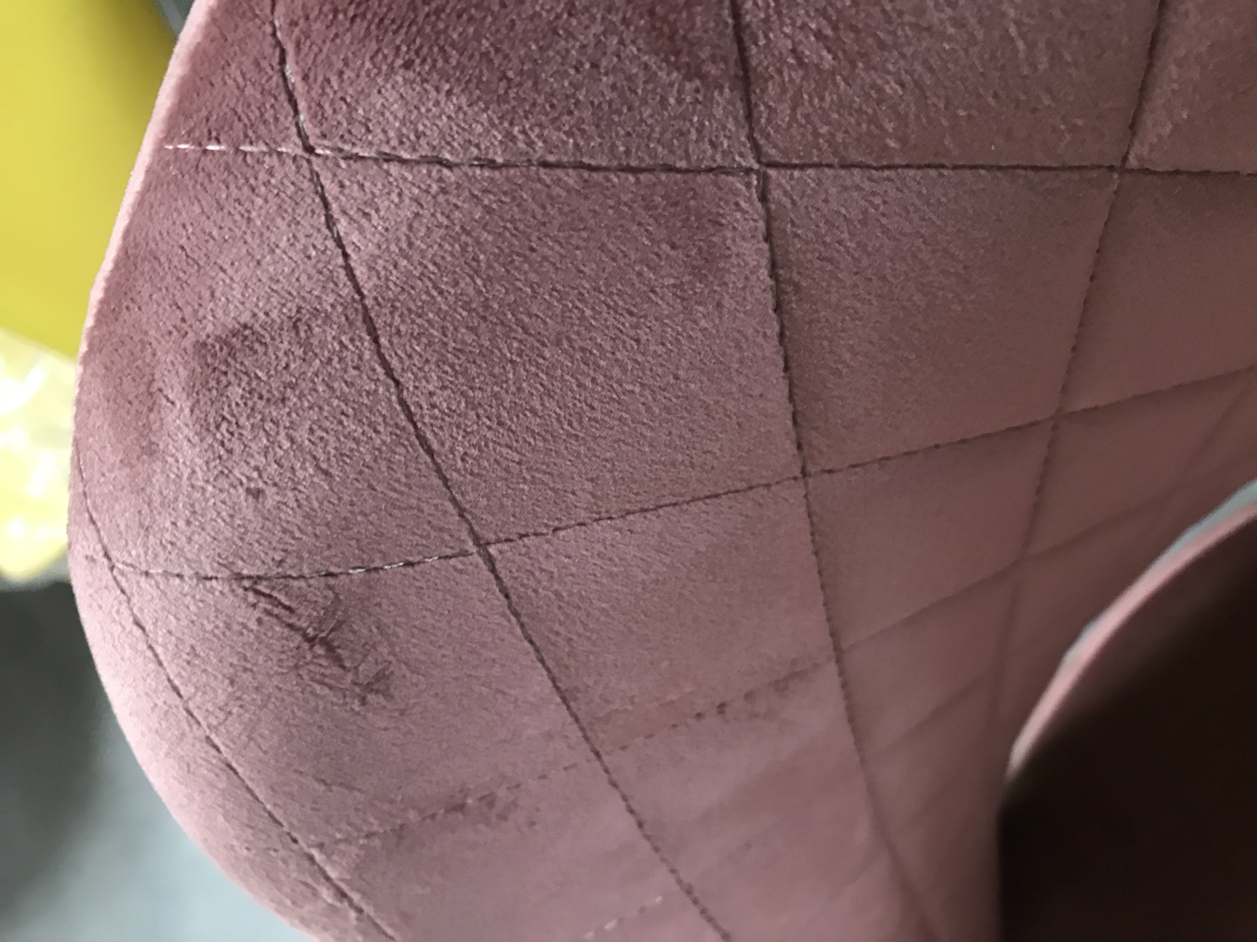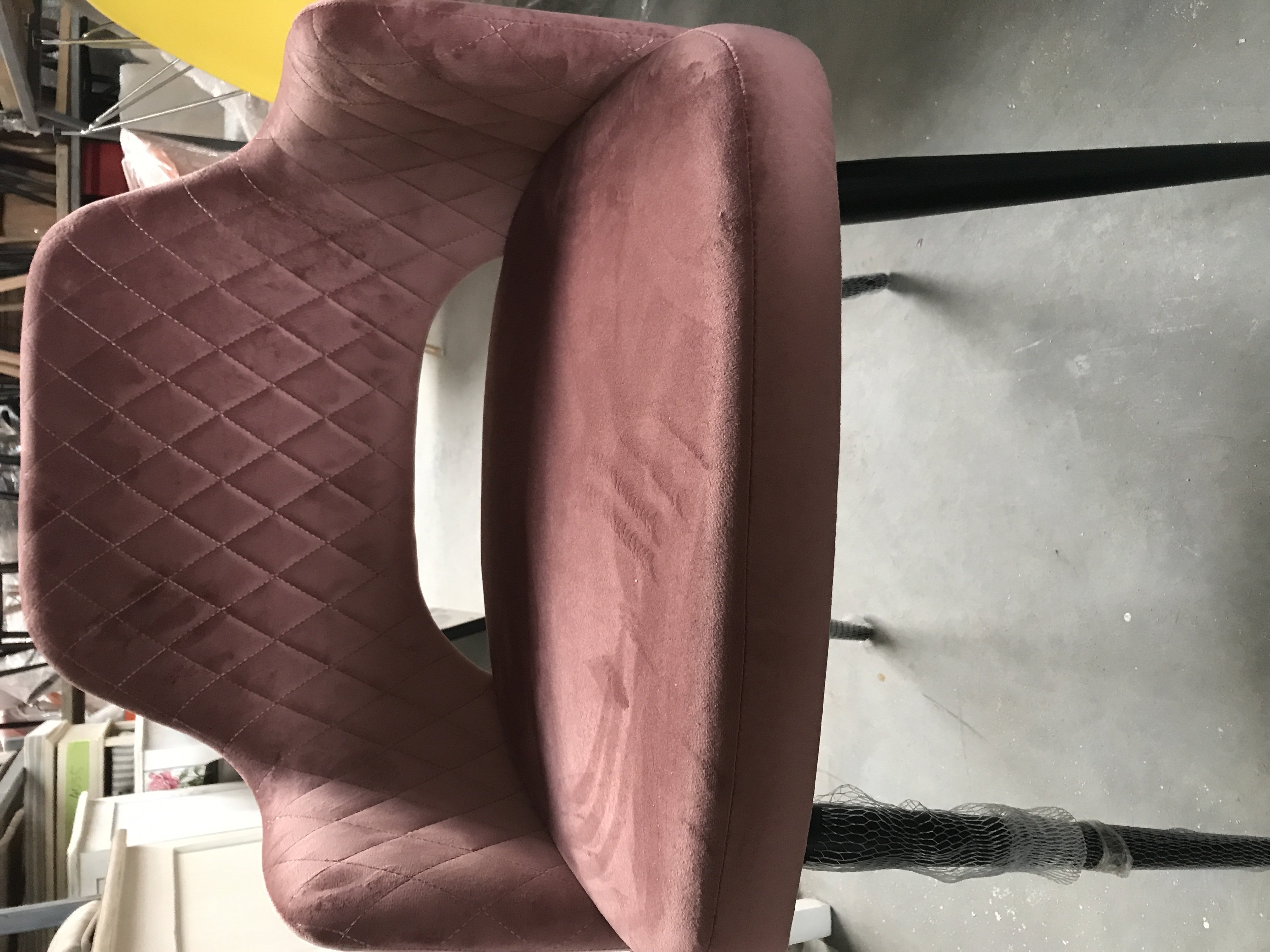 Описание дефекта: Нарушение структуры ткани на сидении и спинке( потёртости). Нарушение ЛКП на ножках