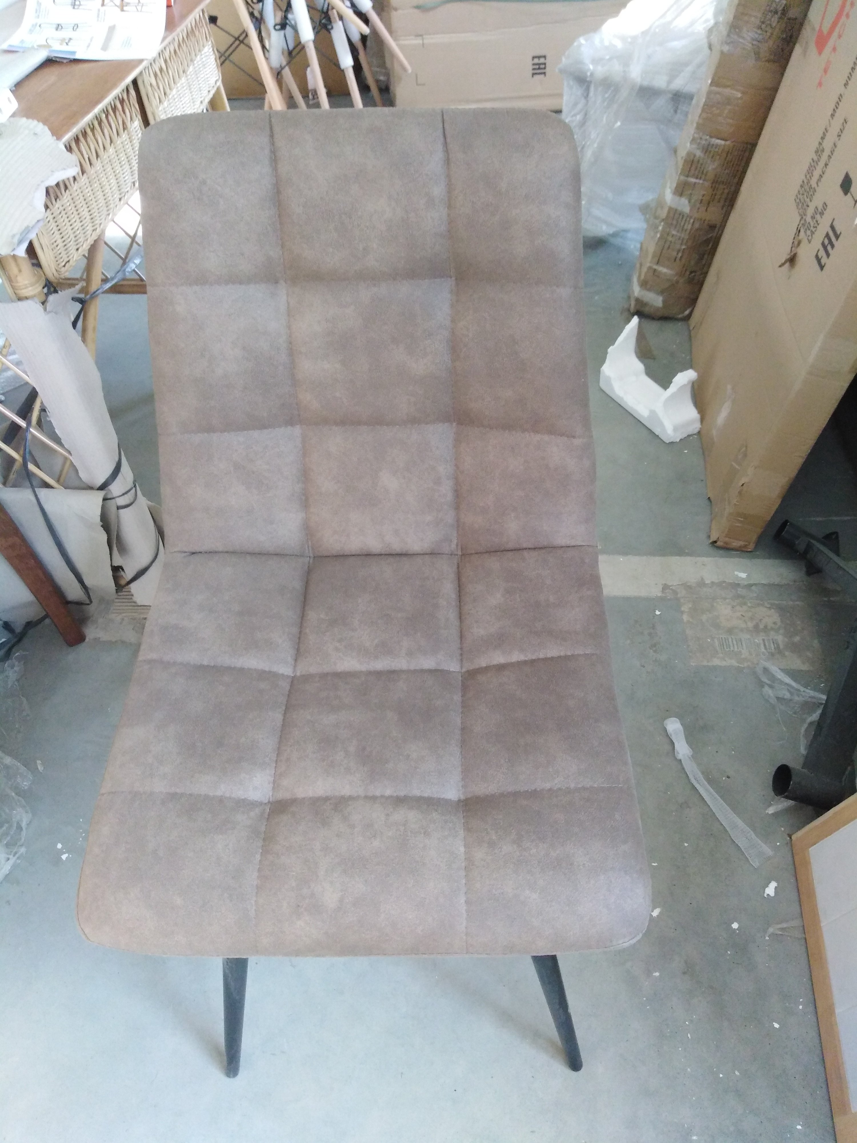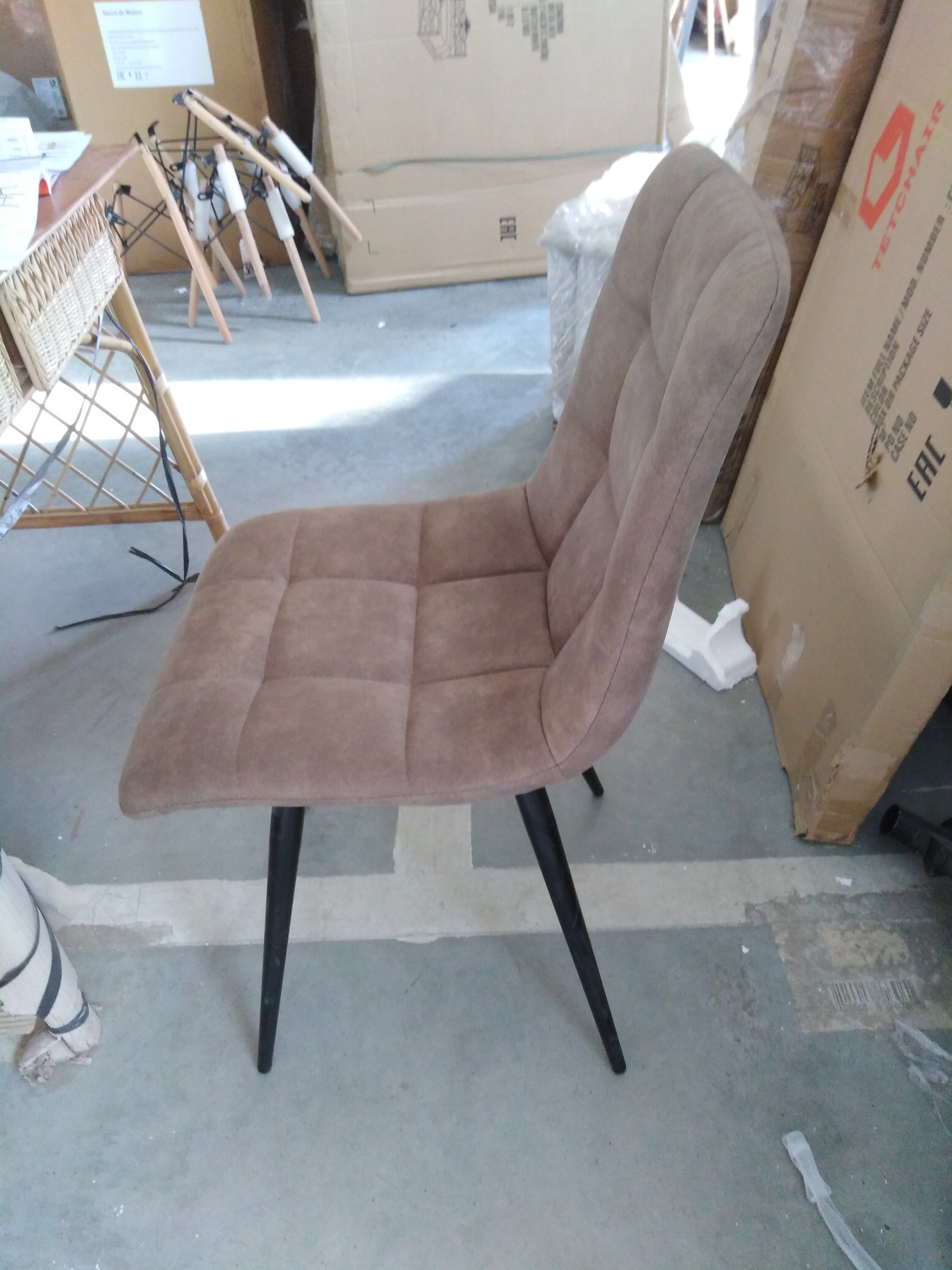 Описание товара без дефектов: Удобный и практичный дизайн стула CHILLY из коллекции Modern позволит ему вписаться практически в любой интерьер. Стул можно расположить в гостиной, кухне или столовой. Подчеркнутый цветовой контраст изделия и его лаконичные формы идеально соответствуют концепции современного стильного пространства. Простая форма, стеганая обивка светло-коричневого цвета и тонкие металлические ножки придают стулу особую привлекательность, оригинальность и визуальную легкость. Мягкое сиденье и спинка позволяют комфортно расположиться на длительное время. Практичная тканевая обивка отличается устойчивостью к износу и долговечностью, благодаря чему стул не требует специального ухода и будет долгое время радовать вас своим первоначальным видом.