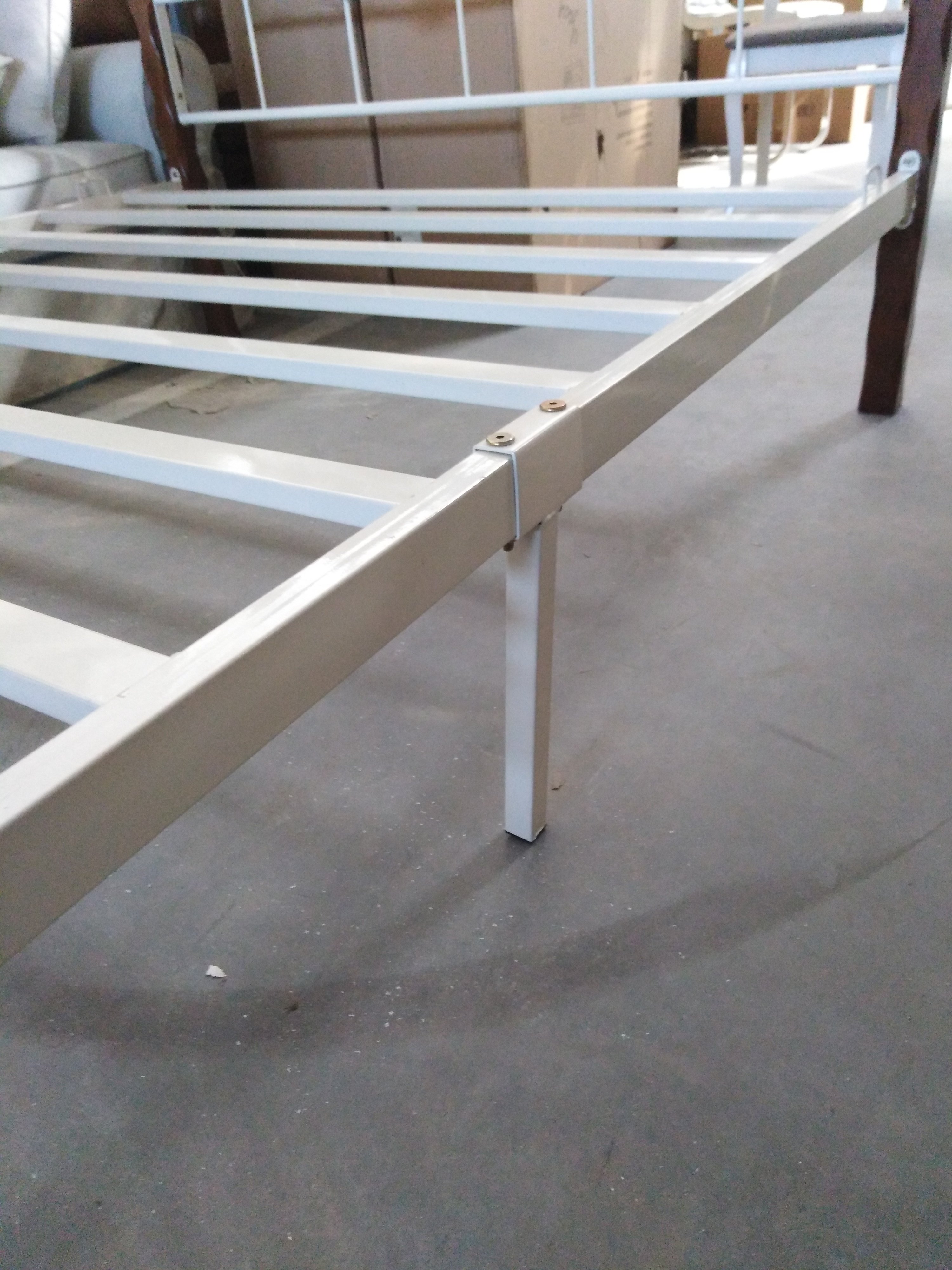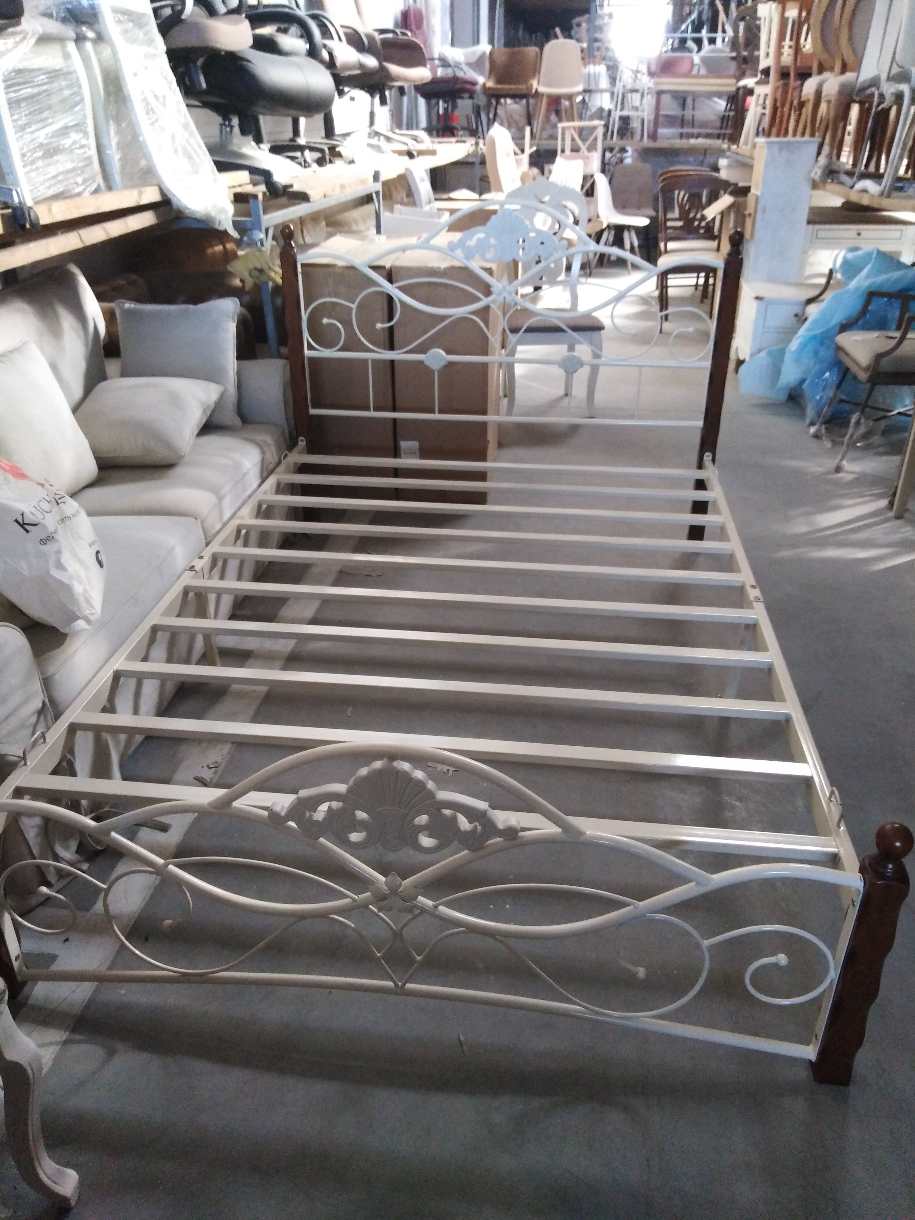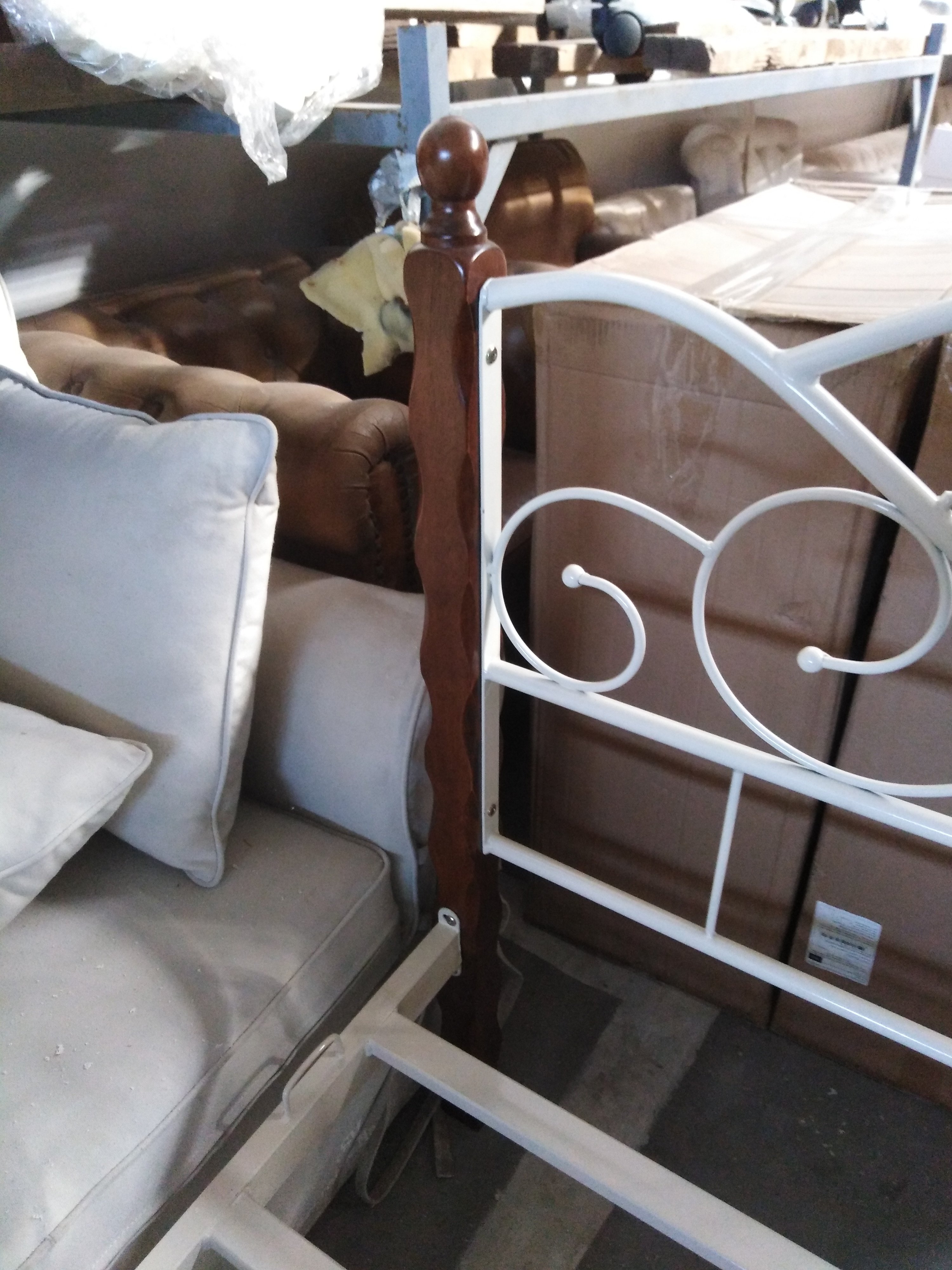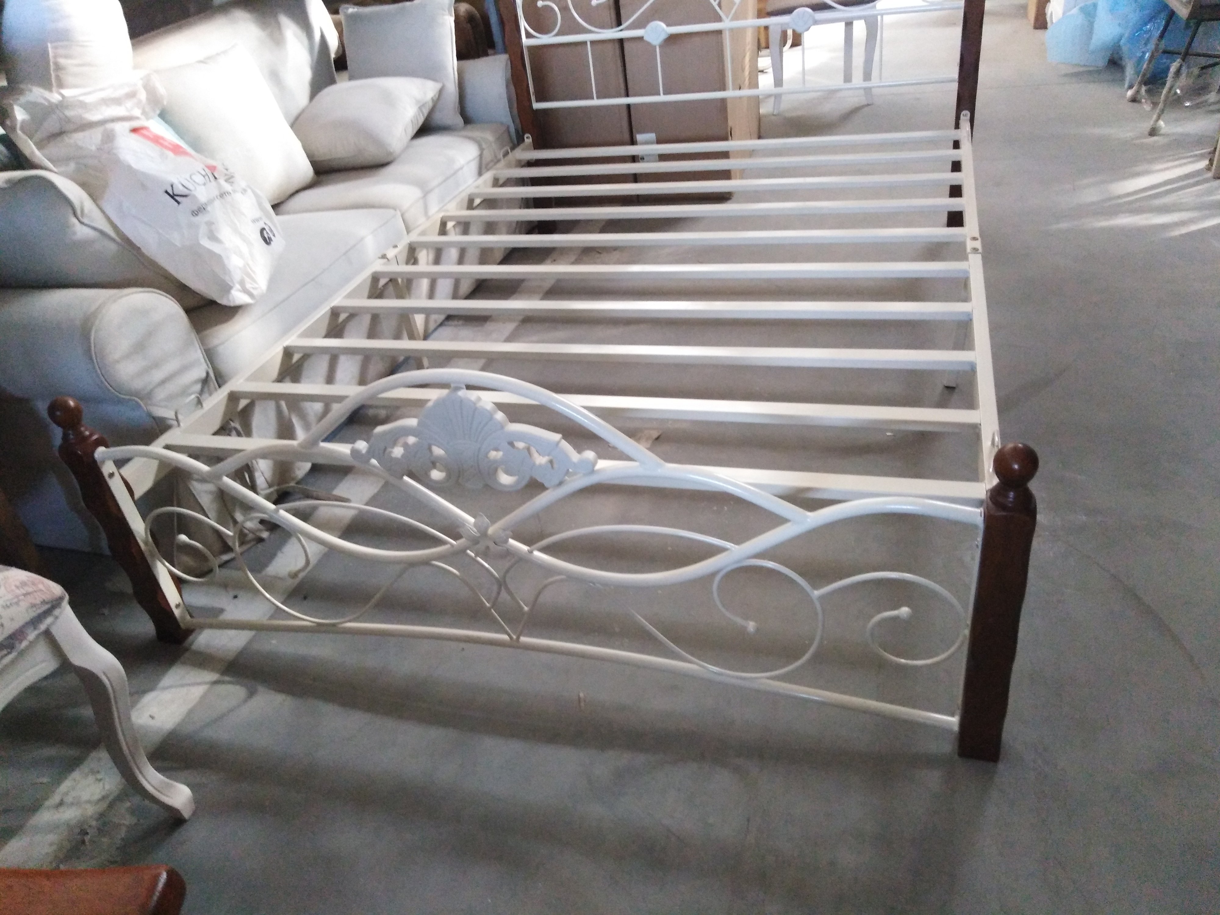 Описание товара без дефектов: Двуспальная кровать. Материал: ножки, элементы декора - дерево гевея; основание, изголовье, изножье - металл. Усиленная база.