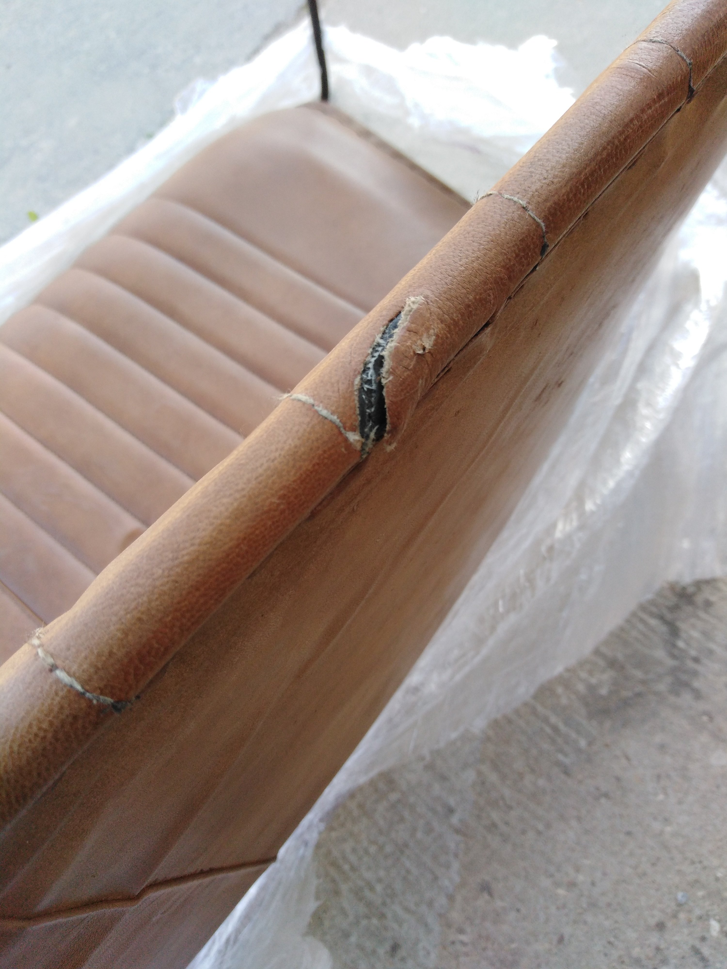 Описание дефекта: Разрыв материала кожи на спинке. Вдавленность на сидении
