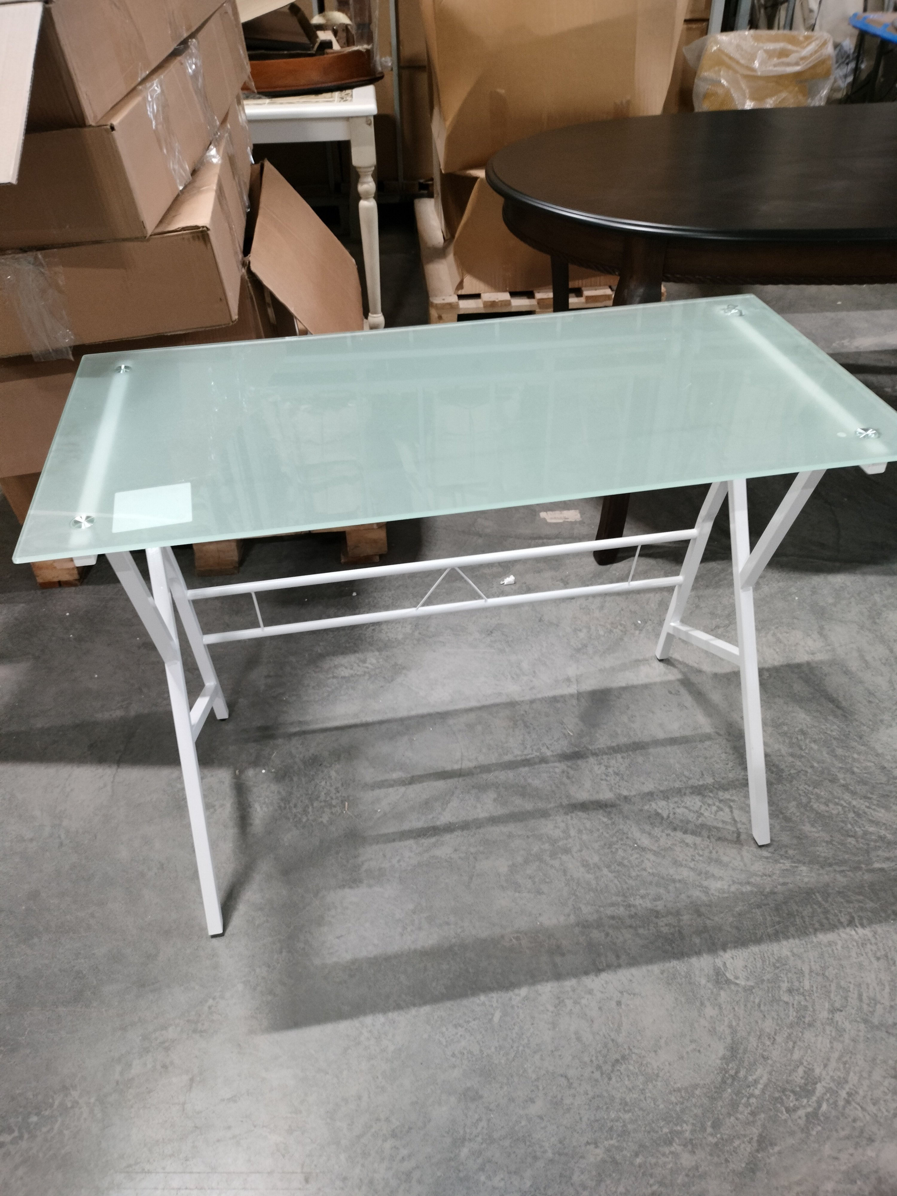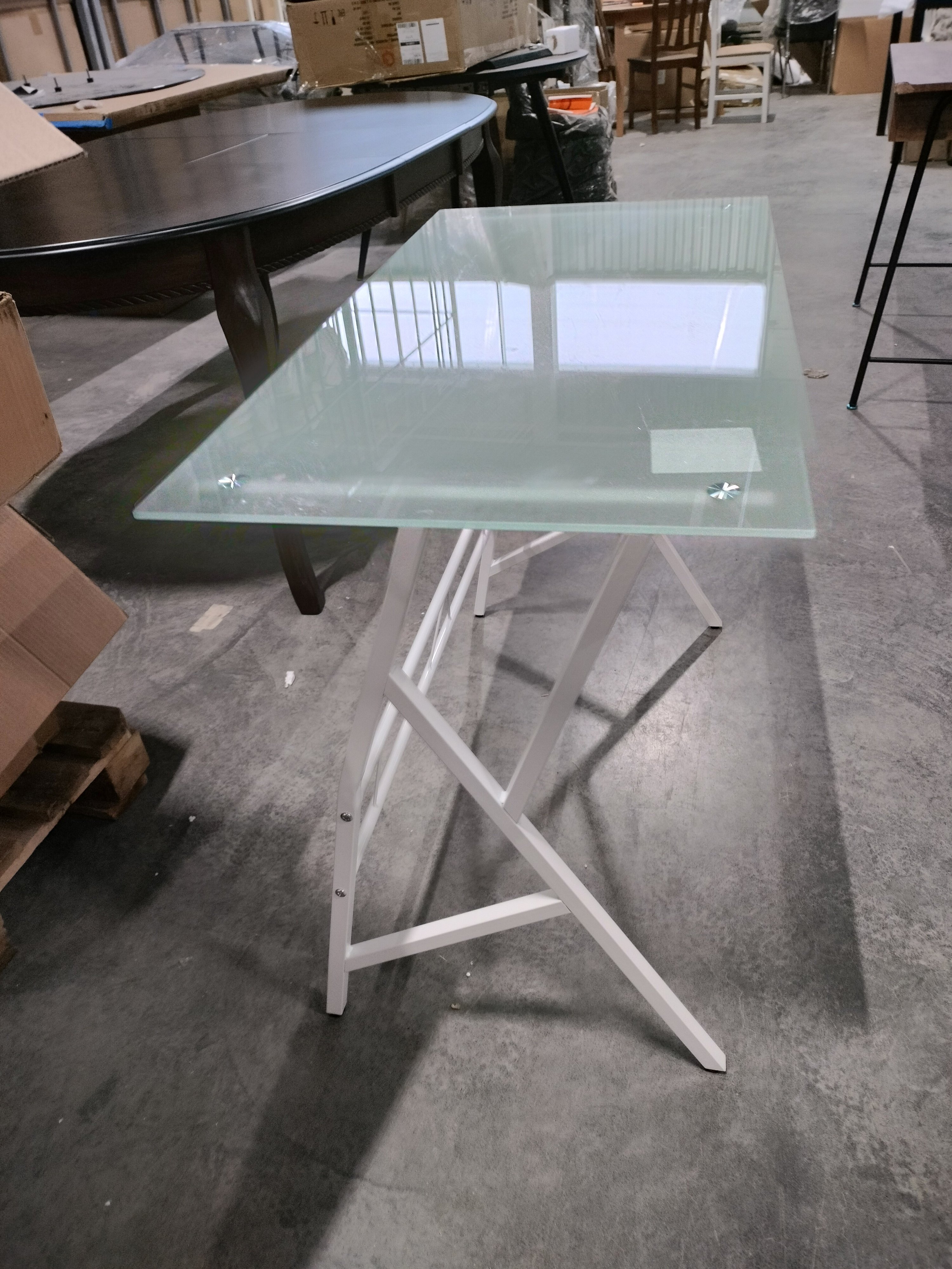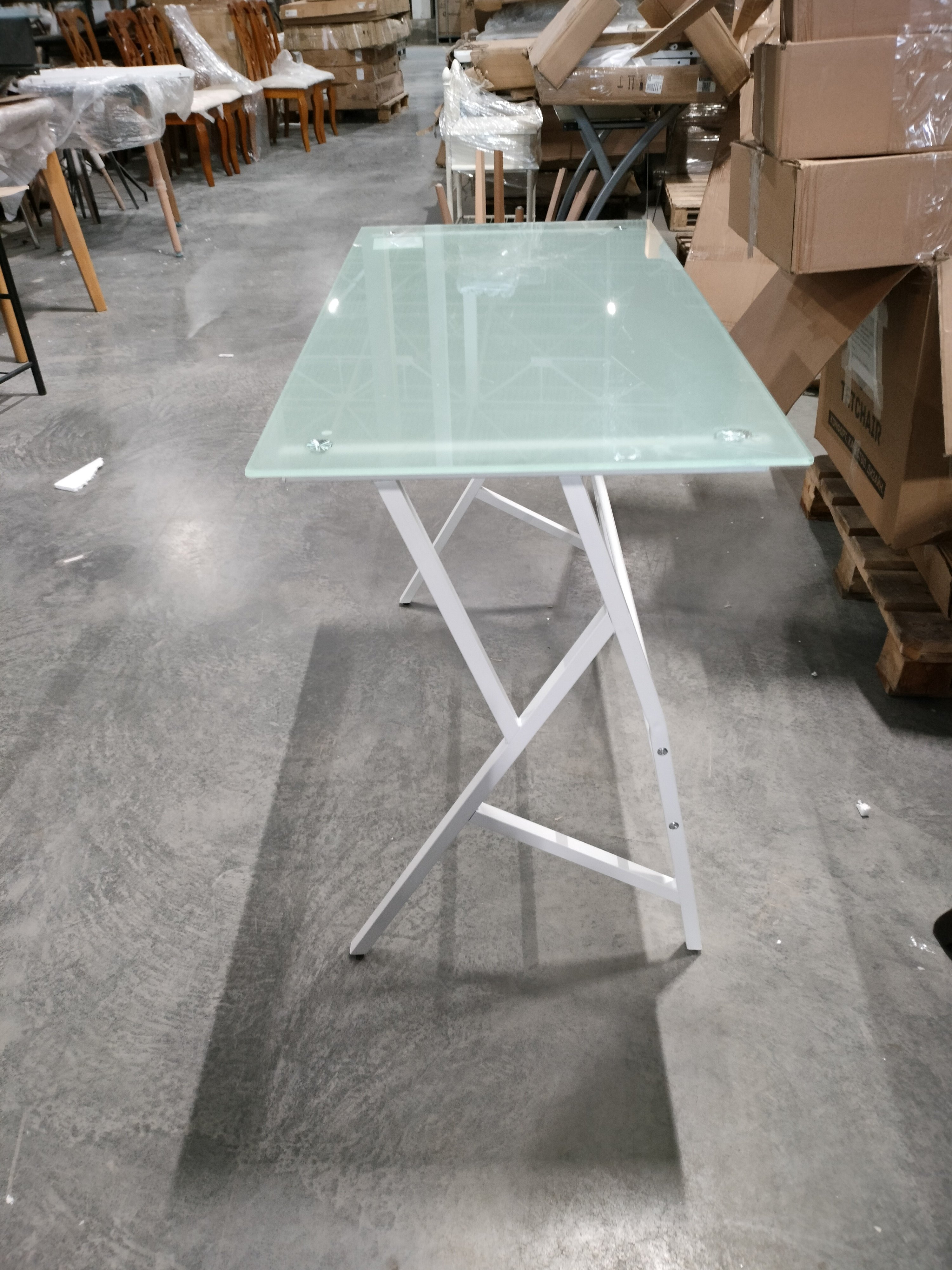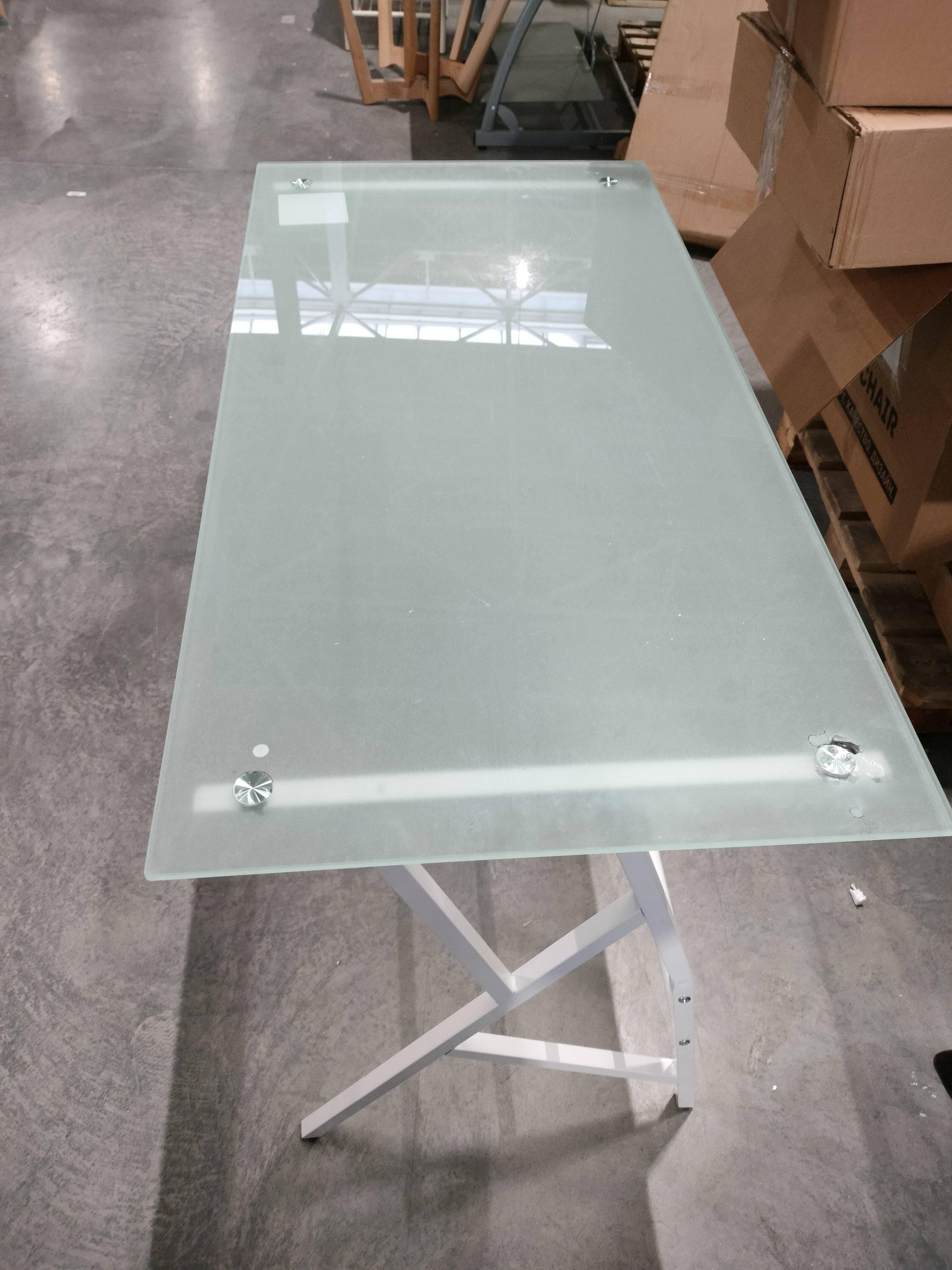 Описание товара без дефектов: Стильный компьютерный стол GD-02 – отличное решение не только для современного офиса, но и для домашнего рабочего кабинета. С помощью такой модели удастся организовать функциональную и привлекательную рабочую зону. Широкая прямоугольная столешница изготовлена из окрашенного закаленного стекла толщиной 7 мм. Поверхность невосприимчива к действию влаги, проста в уходе, способна выдерживать большие нагрузки. Металлический каркас с белым порошковым покрытием устойчив, прочен, надежен и имеет долгий срок службы. Ножки компьютерного стола дополнительно регулируются для устранения неровности пола. Стеклянный компьютерный стол белого цвета (white) – стильный предмет мебели, способный преобразить обстановку любого помещения. Отлично подойдет владельцам, которые стремятся к созданию уникального и функционального интерьера. Модель поставляется в разобранном виде, необходима несложная сборка по прилагаемой инструкции. Стол очень прост в сборке, инструкция по сборке прилагается.