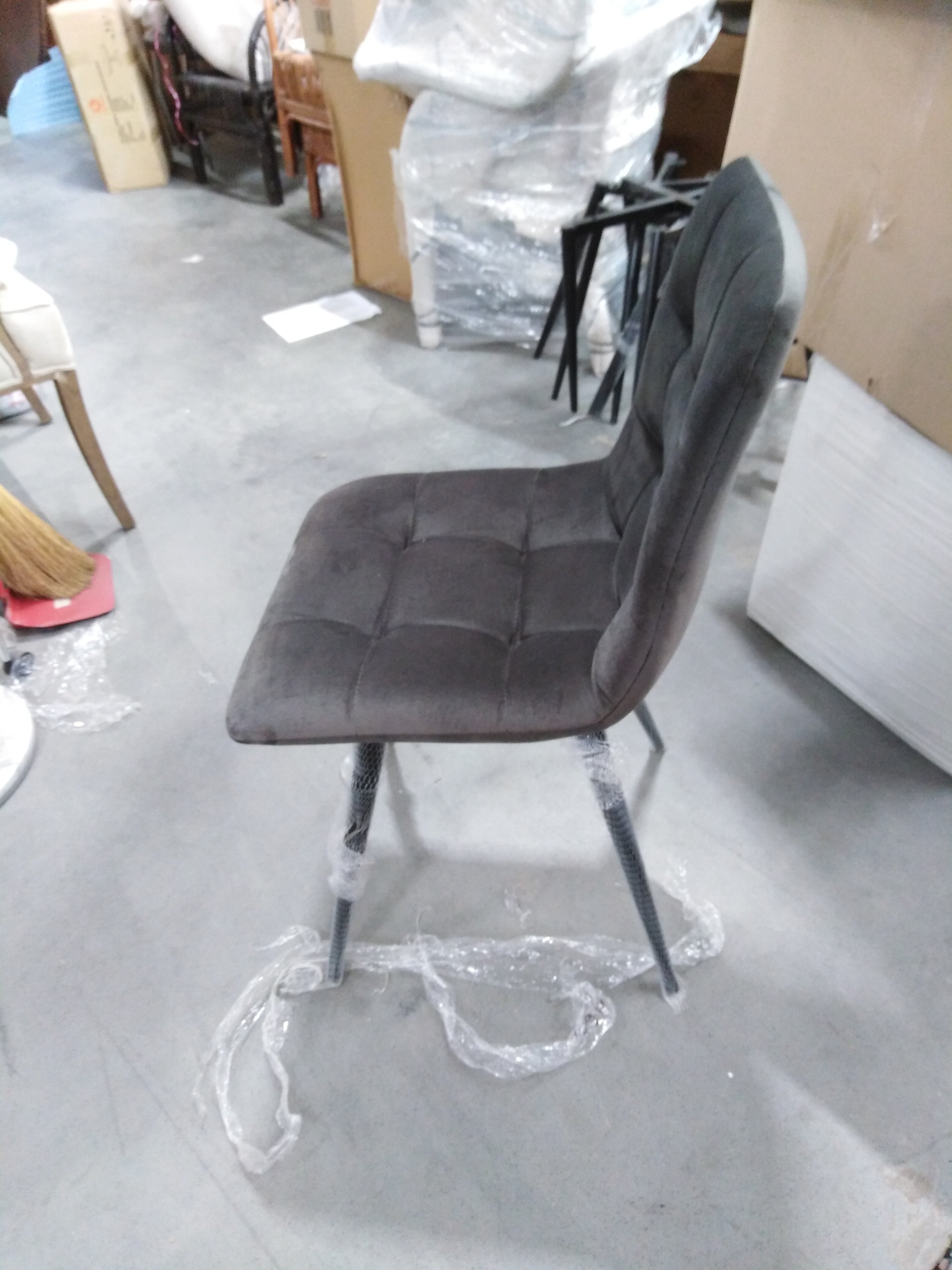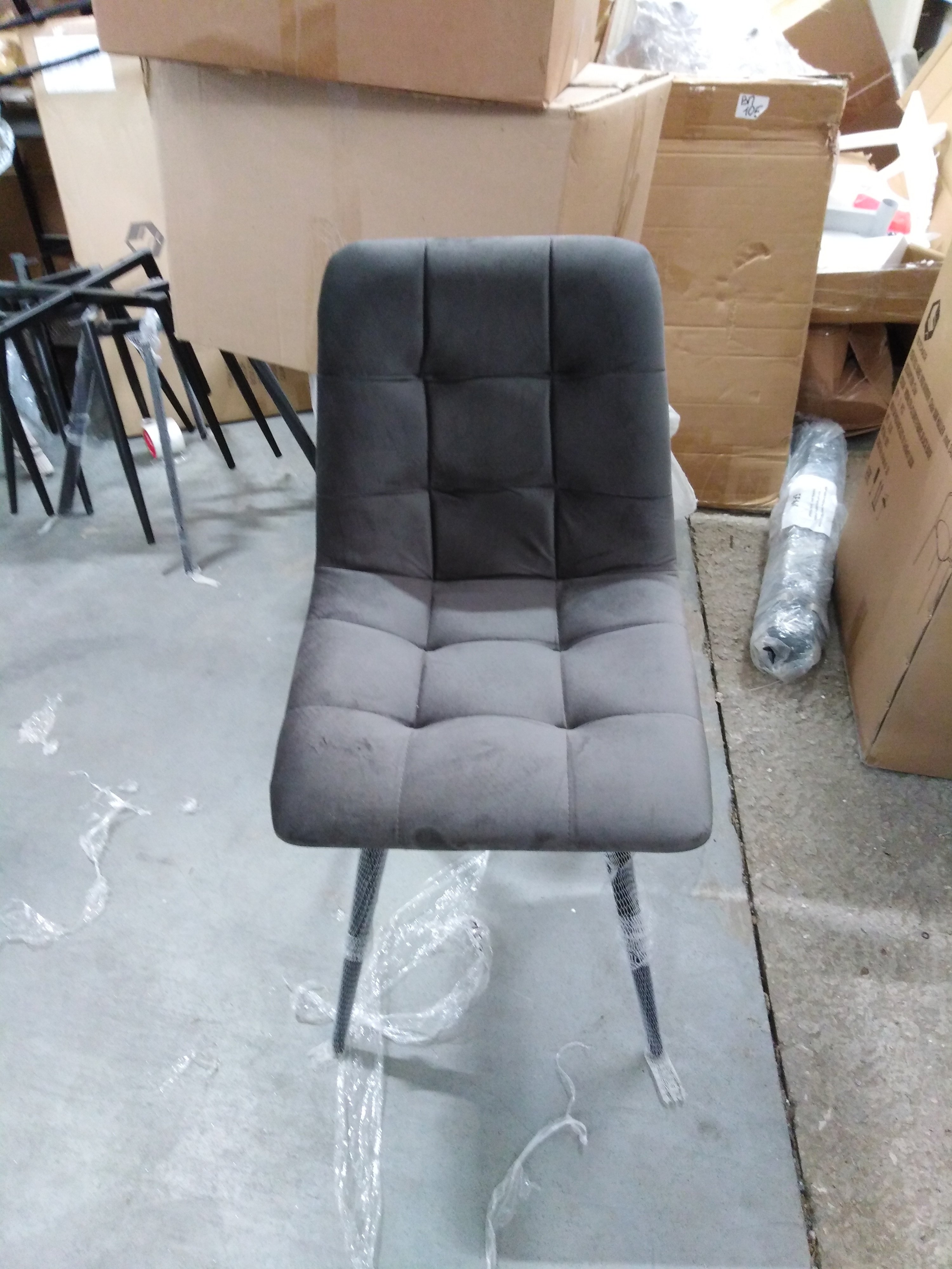 Описание товара без дефектов: Удобный и практичный дизайн стула CHILLY из коллекции Modern позволит ему вписаться практически в любой интерьер. Стул можно расположить в гостиной, кухне или столовой. Он хорошо подойдет для обстановки городской квартиры, загородного дома, кафе или ресторана. Тонкие металлические ножки с порошковым покрытием, стеганая тканевая обивка и лаконичные формы стула идеально соответствуют концепции современного стильного пространства. Мягкое сиденье и спинка позволяют комфортно расположиться на длительное время. Практичная тканевая обивка темно-серого цвета отличается устойчивостью к износу и долговечностью, благодаря чему стул не требует специального ухода и будет долгое время радовать вас своим первоначальным видом. Монолитный каркас изделия выполнен из многослойного гнутоклееного шпона толщиной 10 мм. Наполнение - комбинация пенополиуретанов различной плотности.