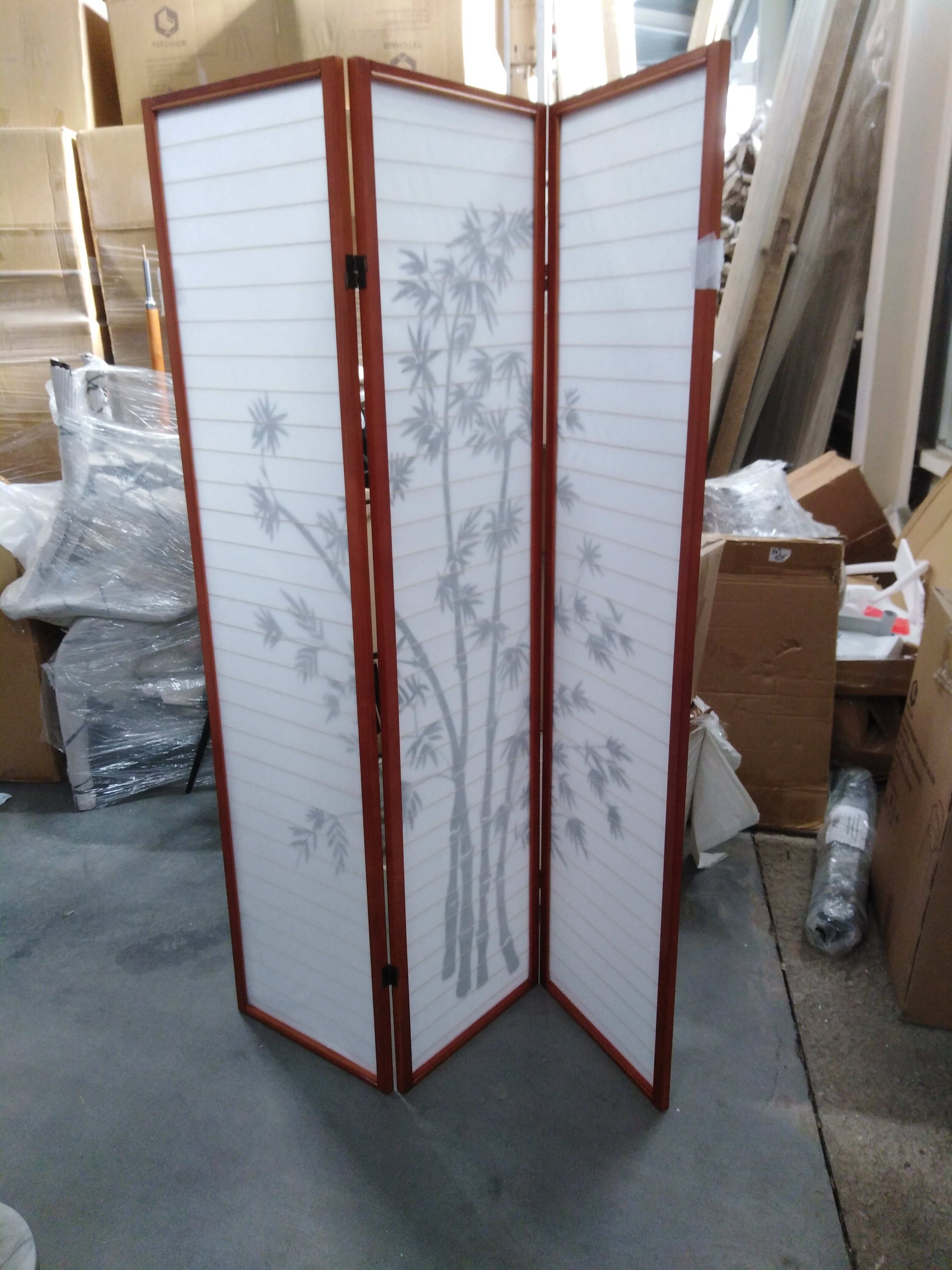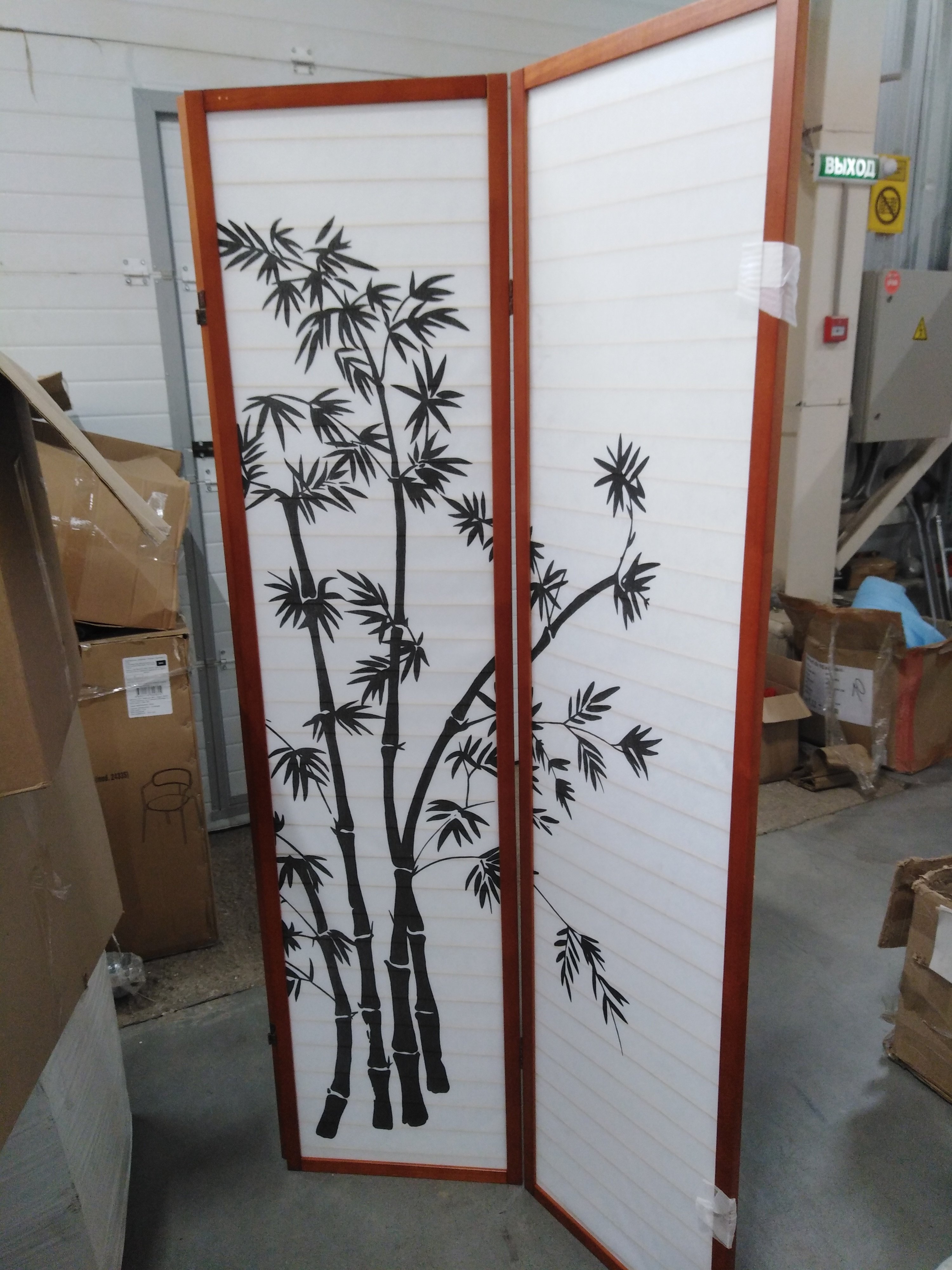 Описание товара без дефектов: Материал: каркас - дерево, полотно - рисовая бумага. Цвет: каркас - орех (walnut), полотно - цветочный рисунок. Размеры: 43,5 (130,5) x 2 х 178,6 см