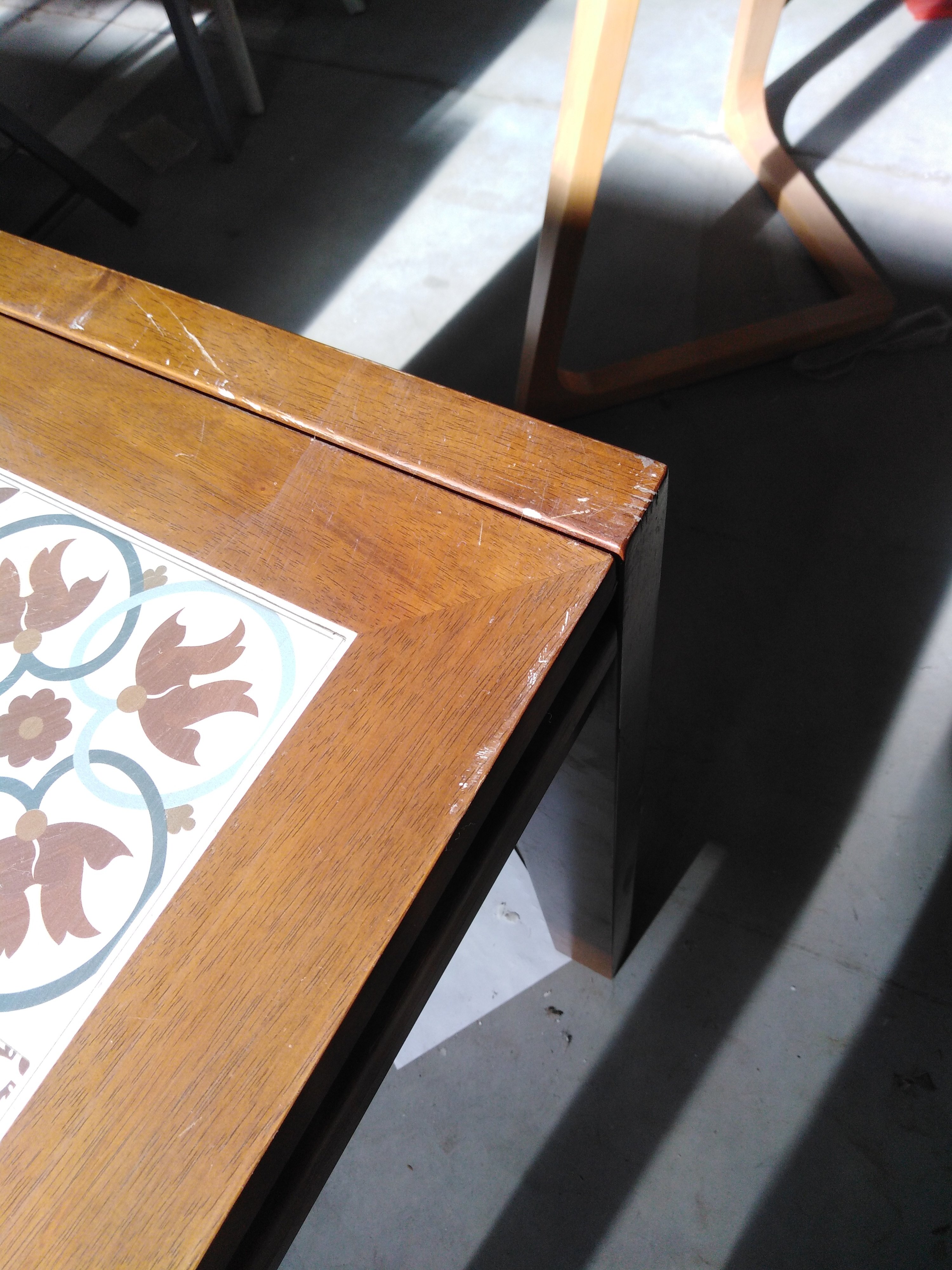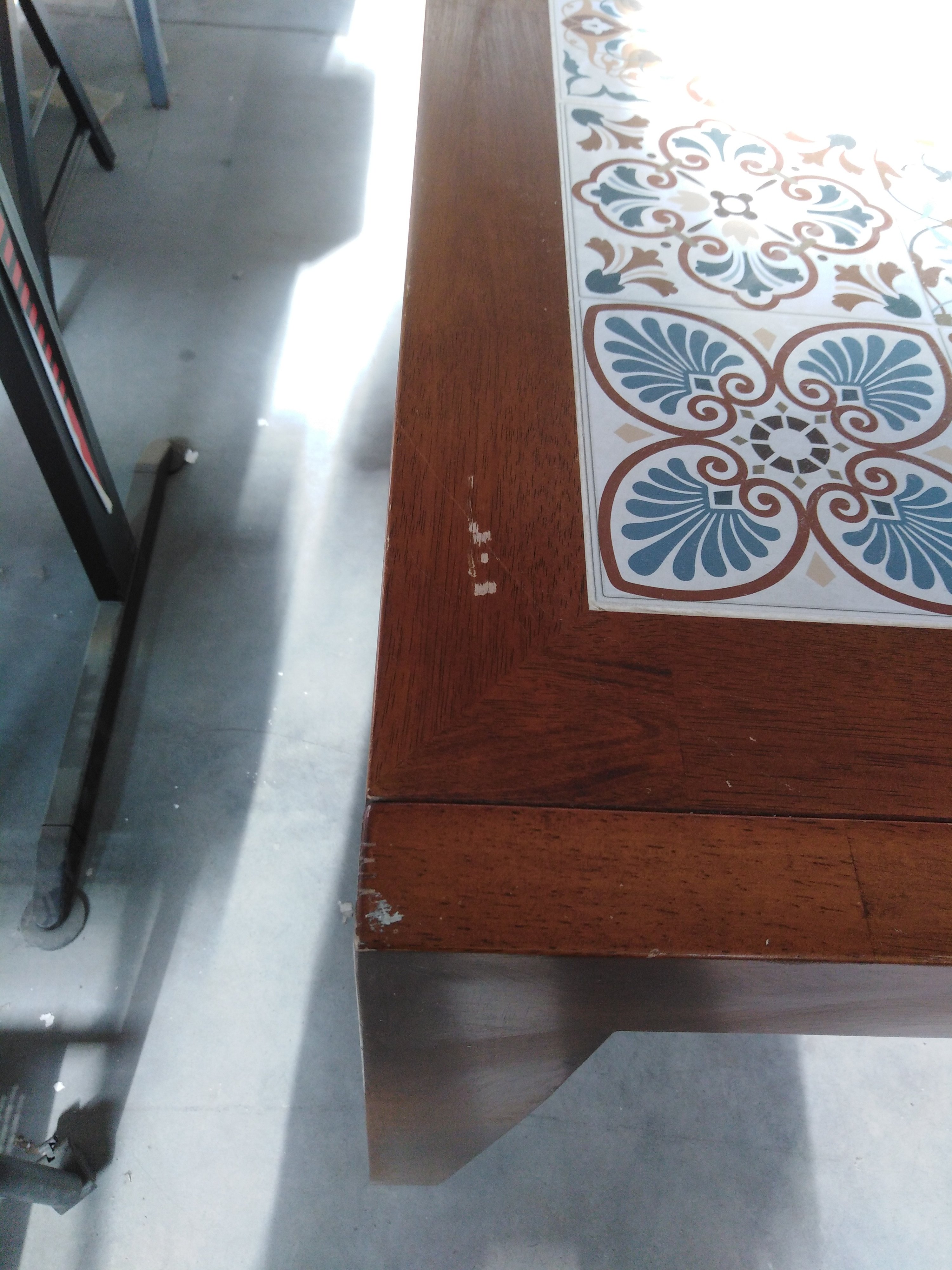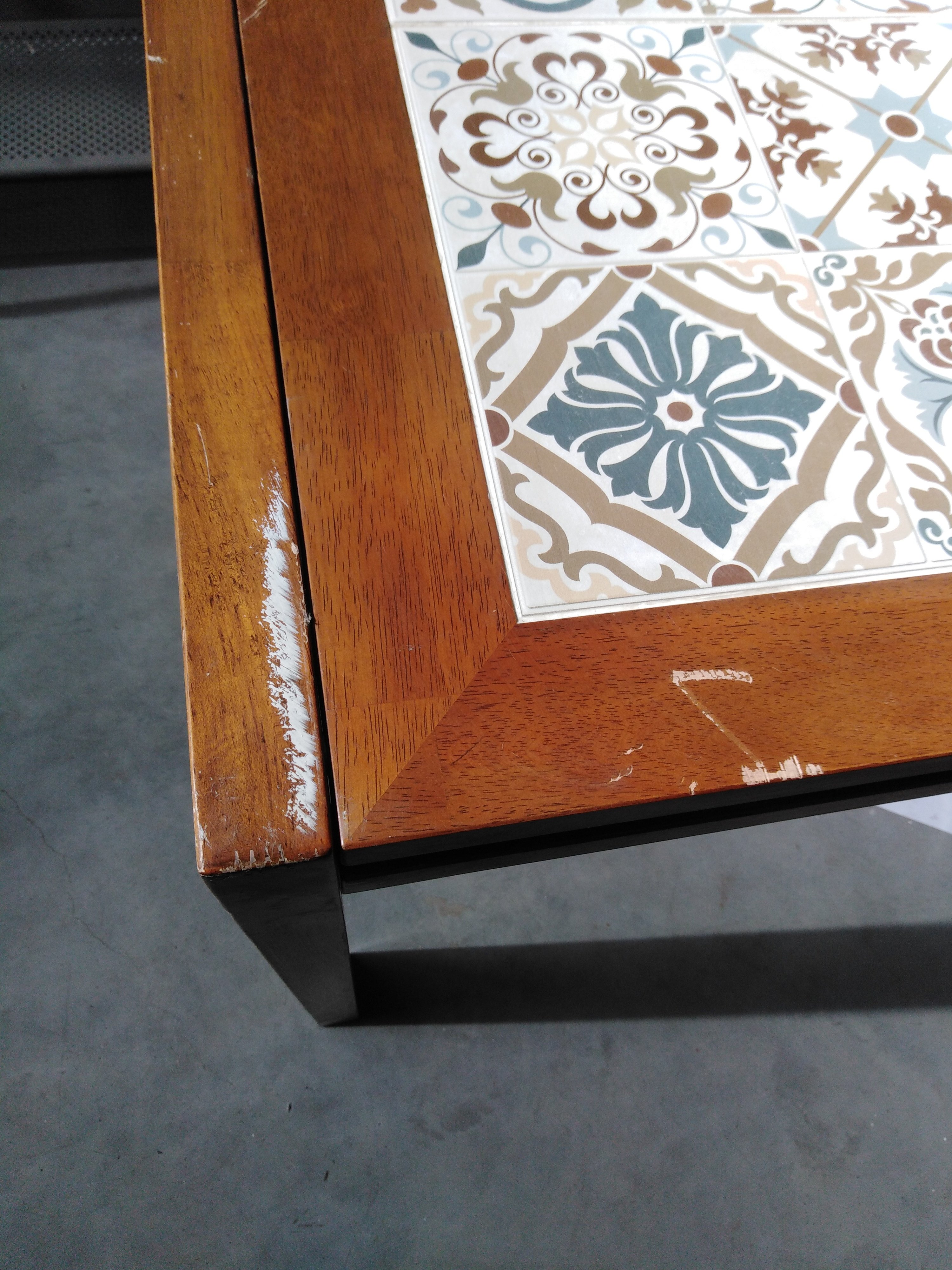 Описание дефекта: Нарушение ЛКП на столешнице и ножках, трещины и царапины по деревянным деталям