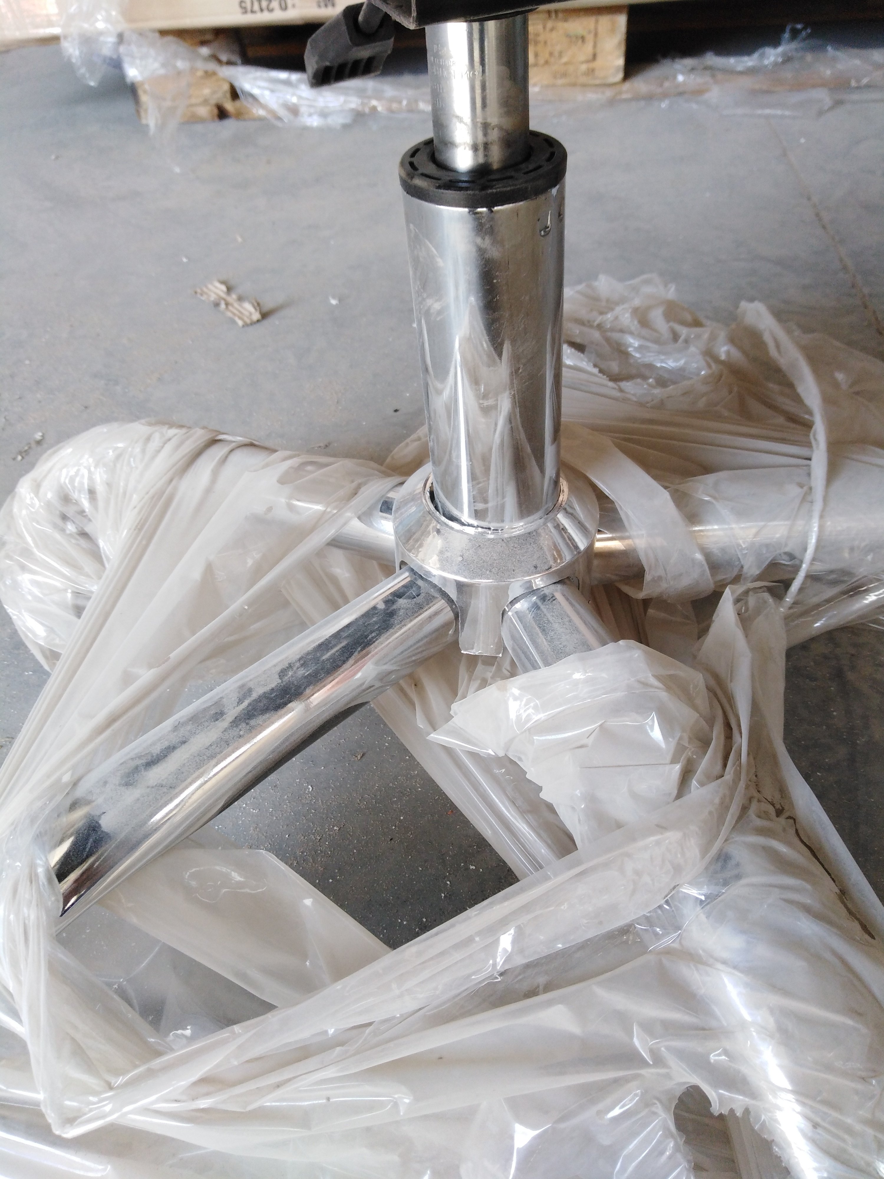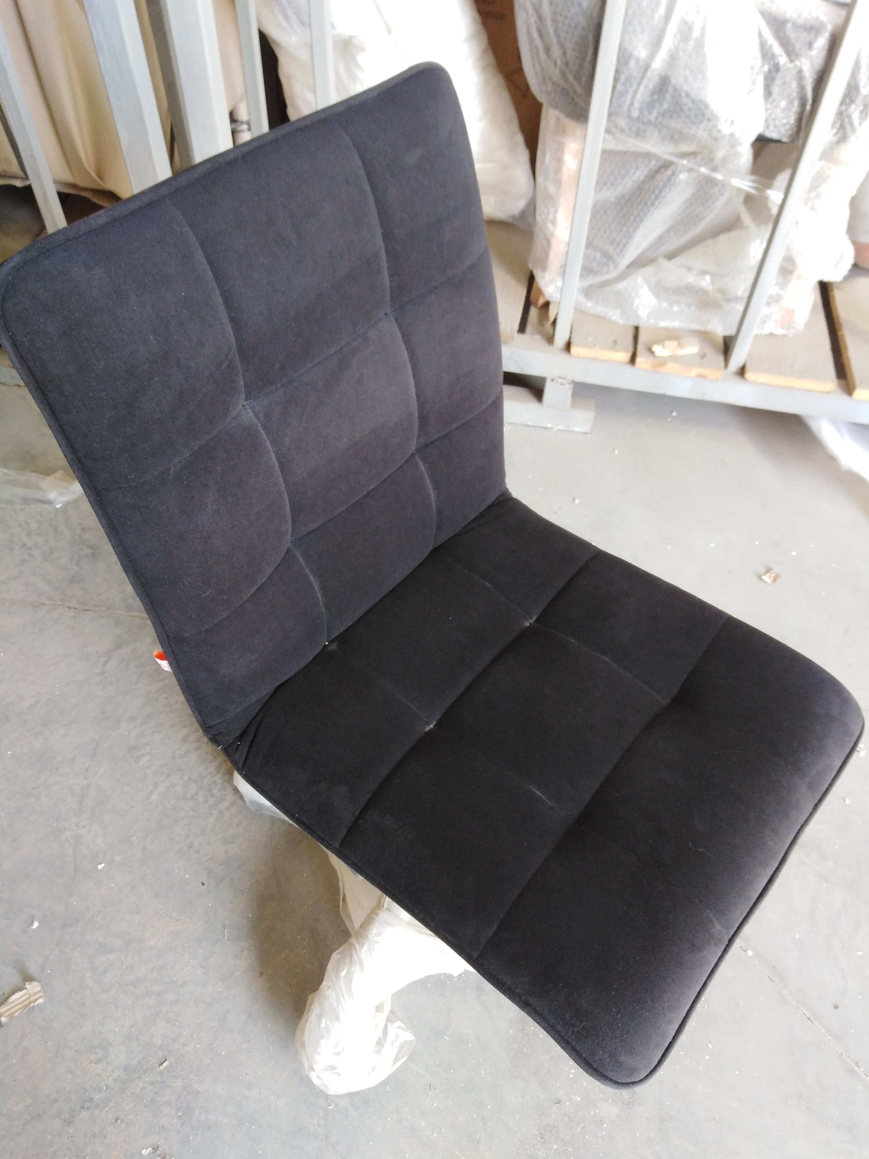 Описание дефекта: Потёртость материала сидения и спинки. Царапины на хроме крестовины