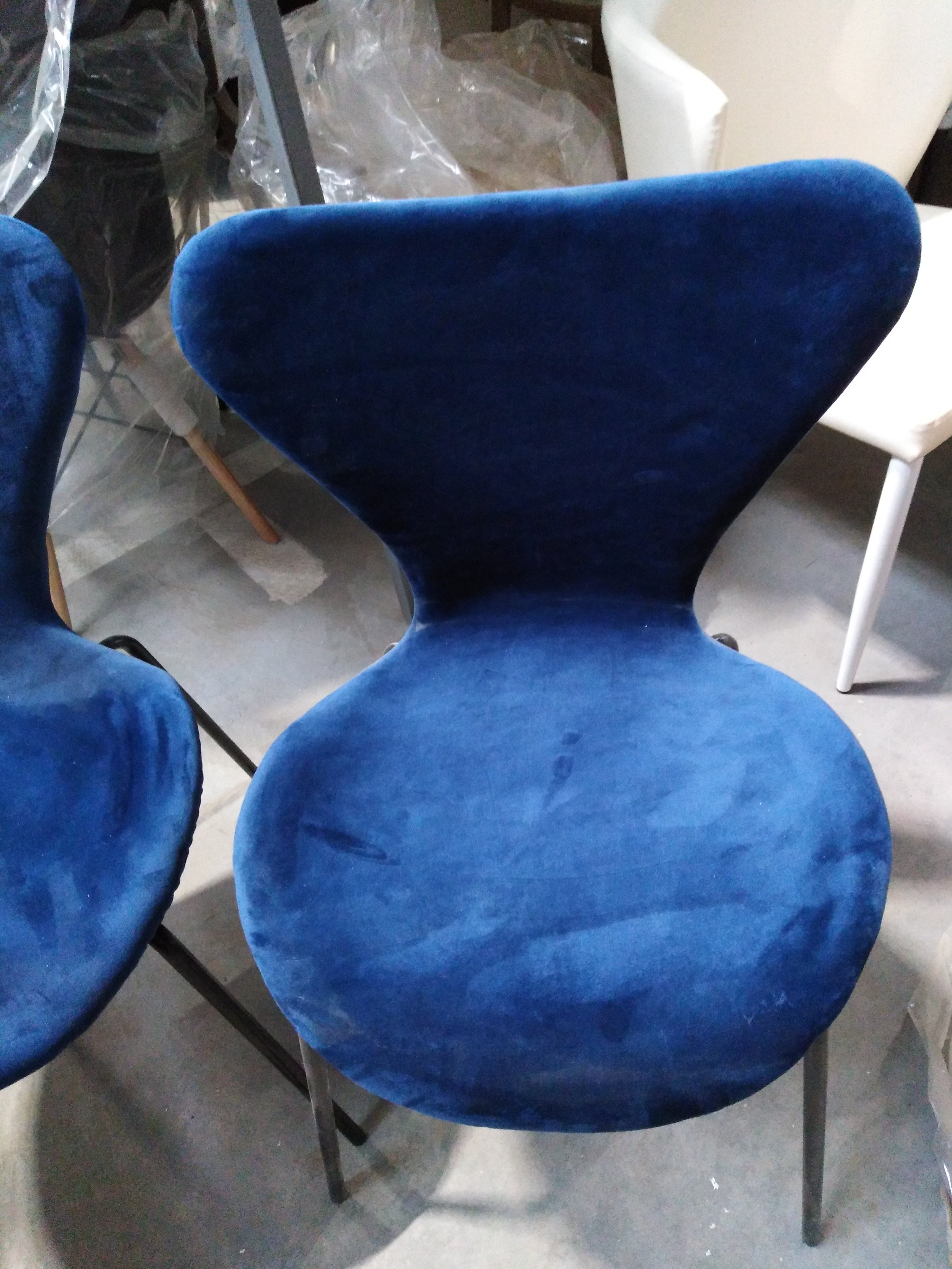 Описание товара без дефектов: Изящный силуэт стула Jacobsen SOFT, созданного в стиле знаменитого стула Series 7 датского дизайнера Арне Якобсена, украсит практически любой интерьер. Изогнутые формы с мягкими и утонченными линиями, напоминающие стиль модерн середины двадцатого века, не теряют своей актуальности. Принципы эргономики и лаконичности ярко прослеживаются в дизайне стула. Теплая бархатистая поверхность сиденья синего цвета и спинки обеспечит максимальный уют и комфорт. Стул отлично выглядит со всех сторон, он создаст комфортную обстановку дома, будет смотреться стильно и элегантно в кафе или ресторане. Тканевая обивка из флока обладает повышенной износостойкостью, гипоаллергенна и способна на долгие годы сохранить свой первоначальный цвет, не протираясь и не выцветая. Модель относится к коллекции Modern, поставляется в разобранном виде.
