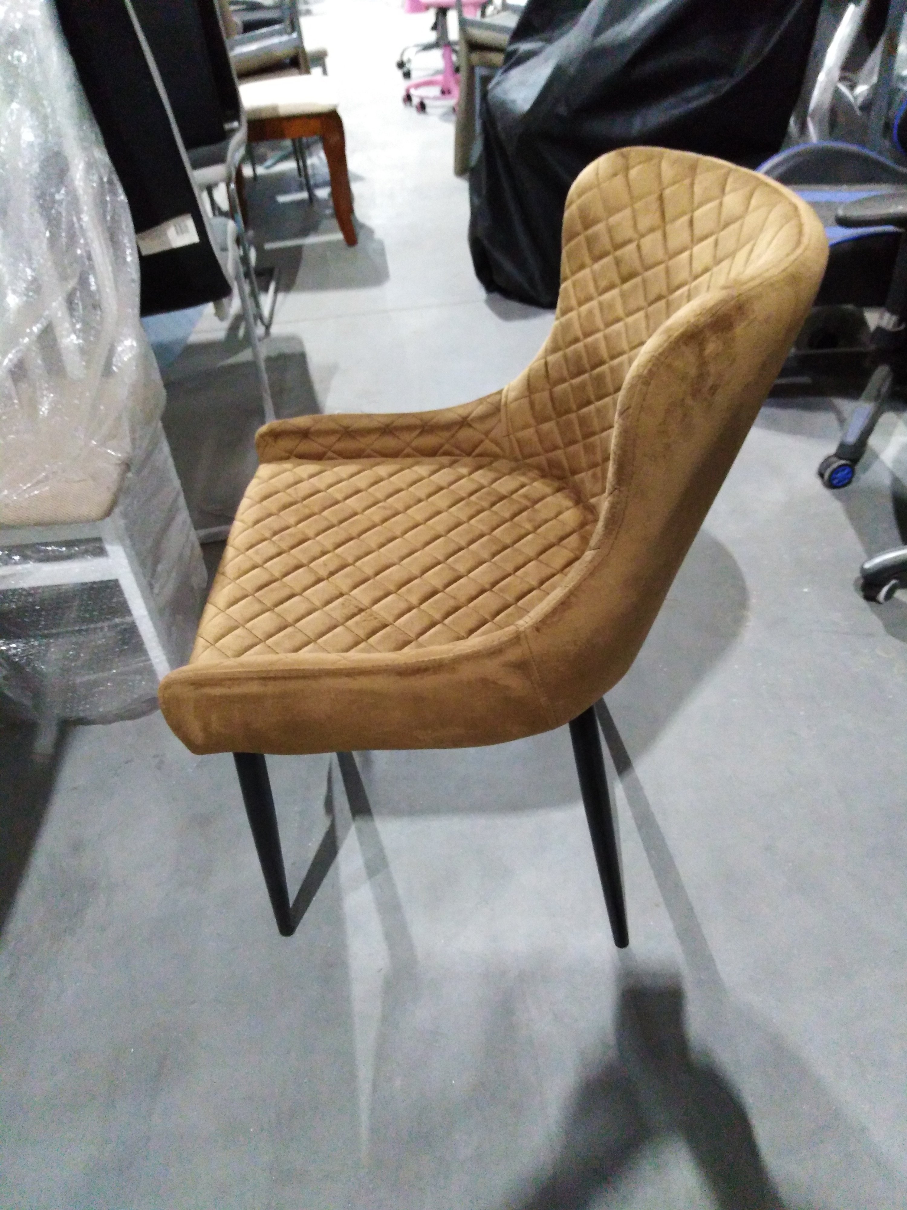 Описание товара без дефектов: Уникальный силуэт стула ELI из коллекции Modern – это удачное сочетание простоты и элегантности. Он хорошо впишется в обстановку гостиной, кухни или столовой. Простая форма, стеганая обивка благородного цвета и изящные металлические ножки придают стулу особую красоту и привлекательность. Удобные и обволакивающие формы спинки и сиденья обеспечат комфорт на протяжении длительного времени. Прочные металлические ножки делают модель крепкой и основательной. Тканевая обивка выглядит дорого, стильно, элегантно. Ее бархатистая и приятная на ощупь поверхность притягивает к себе мягкостью и изысканной красотой. Ткань обивки коричневого цвета обладает повышенной износостойкостью, способна на долгие годы сохранить свой первоначальный цвет, не протираясь и не выцветая.