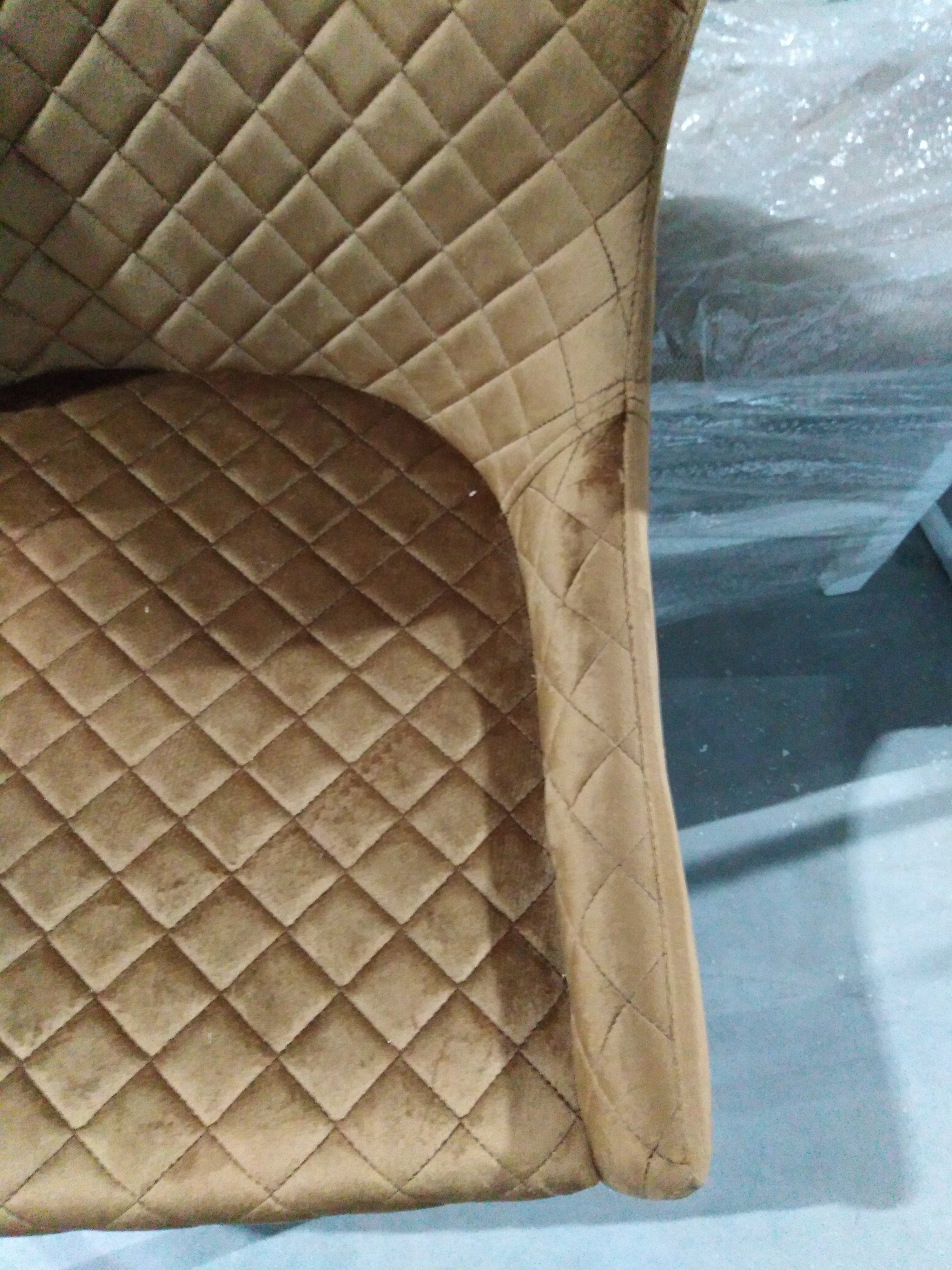 Описание дефекта: На спинке и сидении стула имеется замятие материала, потёртости на материале