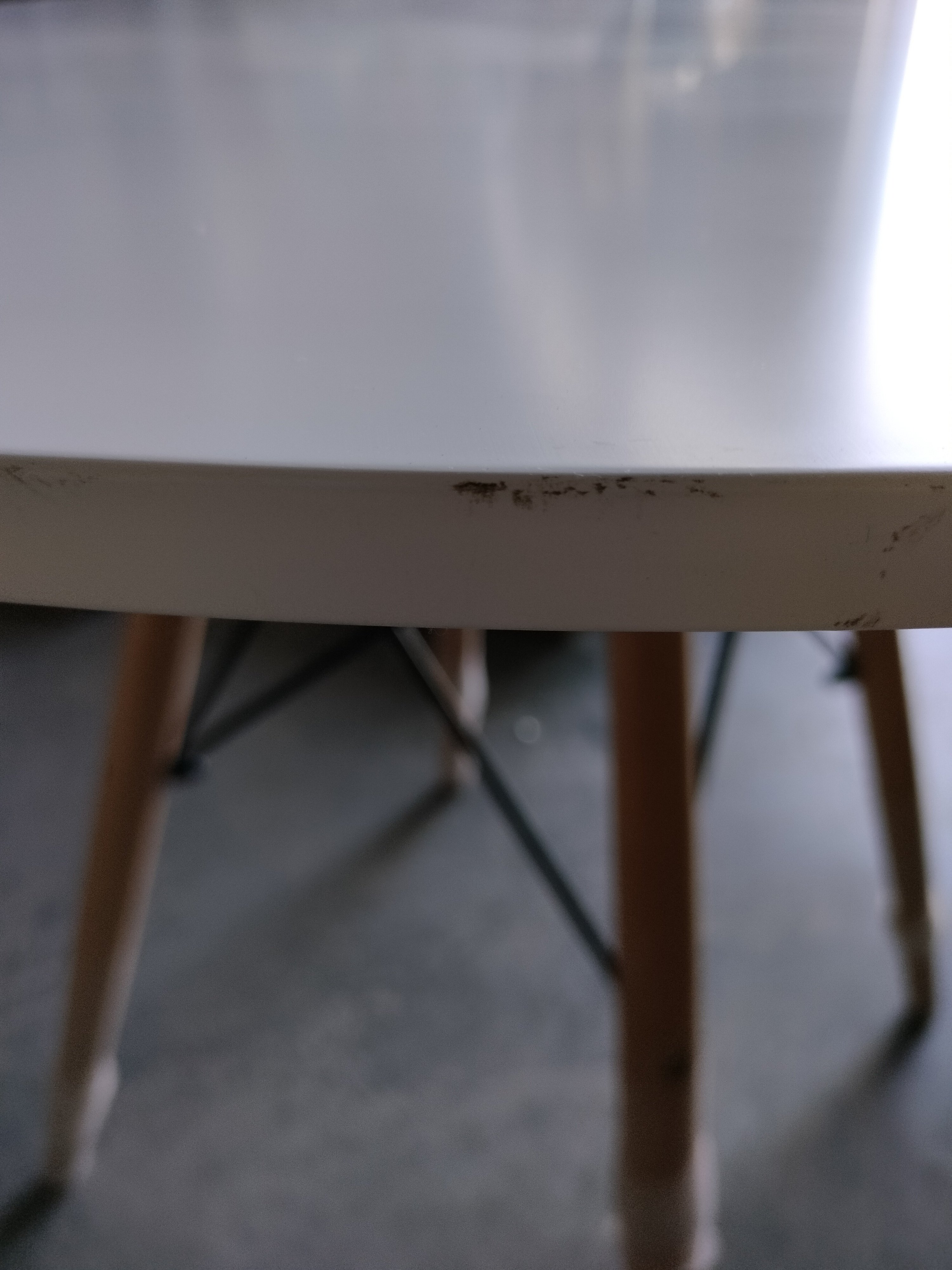 Описание дефекта: Трещины и сколы на юбке столешницы, нарушение ЛКП