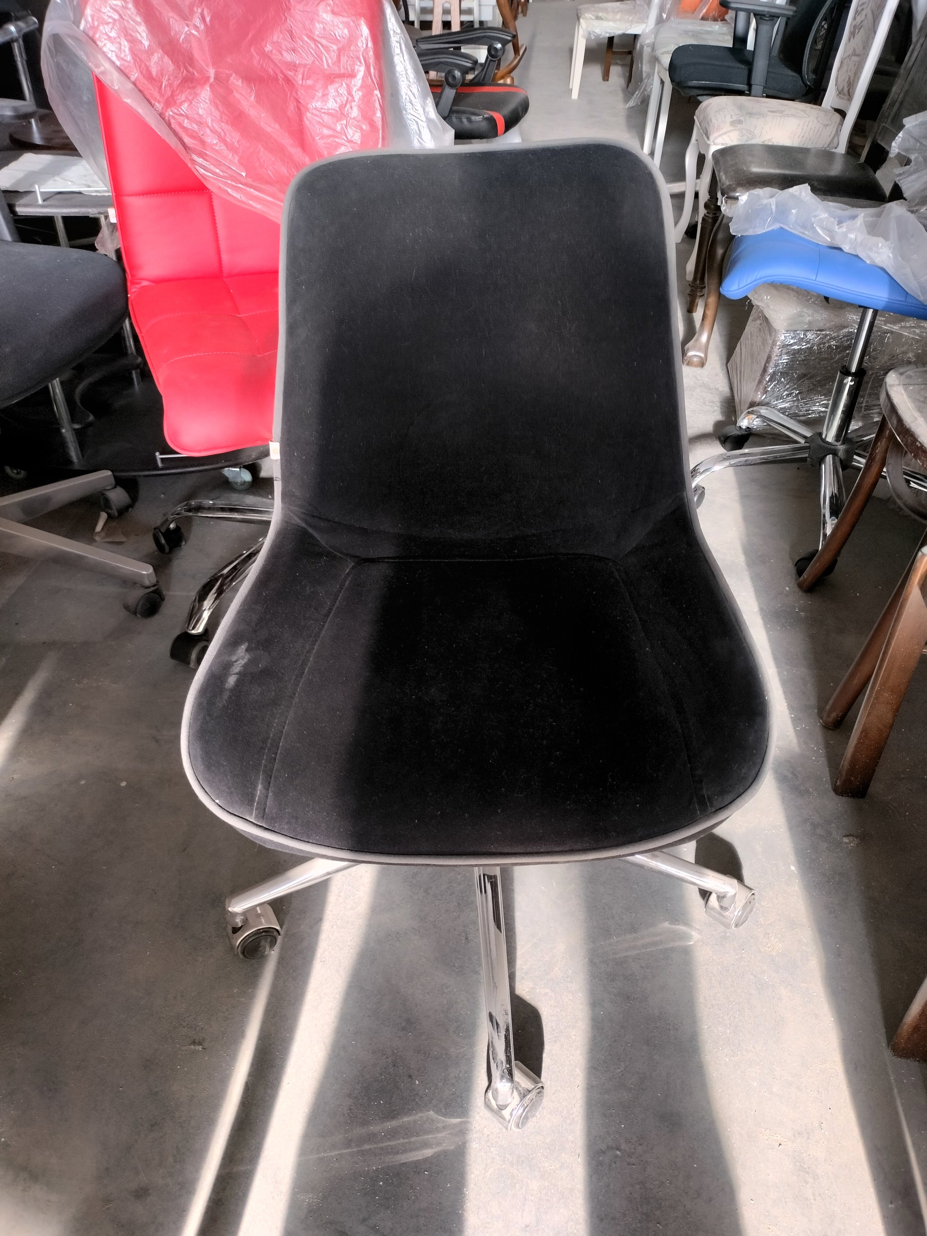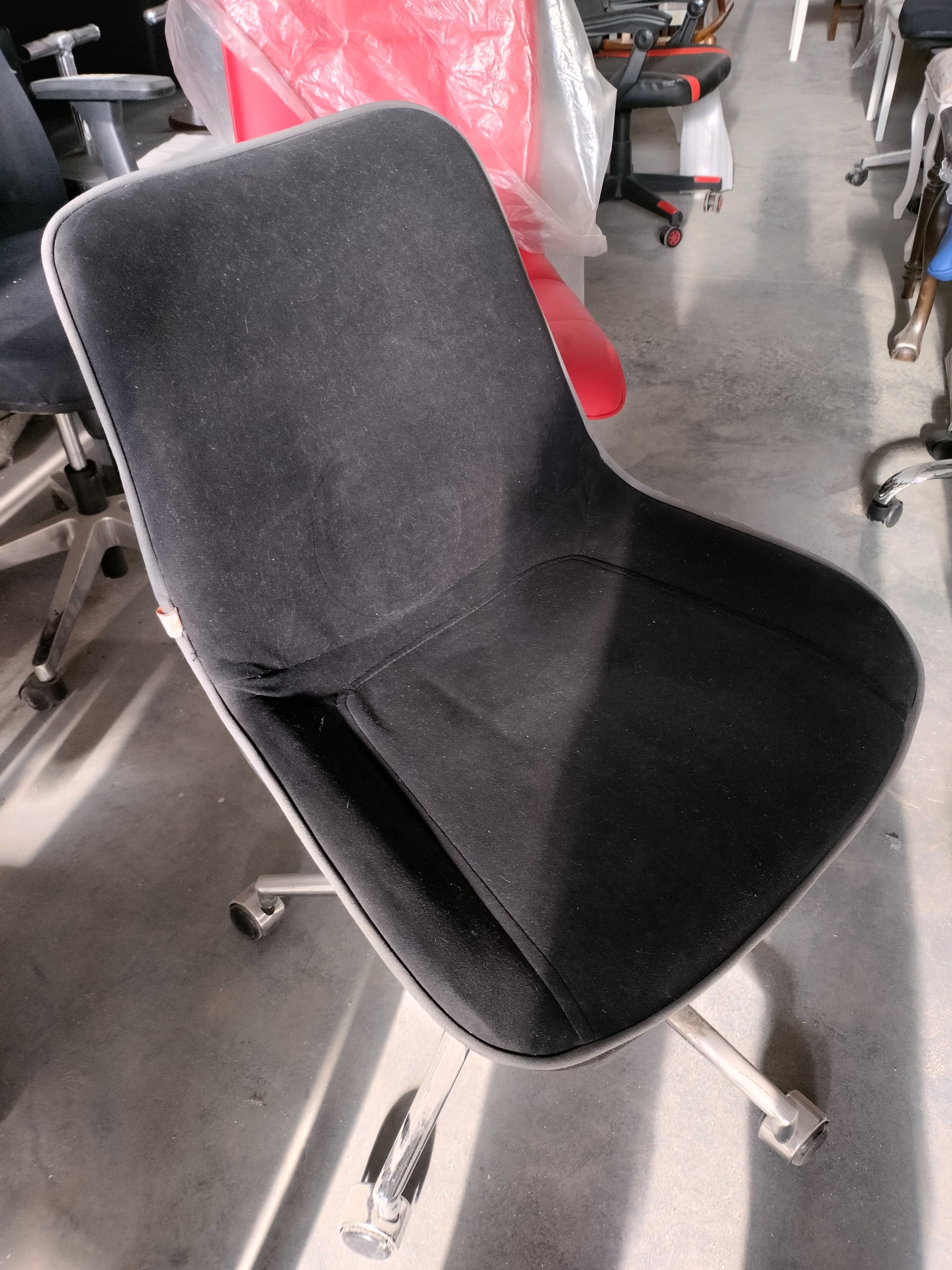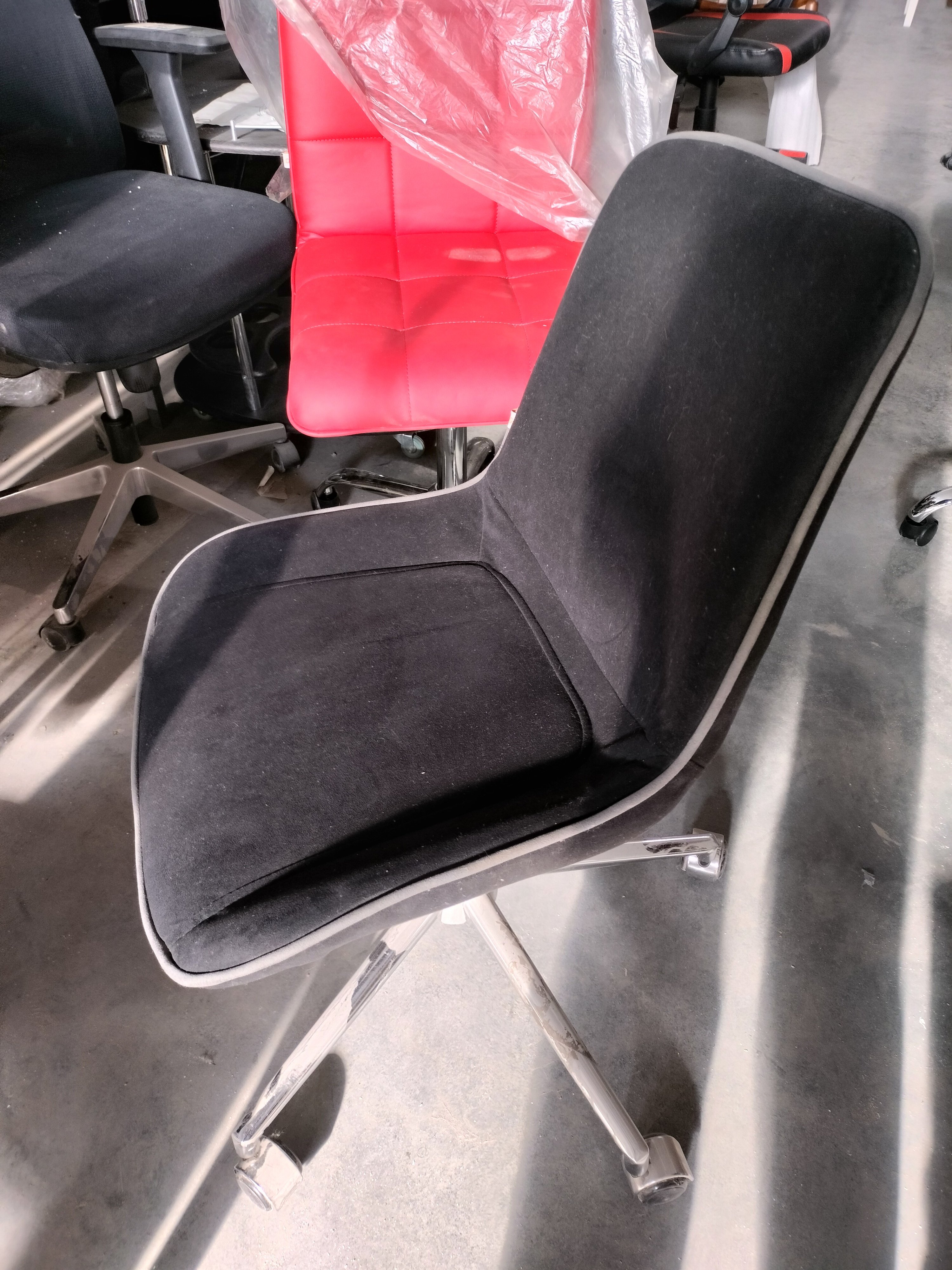 Описание дефекта: Частичная загрязнённость материала сиденеия и спинки. Нарушение ЛКП, царапины на крестовине
