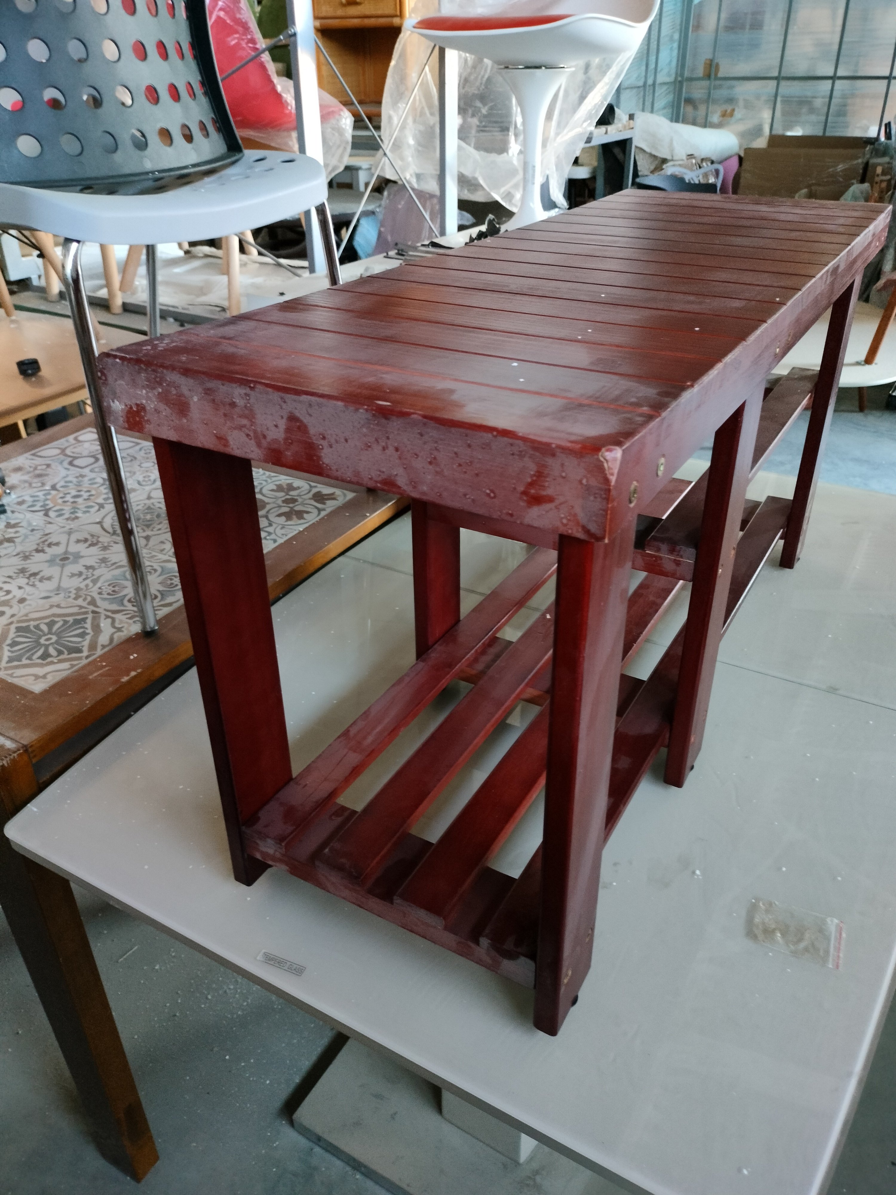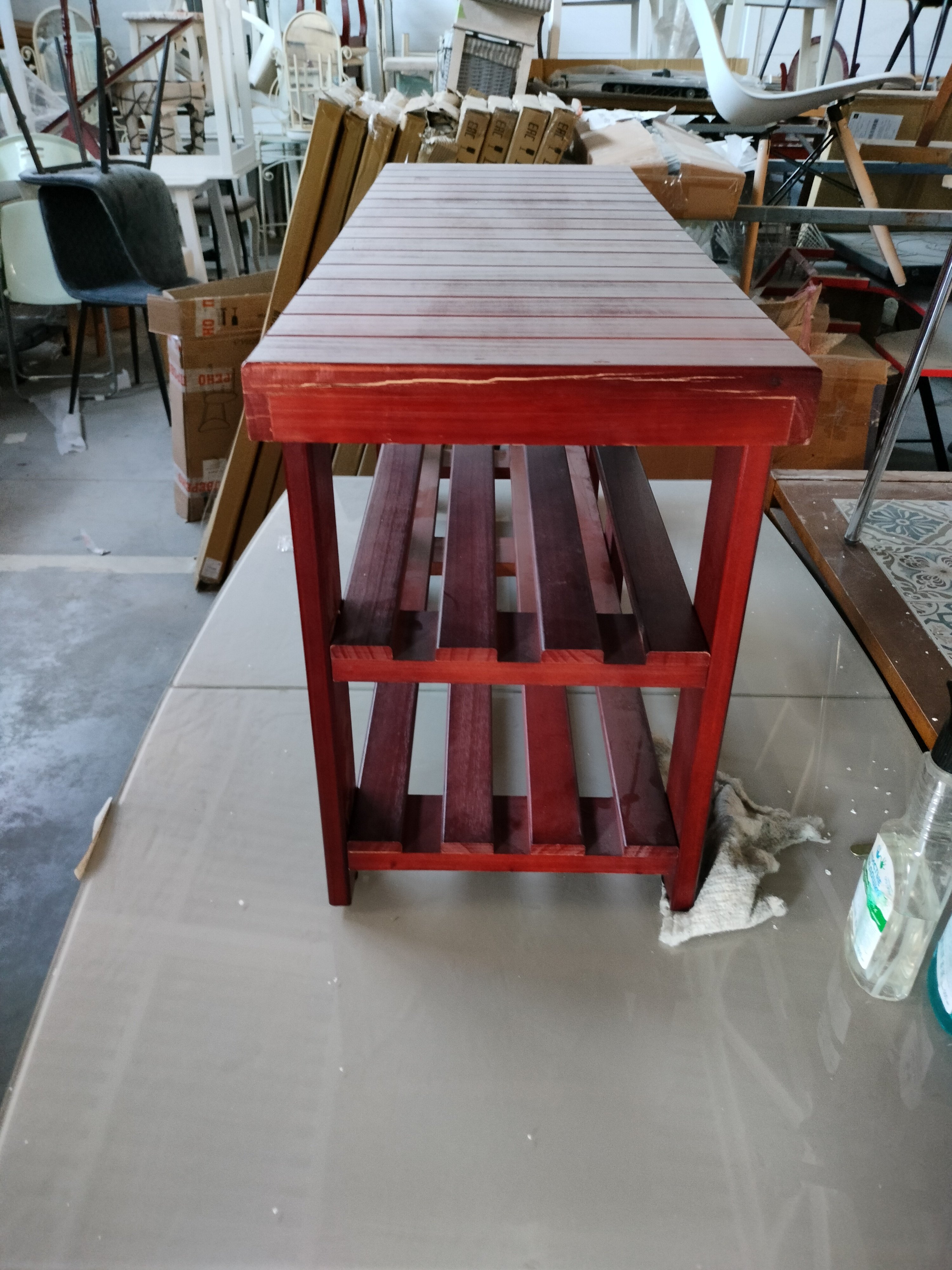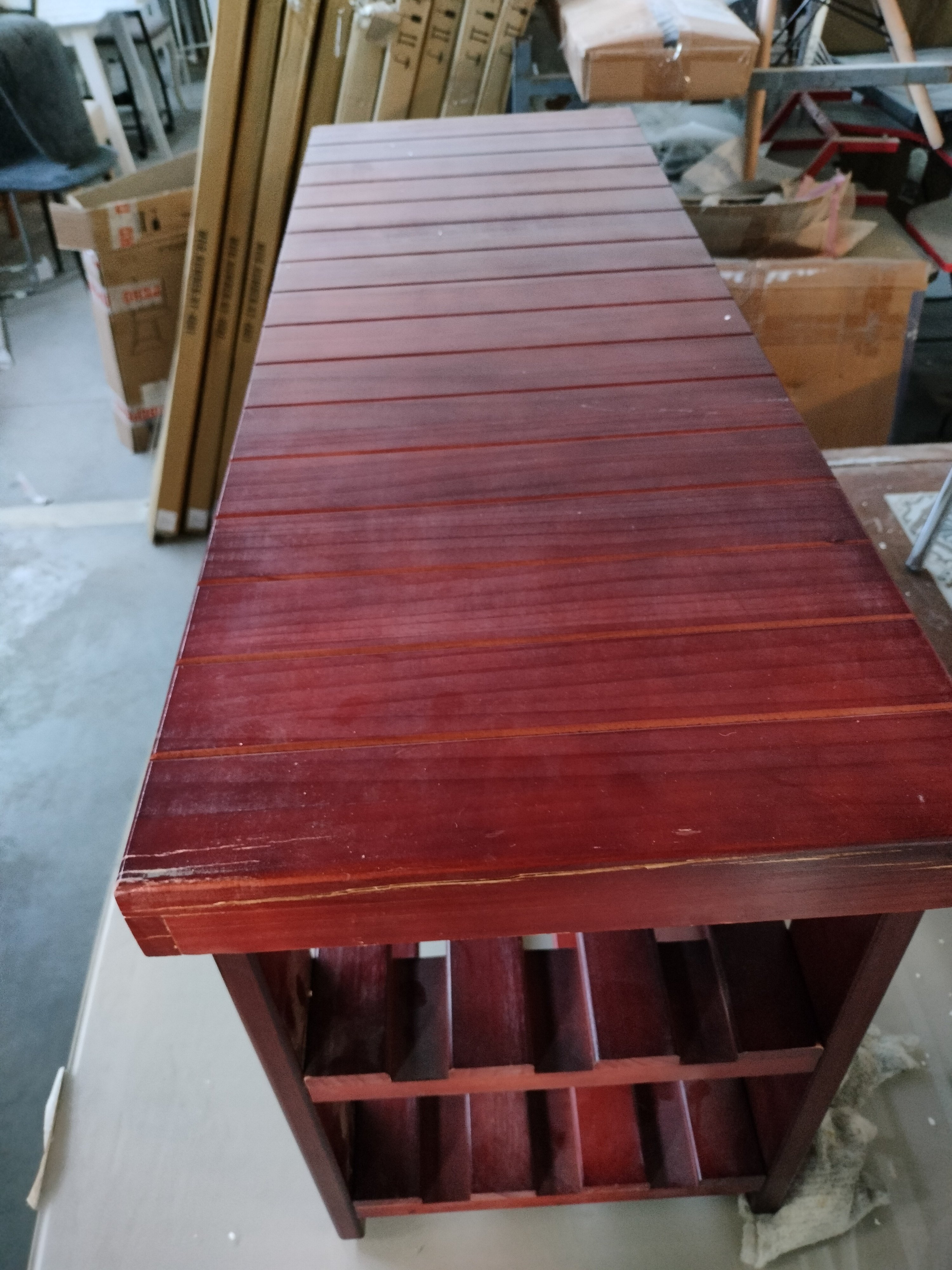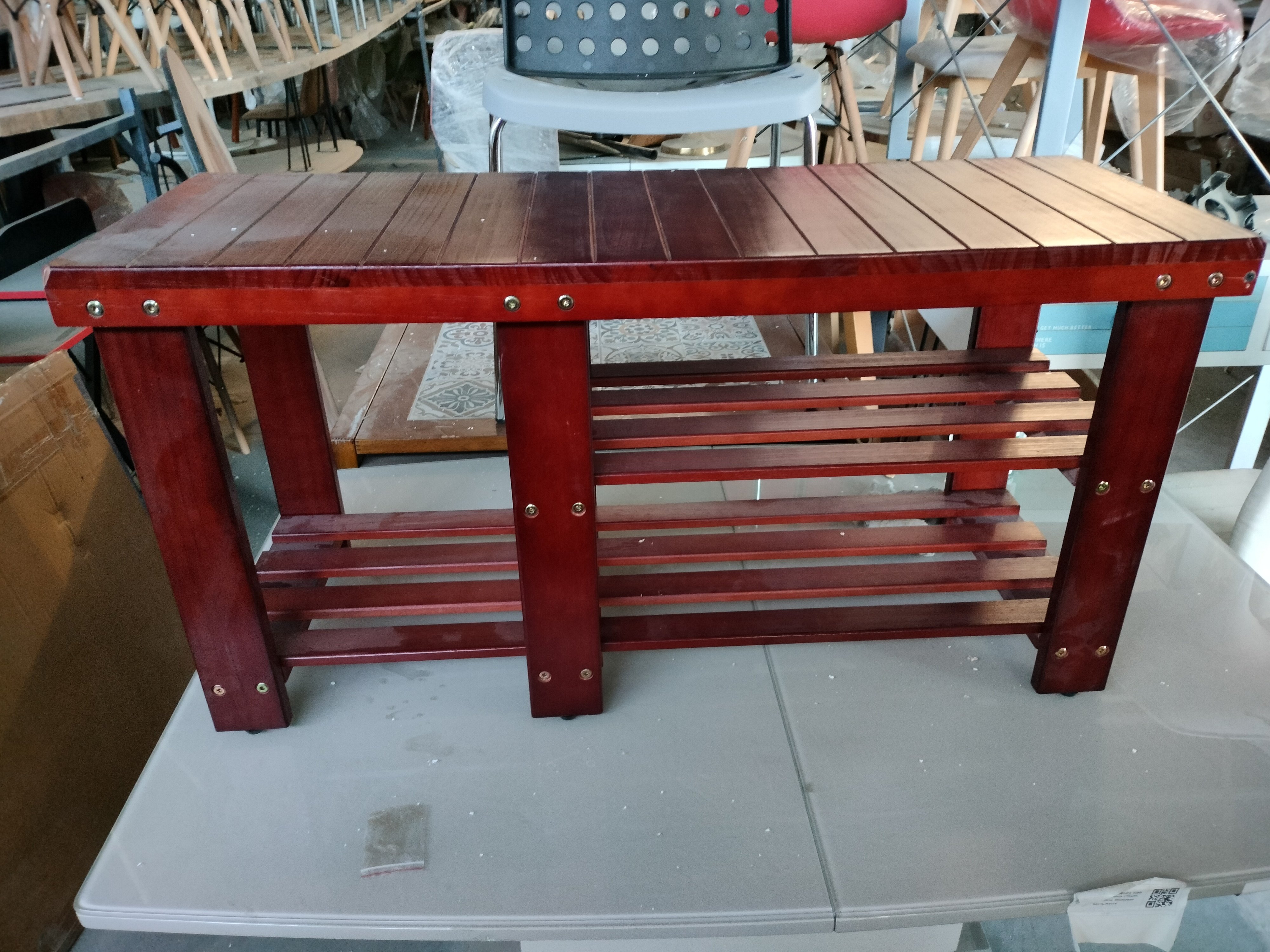 Описание товара без дефектов: Обувница-скамья. Материал: МДФ/дерево. Цвет: вишня (сherry). Размеры: 90х33х45,5 см