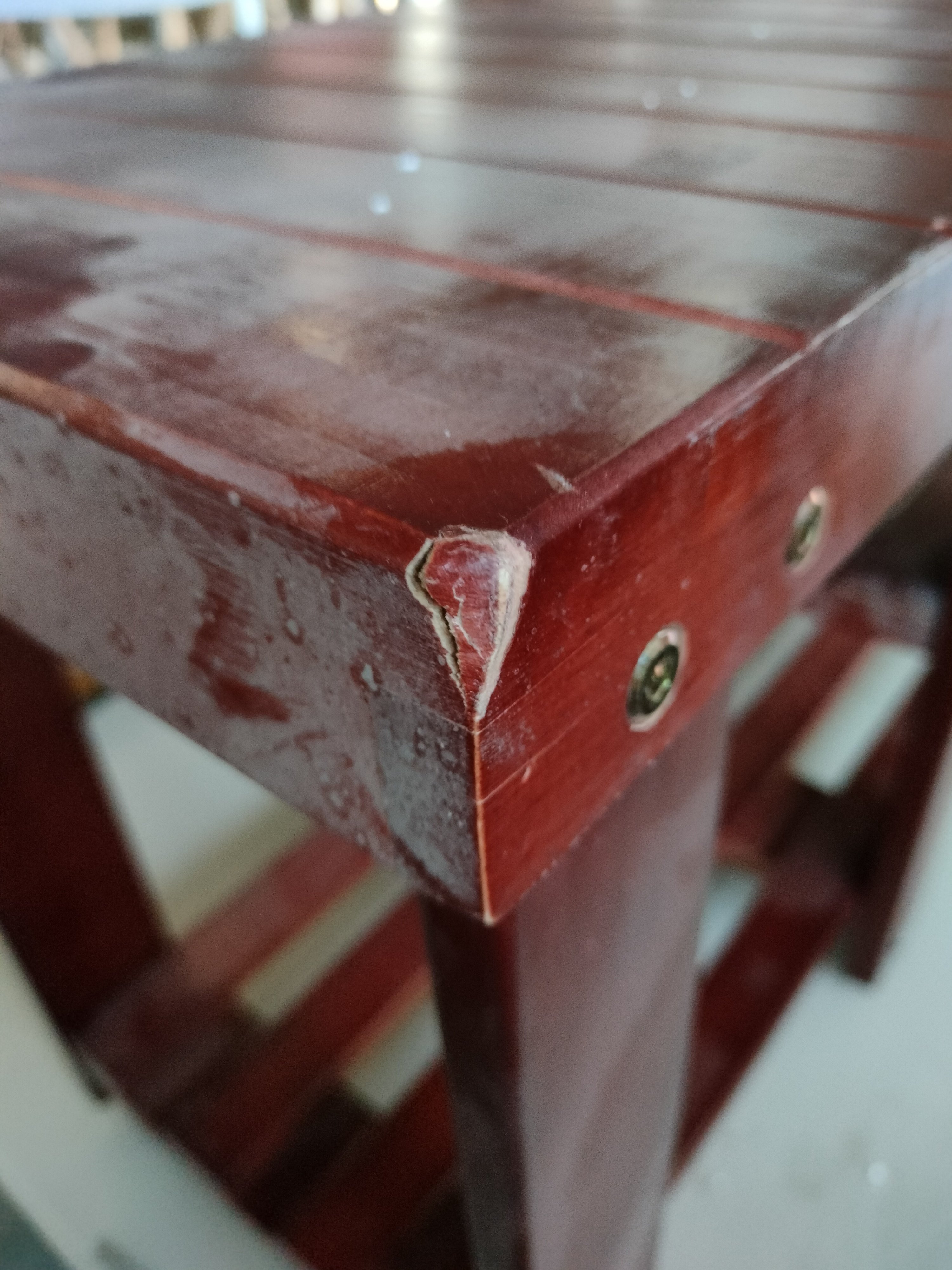 Описание дефекта: Нарушение ЛКП, трещины и сколы по деревянным поверхностям