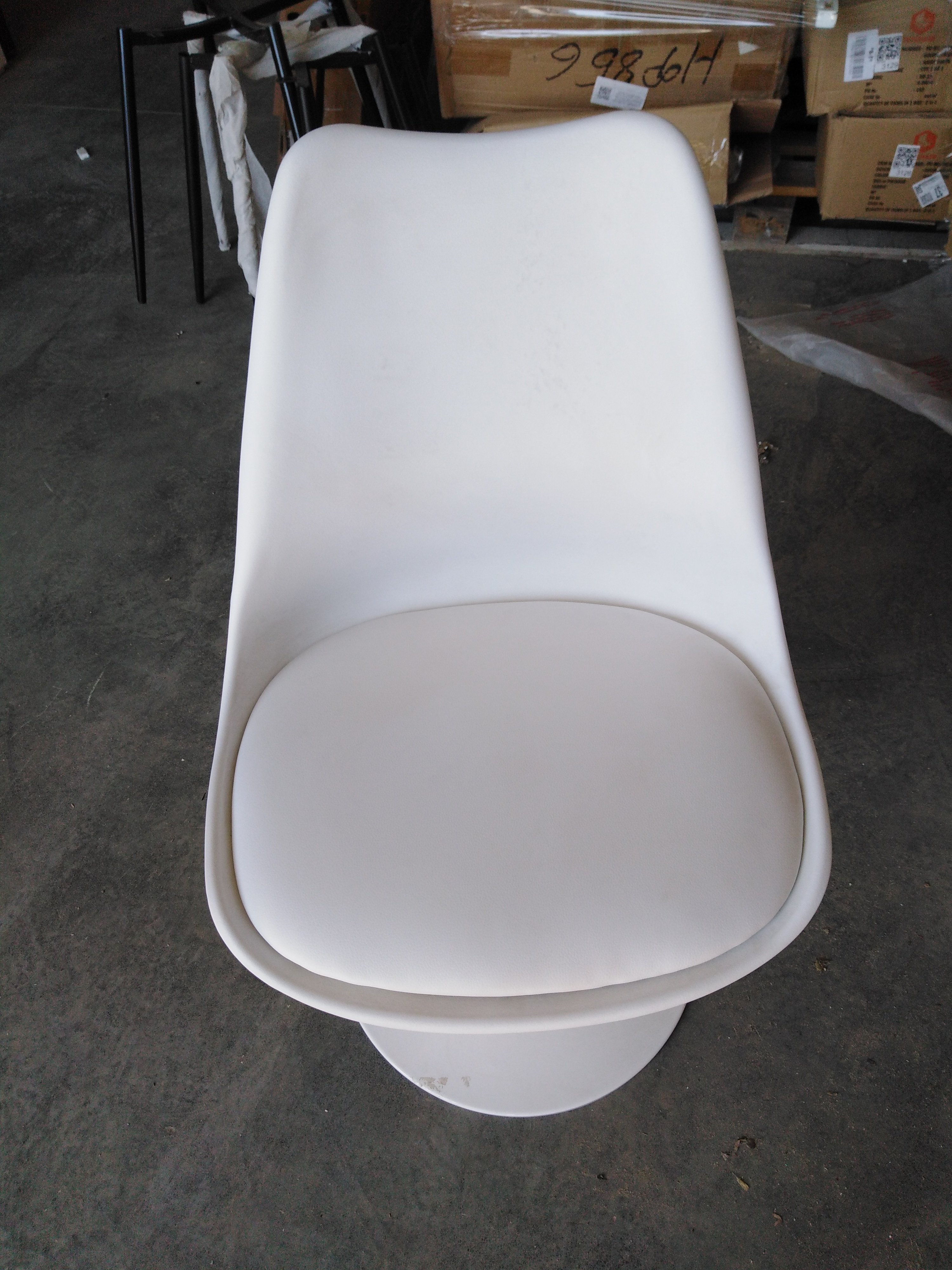Описание товара без дефектов: Великолепный стул TULIP FASHION CHAIR из коллекции Modern выполнен в стиле известной работы американского архитектора Ээро Сааринена - стула Tulip, который он спроектировал в середине двадцатого века. Уникальная форма стула и сочетание цветов идеально соответствуют концепции современного стильного пространства. Стул подкупает своей универсальностью и комфортной посадкой, благодаря которым варианты его расположения в интерьере безграничны. Цельная спинка и сиденье из белого пластика с мягкой накладкой из полиуретана белого цвета обеспечат удобную посадку на протяжении длительного времени. Металлическая ножка и круглое основание придают стулу большую устойчивость. Накладка из полиуретана – красивая, надежная, не требующая сложного ухода. Пластик и металл – прочные и долговечные материалы, способные выдерживать большую нагрузку. Стул хорошо подойдет для гостиной, для кухни, для спальни, для ресторана или для кафе. Стул очень прост в сборке, инструкция по сборке прилагается.