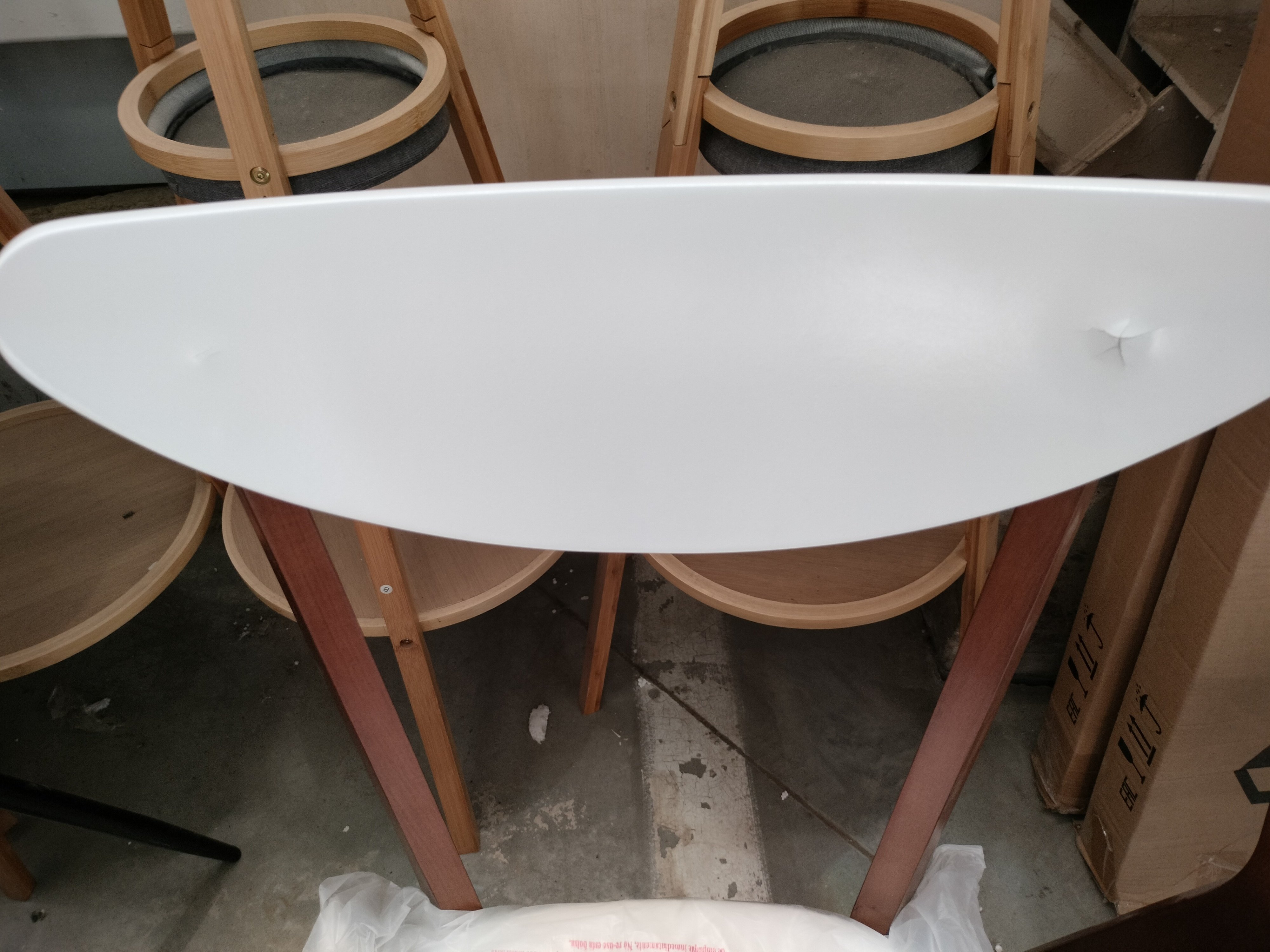Описание дефекта: На ножках нарушение лкп, потертости . одна ножка с трещиной , трещины и сколы по деревянным деталям