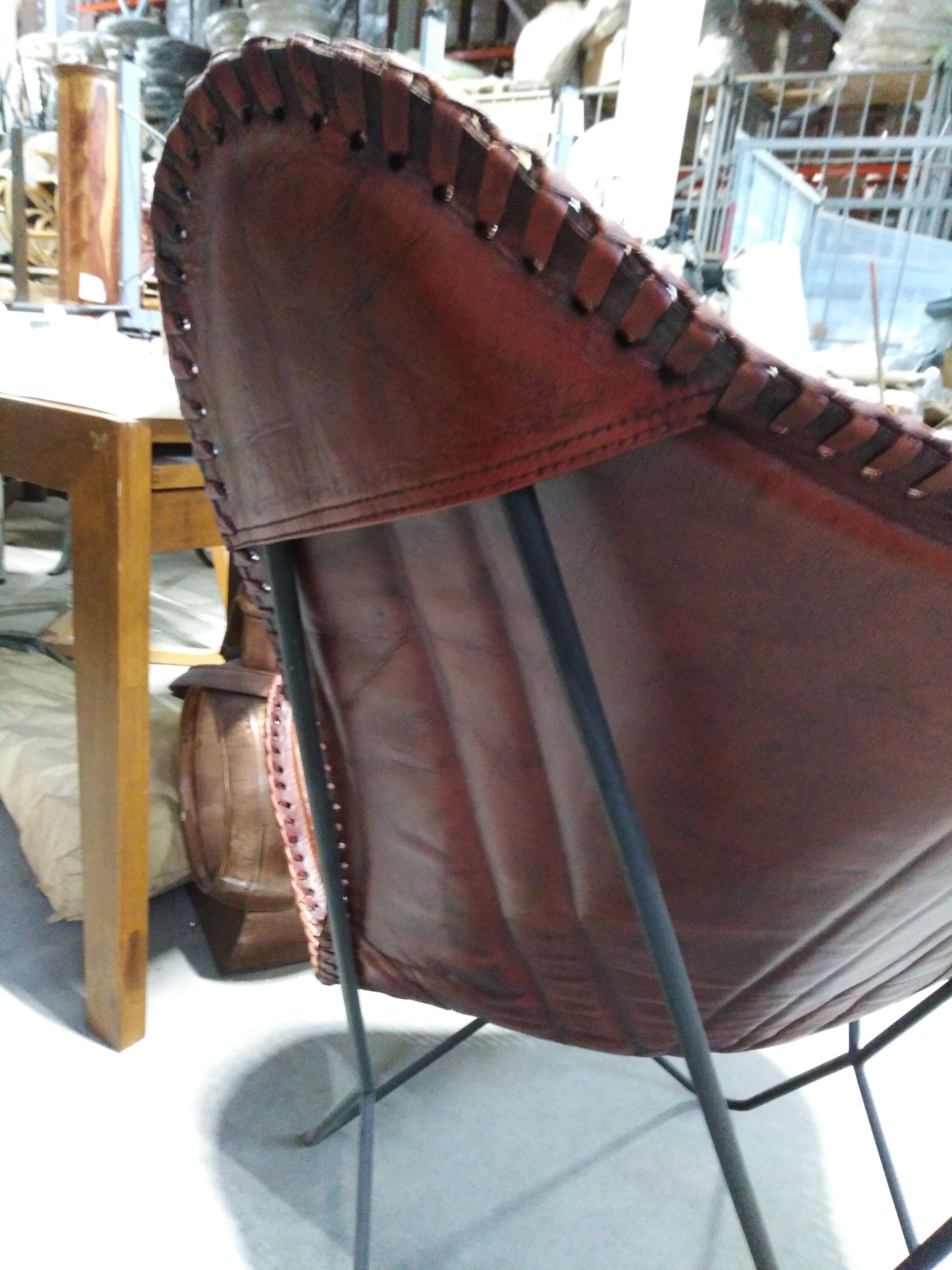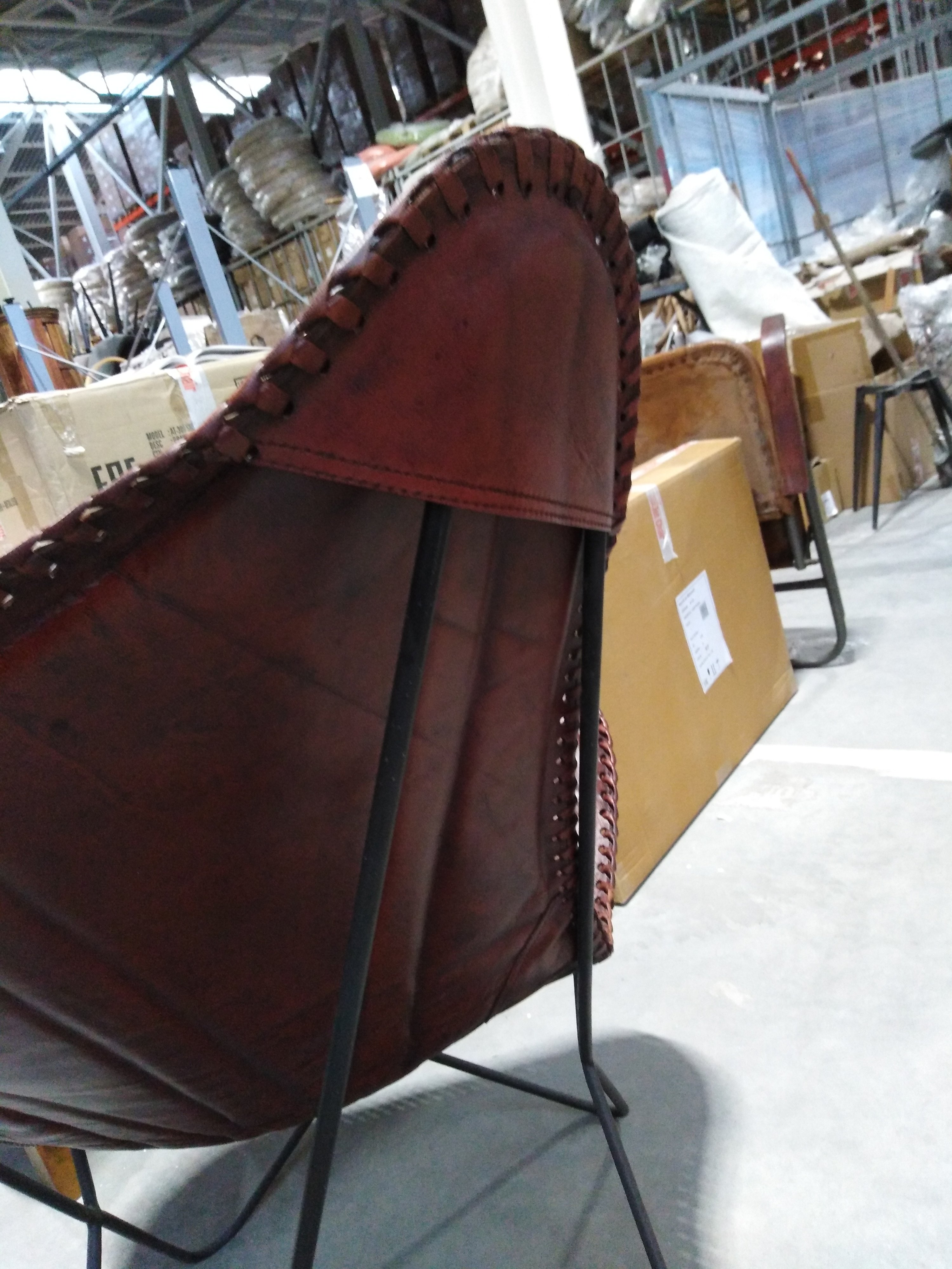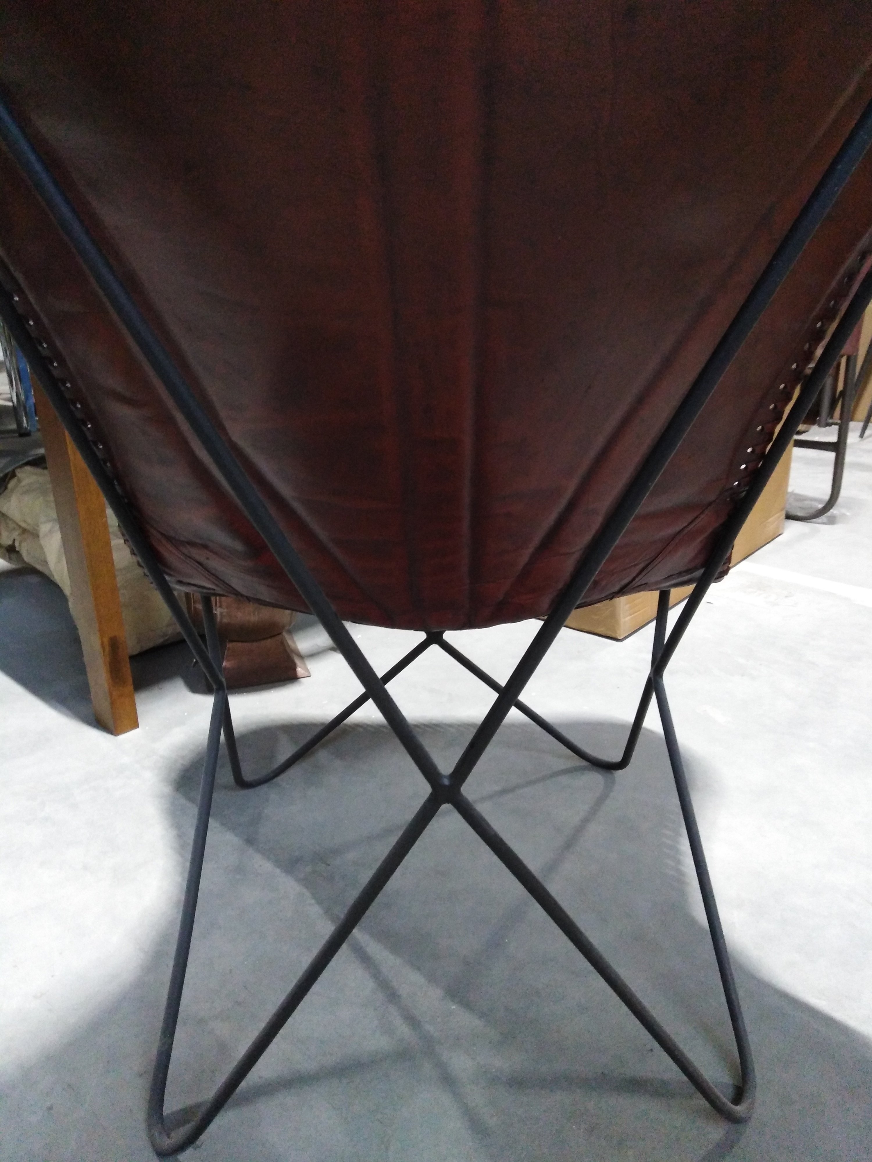 Описание товара без дефектов: Материал: каркас - металл, чехол - кожа буйвола. Цвет: металл - чёрный, кожа - коричневый. Размеры: 68х75х70 см