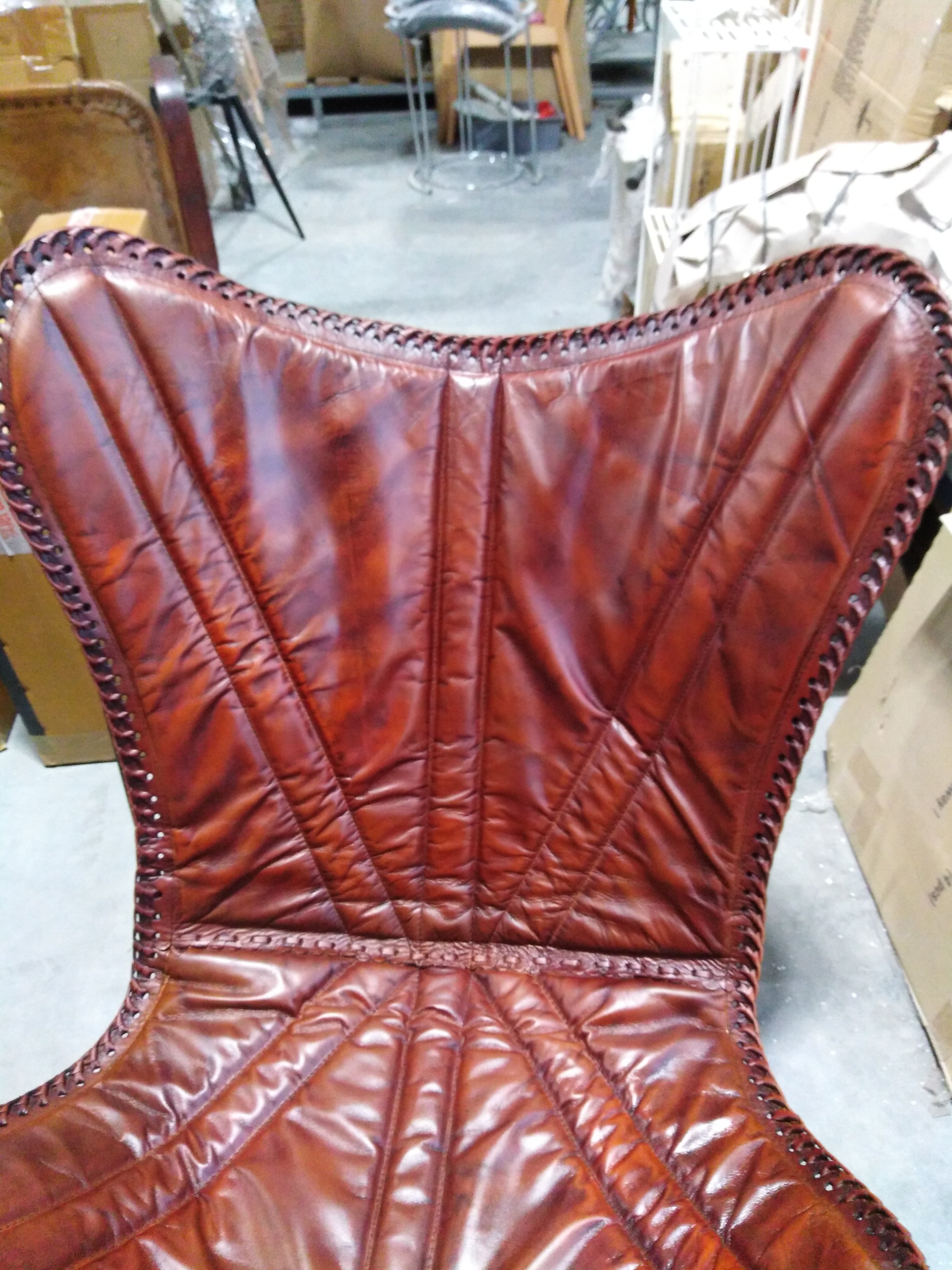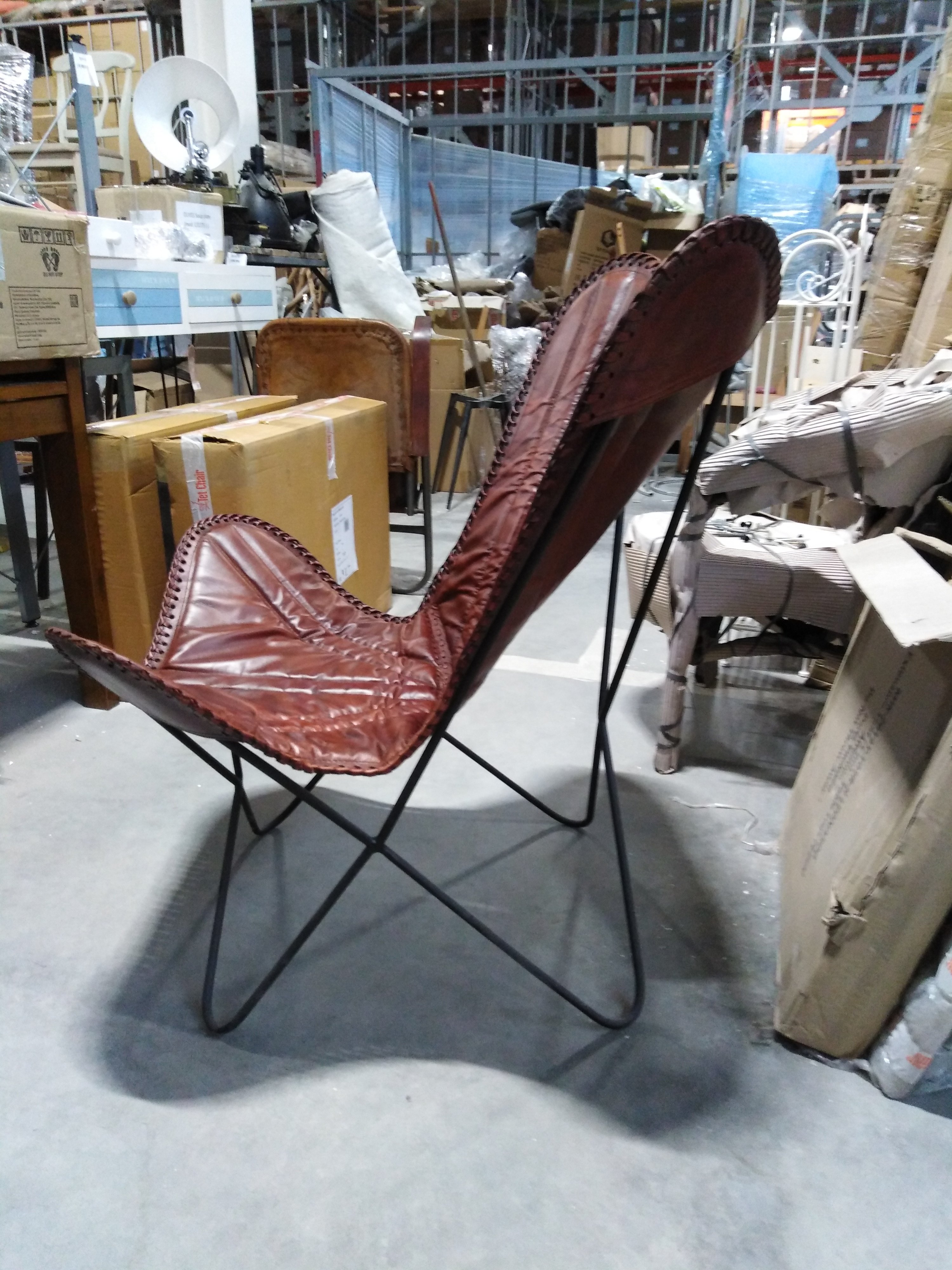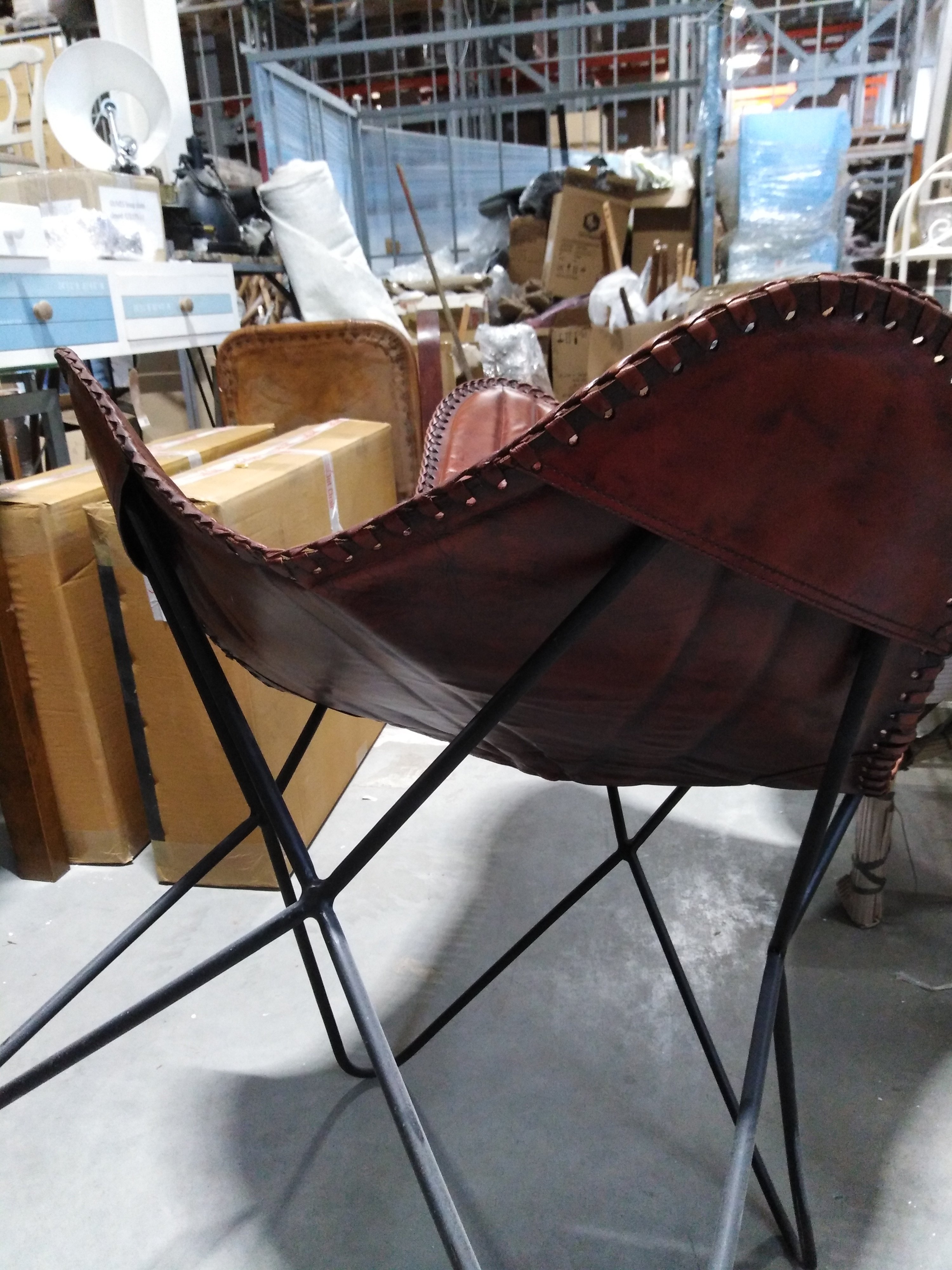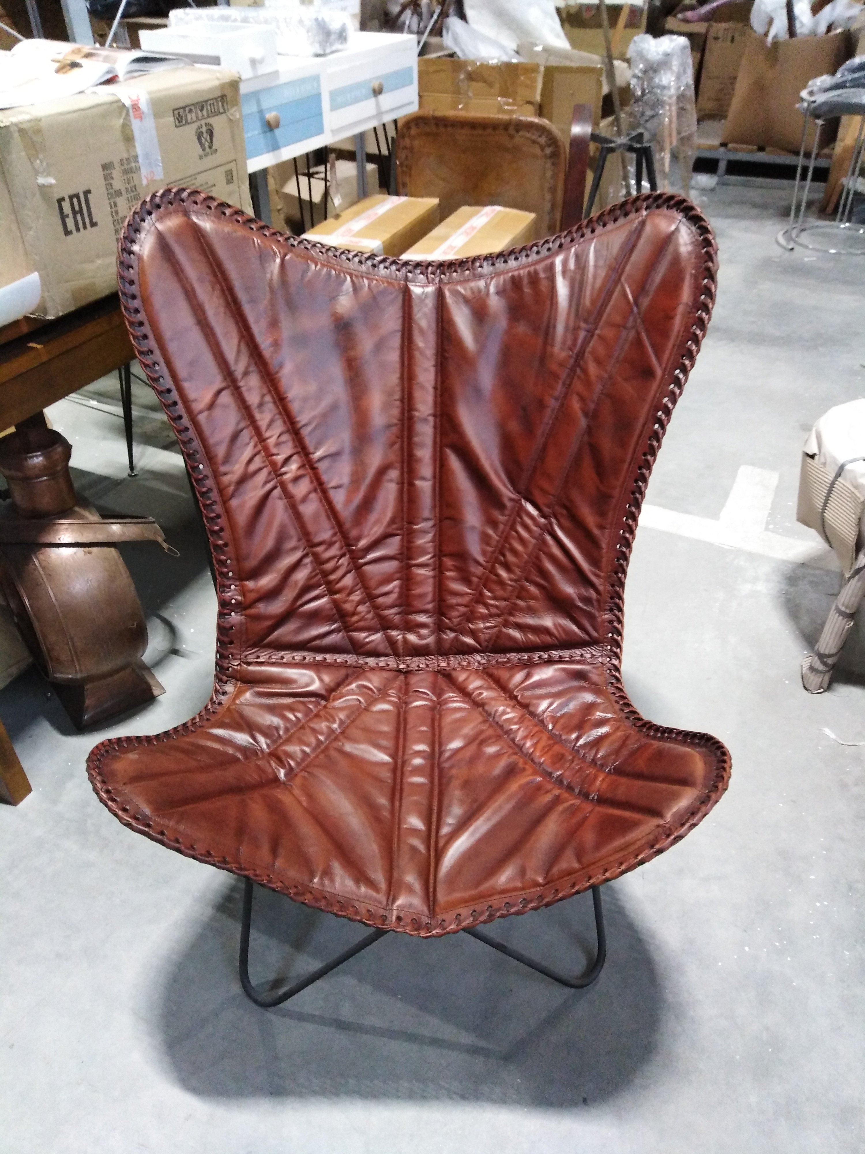 Описание товара без дефектов: Материал: каркас - металл, чехол - кожа буйвола. Цвет: металл - чёрный, кожа - коричневый. Размеры: 68х75х70 см