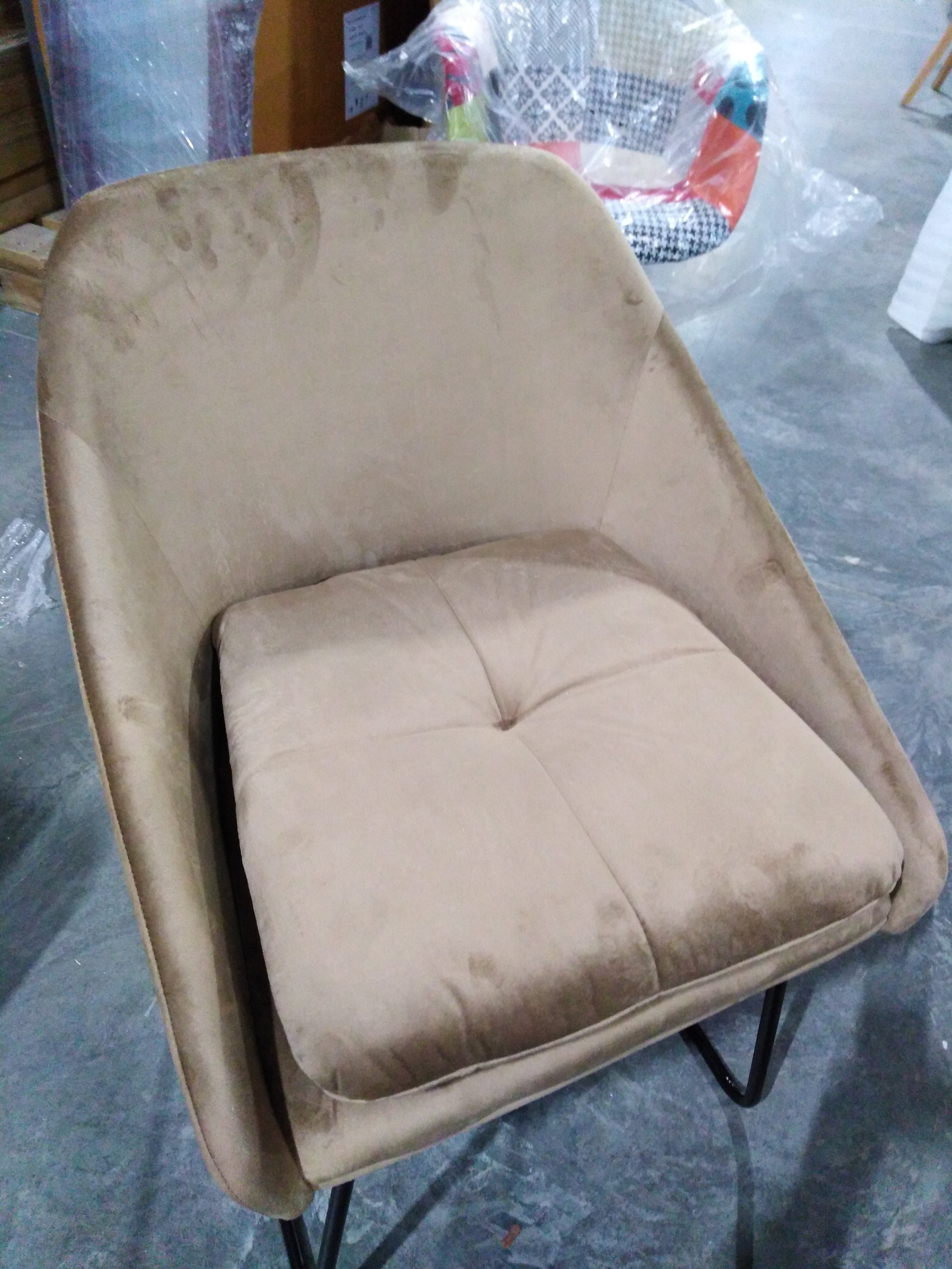 Описание товара без дефектов: Оригинальное кресло STAR из коллекции Modern – это не только уютный предмет мебели, но и важный акцент в интерьере, который может задать настроение комнате. Оно будет хорошо смотреться в гостиной, столовой, кухне, спальне, кафе. Необычный металлический каркас черного цвета прекрасно сочетается с коричневой тканевой обивкой из вельвета. Модель станет идеальным дополнением современного стильного пространства. Мягкая подушка под спину, невысокие подлокотники и удобное сиденье позволят комфортно расположиться на долгое время. Тканевая обивка из вельвета коричневого цвета не мнётся, не меняет форму, пропускает воздух, экологична и гипоаллергенна. Металлические ножки с пластиковыми подпятниками делают кресло прочным, устойчивым, предотвращают появление царапин на напольном покрытии. Данная модель прослужит вам долгие годы, радуя своим первоначальным видом. Кресло подойдёт для гостиной, для кухни или для спальни. Кресло очень простое в сборке, инструкция по сборке прилагается.