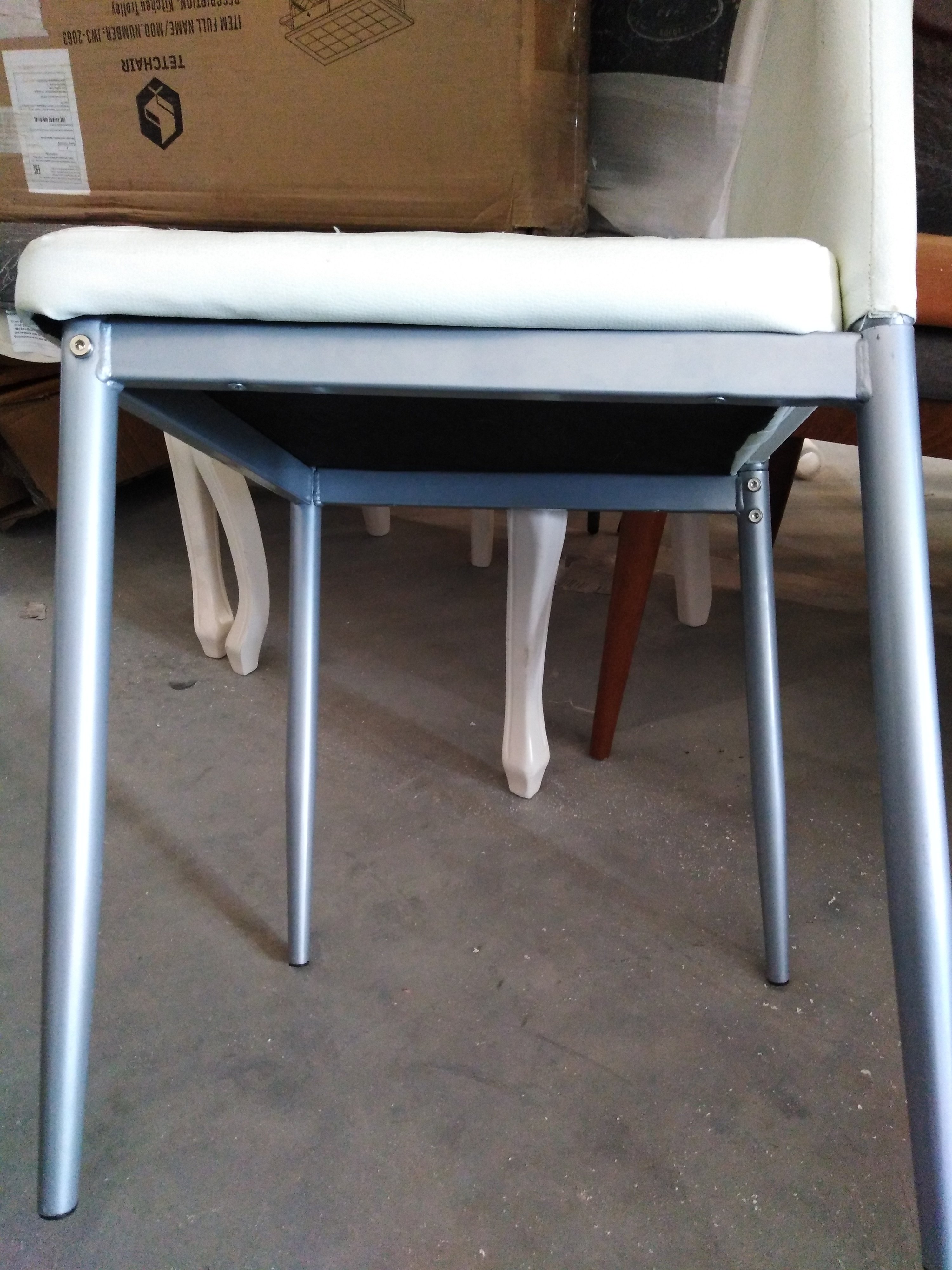 Описание товара без дефектов: Стильный стул Easy Chair из коллекции Modern подчеркнет индивидуальность вашего интерьера, не перегружая его лишними деталями. Удобство, практичность и простота выгодно выделяют стул среди привычной мебели. Обивка из экокожи с горизонтальной прошивкой и тонкие металлические ножки, покрашенные порошковой краской, выглядят стильно и привлекательно. Удобное сиденье и высокая спинка позволяют комфортно расположиться на длительное время. Широко поставленные прочные ножки, делают модель крепкой и основательной. Стул может стать украшением загородного дома или городской квартиры. Обивка из экокожи цвета слоновой кости – красивая, надежная, не требующая сложного ухода. Материал сочетает в себе мягкость и эластичность натуральной кожи с прочностью текстильных волокон. Стул будет радовать вас своим первоначальным видом долгие годы. Поставляется в разобранном виде.