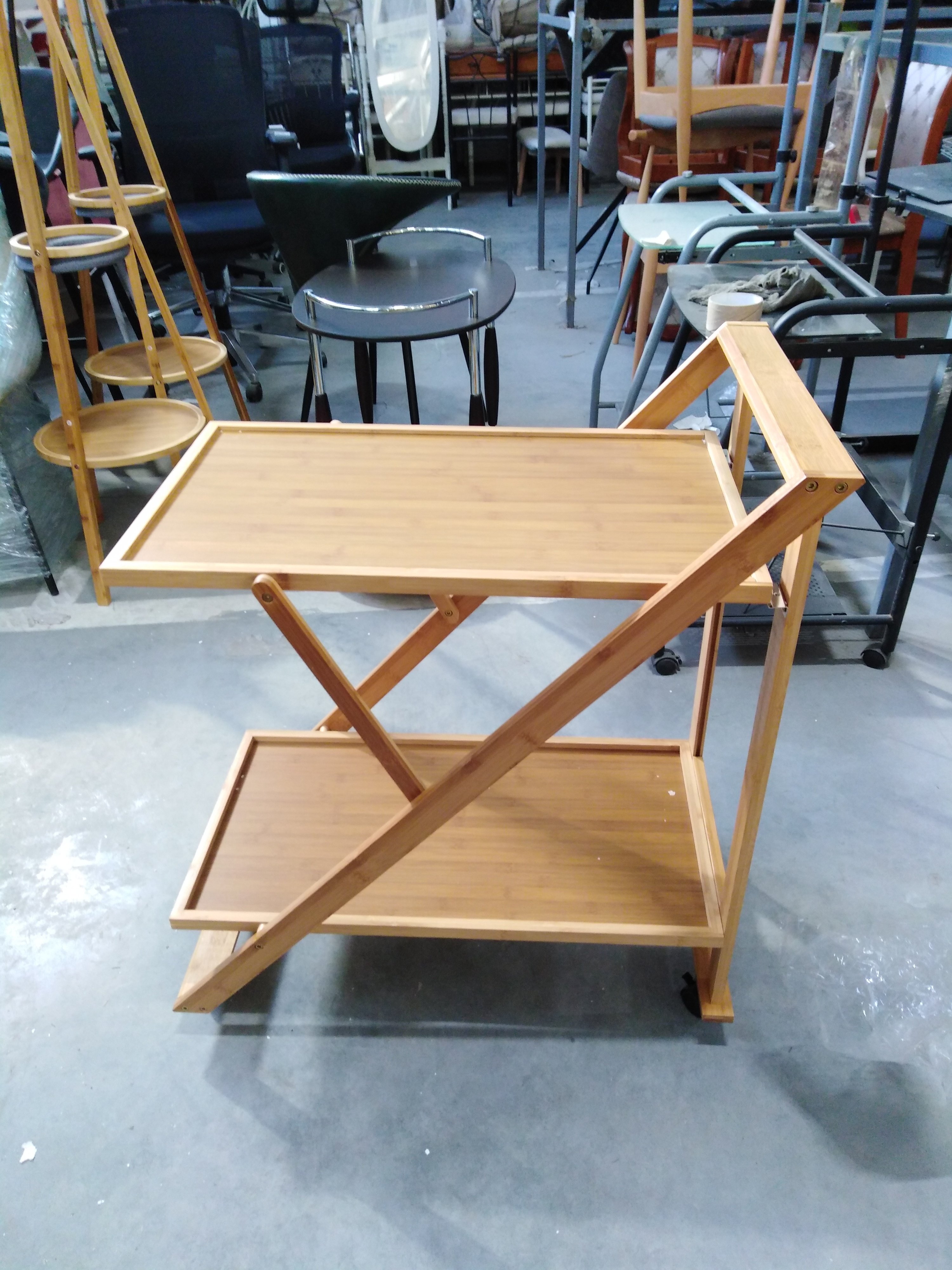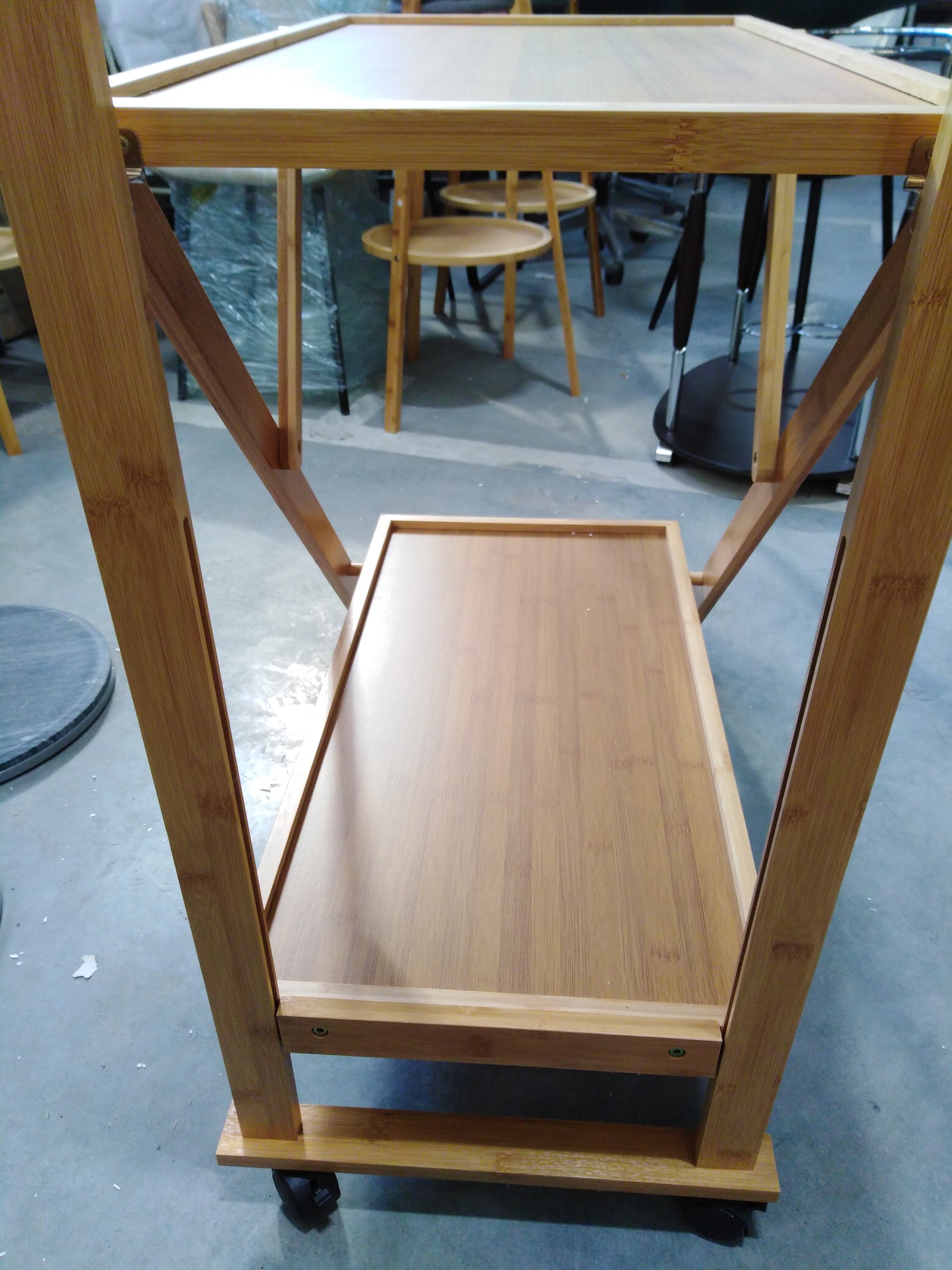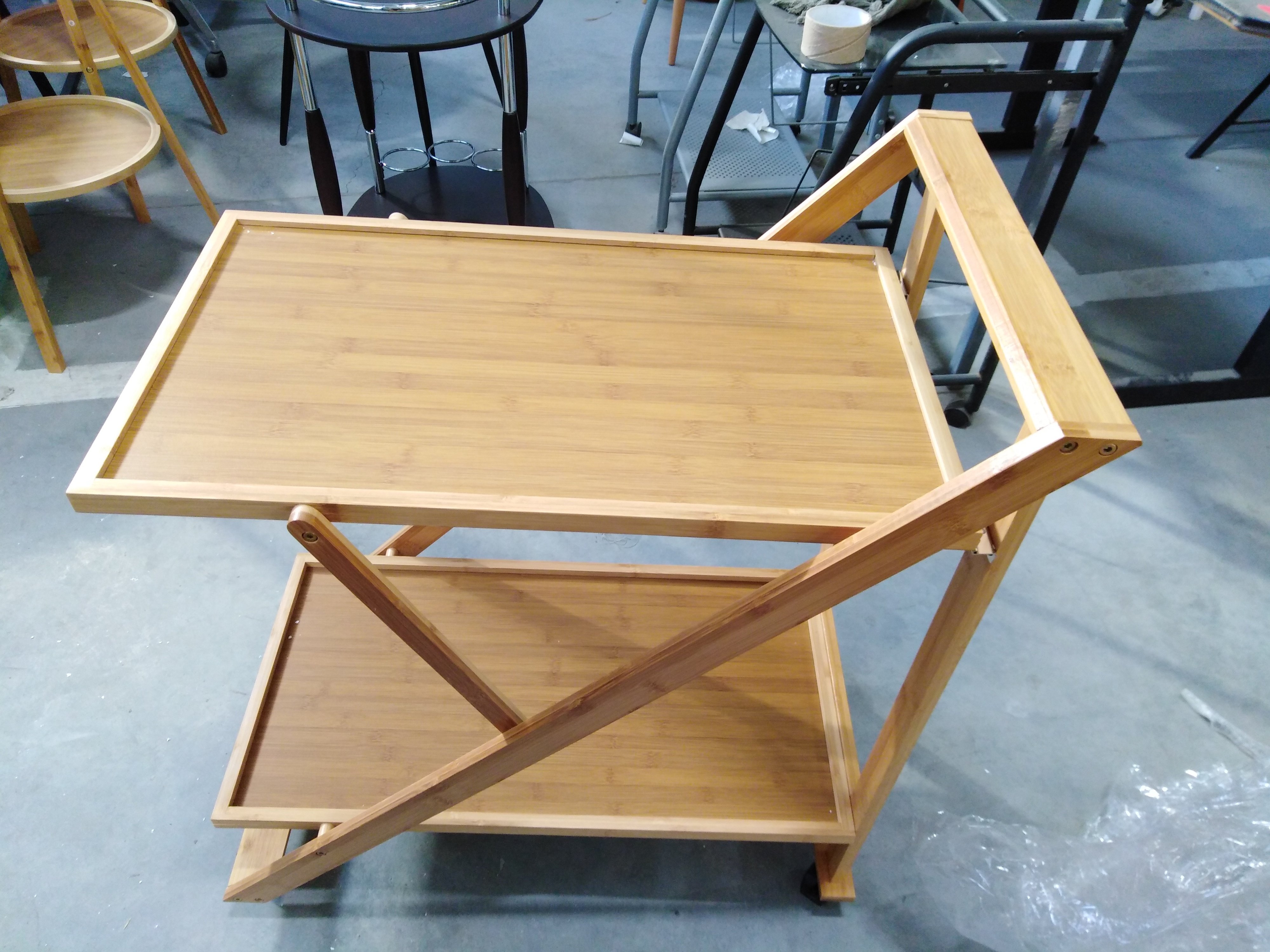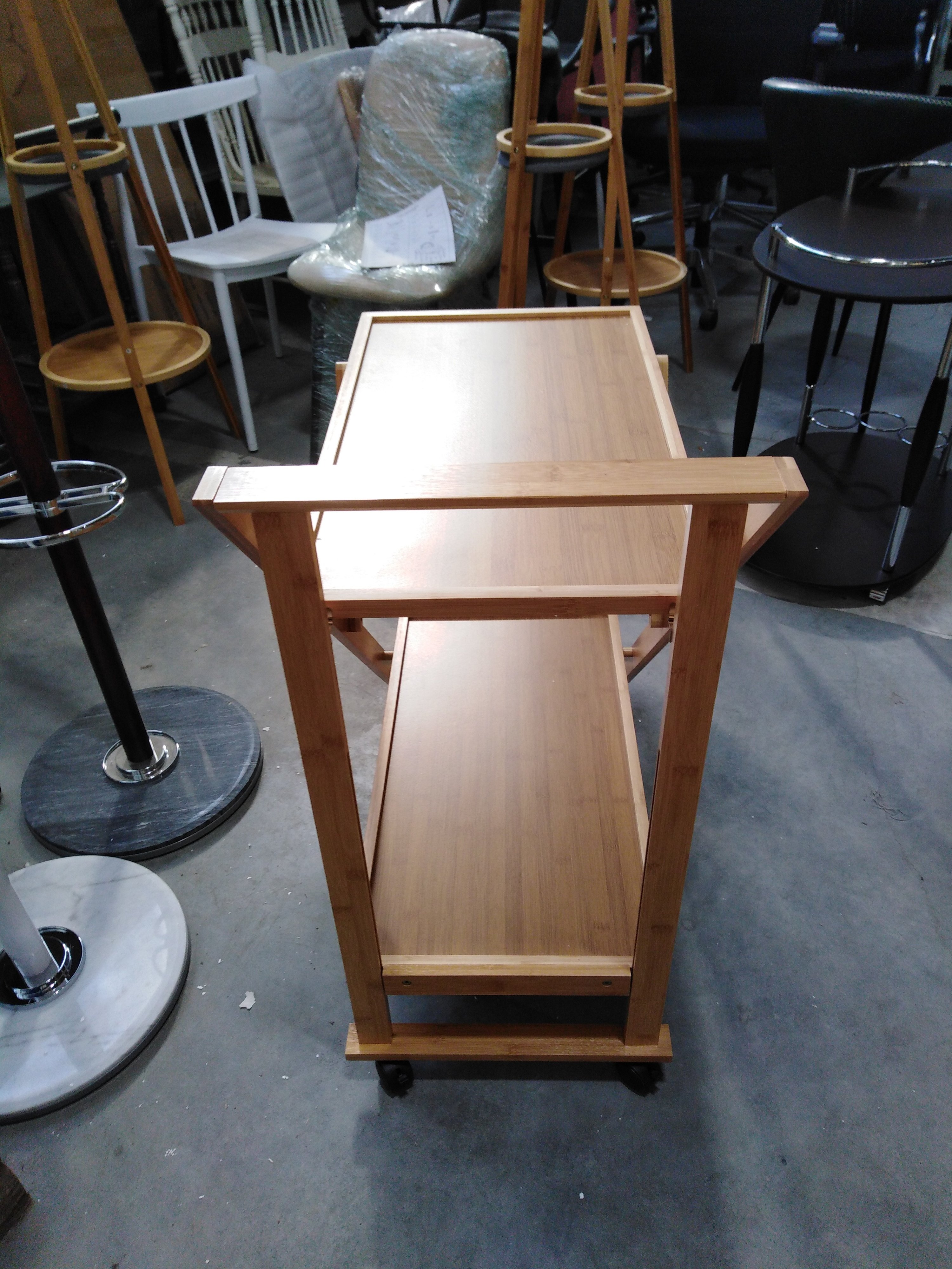 Описание товара без дефектов: Основание на колёсиках. 2 столешницы. Материал: прессованный бамбук. Цвет: натуральный. Размеры: 72х42х81,5 см