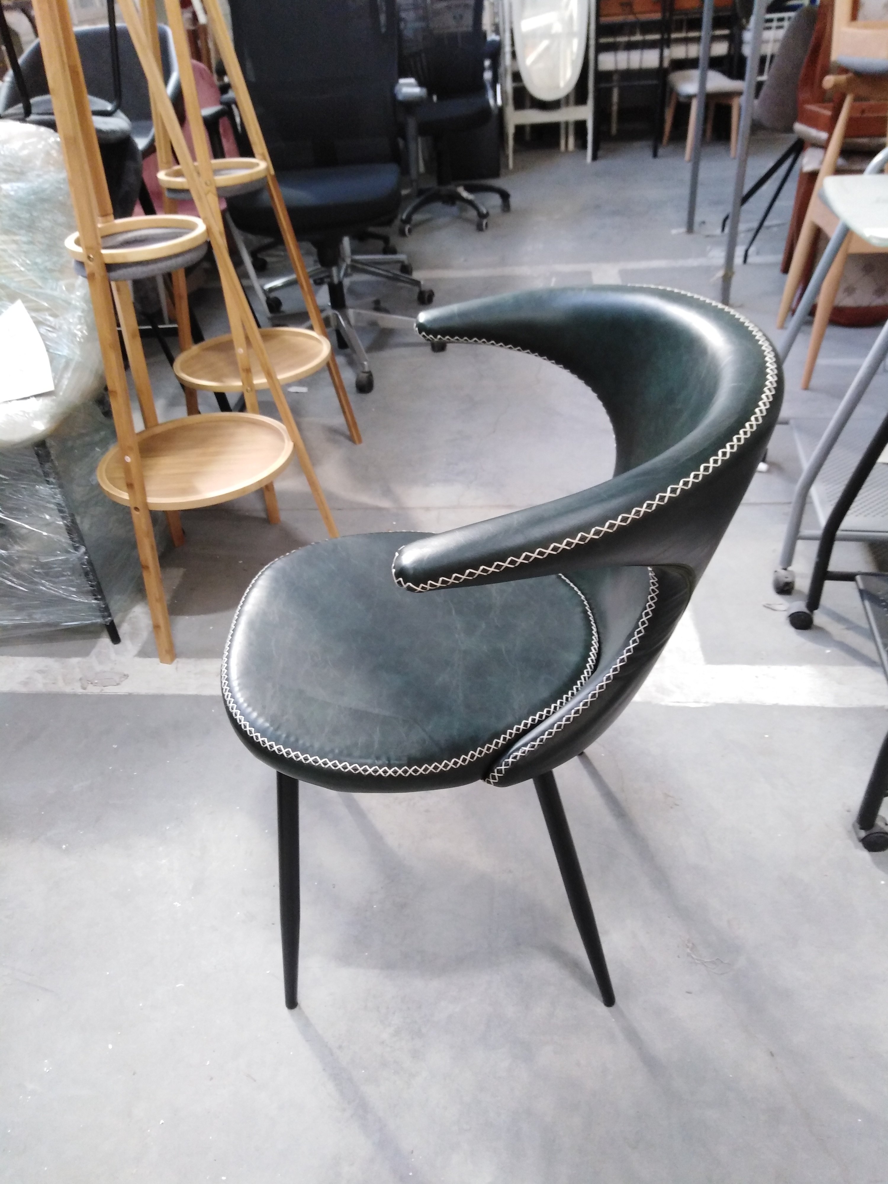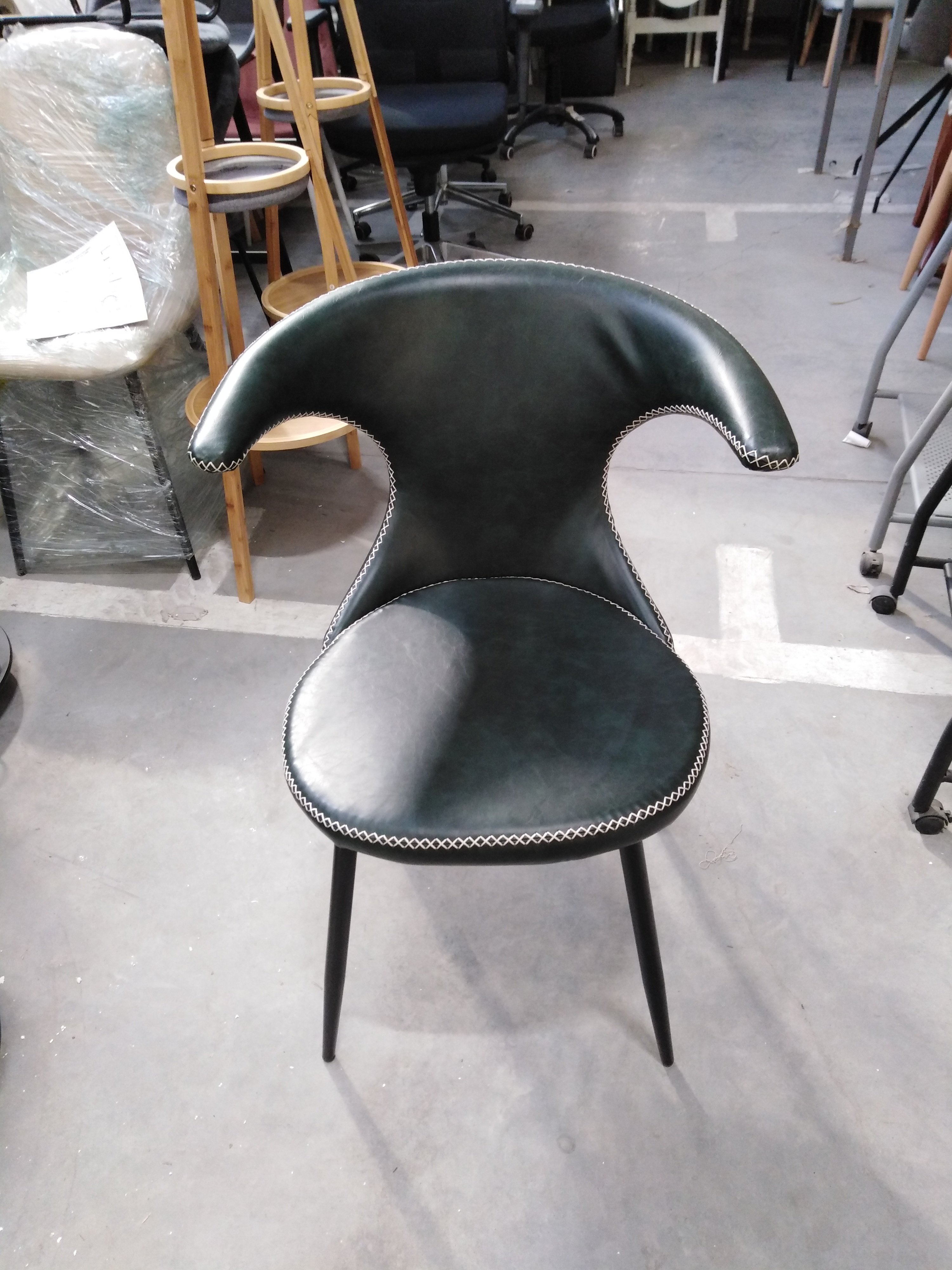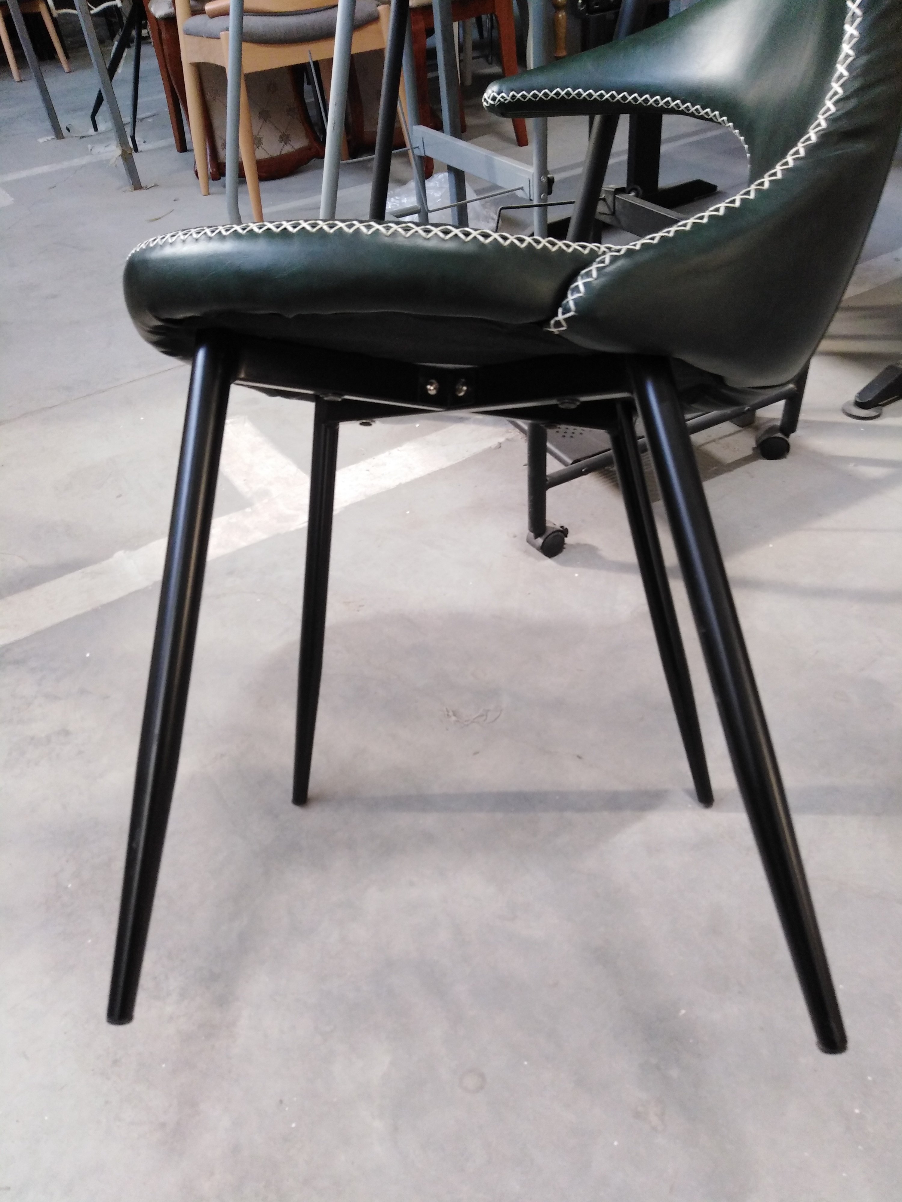 Описание товара без дефектов: Стильный стул FLAIR из коллекции Modern выполнен в оригинальном дизайне, где прослеживаются элементы стиля модерн середины двадцатого века. Он способен придать индивидуальность интерьеру, выделить его из сотен обыденных и привычных стульев. Идеальное решение для рабочего кабинета ресторана, кафе, отеля. Оригинальная форма спинки, черные металлические ножки и обивка из зеленой экокожи с красивой отделочной строчкой придают эксклюзивность изделию. Удобная форма спинки и мягкое сиденье обеспечат комфорт на протяжении длительного времени. Экокожа не мнётся, не меняет форму, проста в уходе. Металлический каркас отличается прочностью, устойчивостью к износу и долговечностью. Стул будет долгое время радовать вас своим первоначальным видом. Стул подойдёт для гостиной, для кухни, для спальни, для кабинета, для офиса, для ресторана или для кафе. Стул очень прост в сборке, инструкция по сборке прилагается.