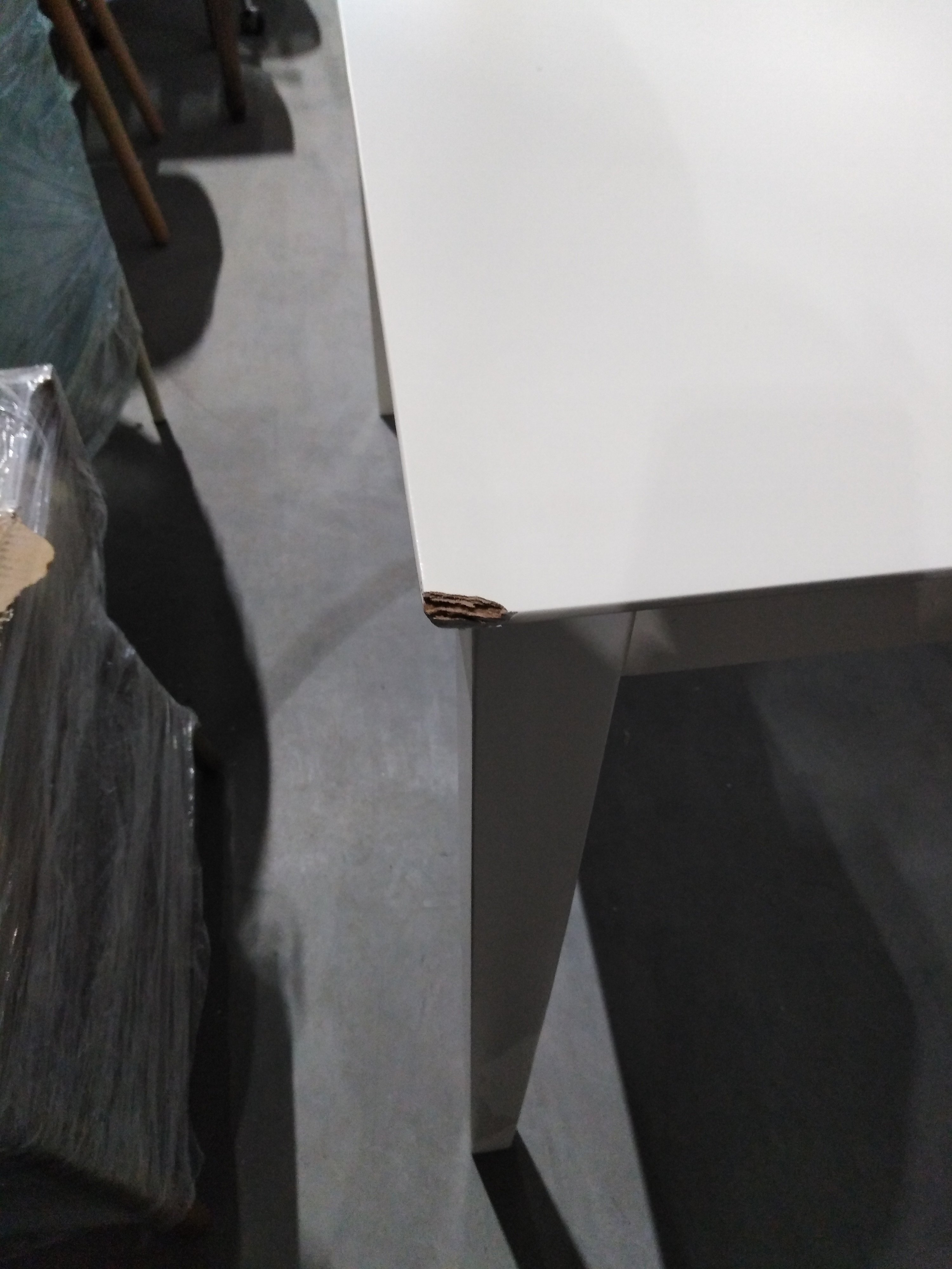 Описание дефекта: нарушение лкп на П- ножке , разные ножки от стола , нарущение на столешнице