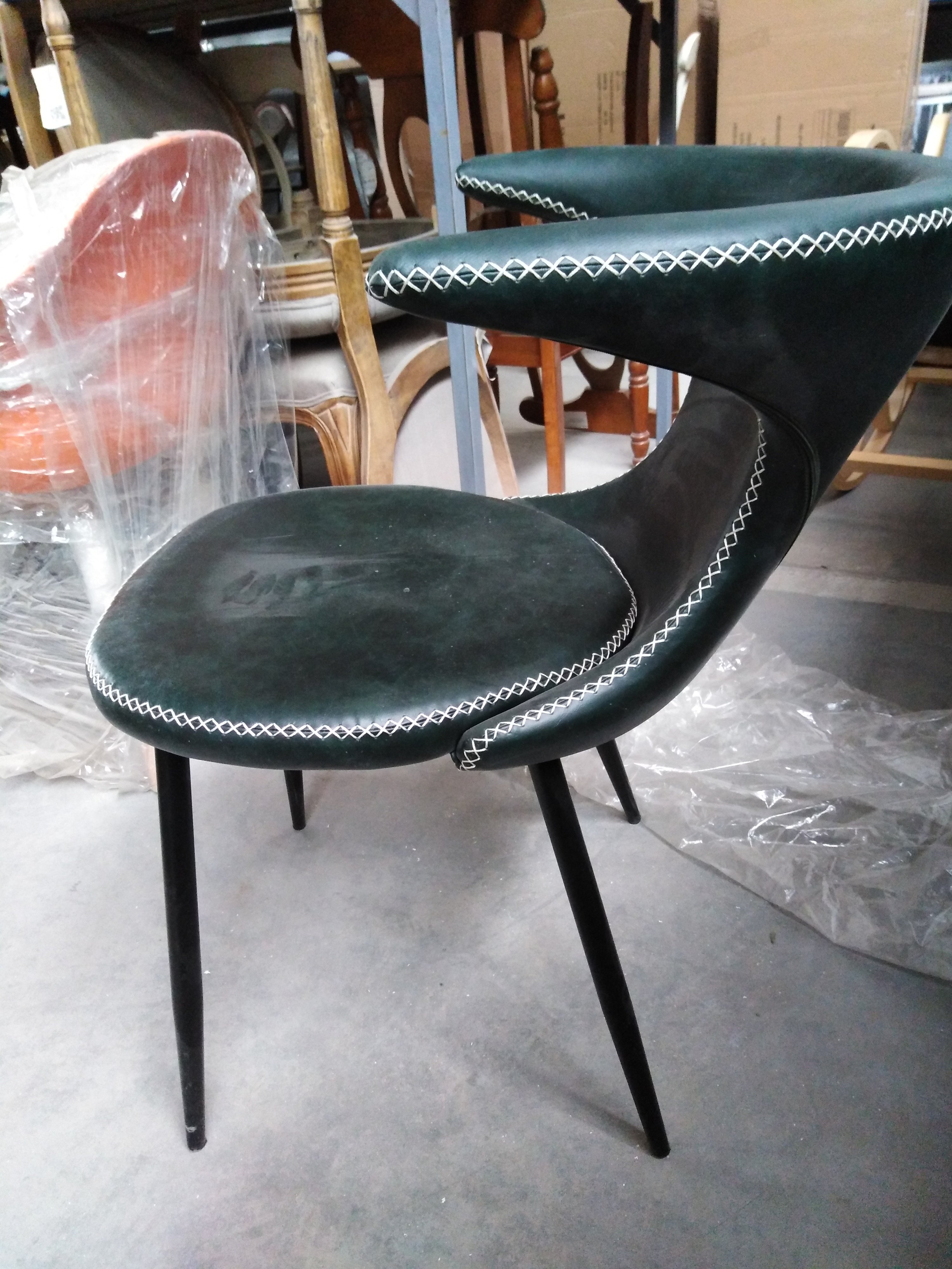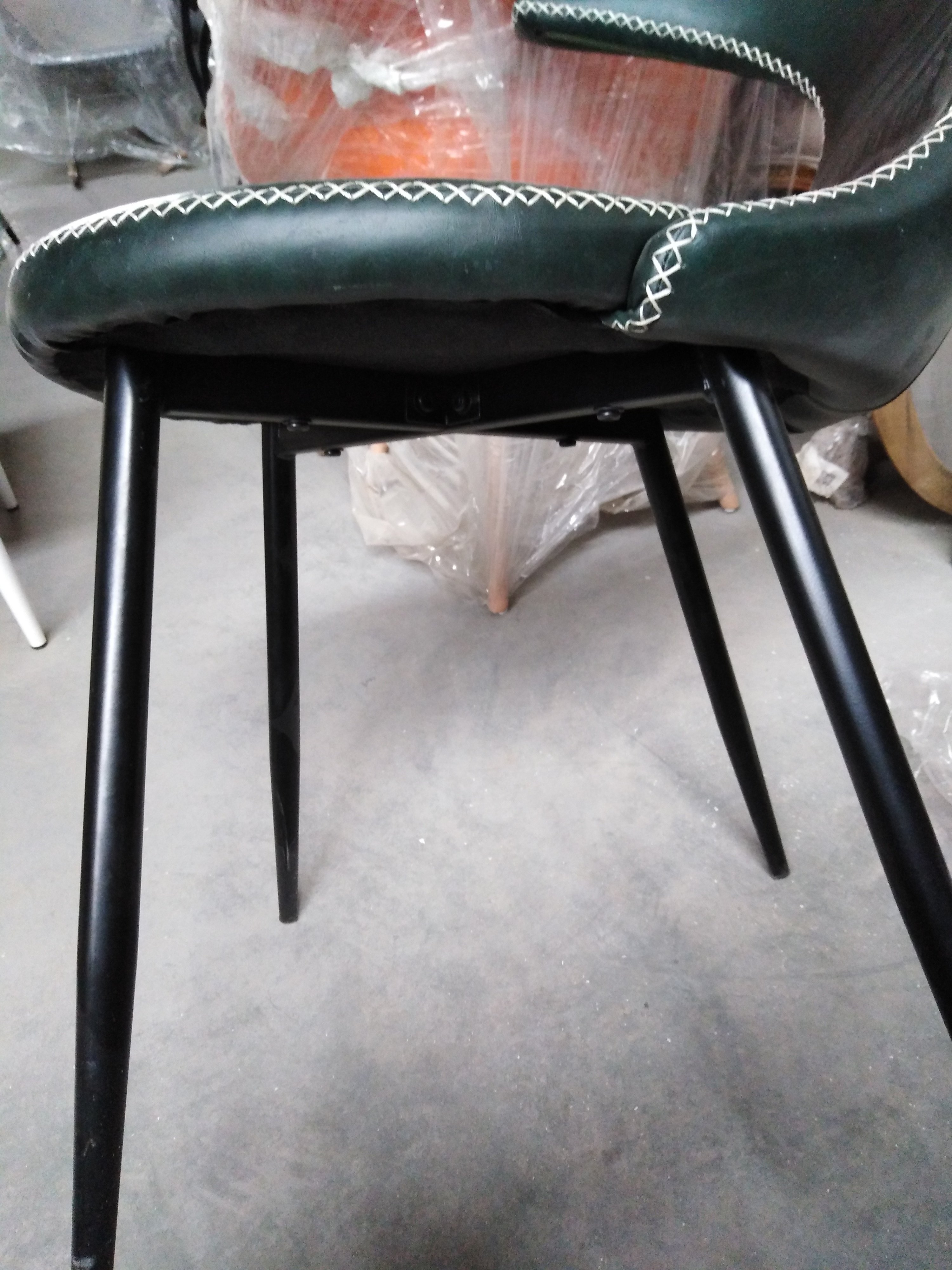 Описание товара без дефектов: Стильный стул FLAIR из коллекции Modern выполнен в оригинальном дизайне, где прослеживаются элементы стиля модерн середины двадцатого века. Он способен придать индивидуальность интерьеру, выделить его из сотен обыденных и привычных стульев. Идеальное решение для рабочего кабинета ресторана, кафе, отеля. Оригинальная форма спинки, черные металлические ножки и обивка из зеленой экокожи с красивой отделочной строчкой придают эксклюзивность изделию. Удобная форма спинки и мягкое сиденье обеспечат комфорт на протяжении длительного времени. Экокожа не мнётся, не меняет форму, проста в уходе. Металлический каркас отличается прочностью, устойчивостью к износу и долговечностью. Стул будет долгое время радовать вас своим первоначальным видом. Стул подойдёт для гостиной, для кухни, для спальни, для кабинета, для офиса, для ресторана или для кафе. Стул очень прост в сборке, инструкция по сборке прилагается.