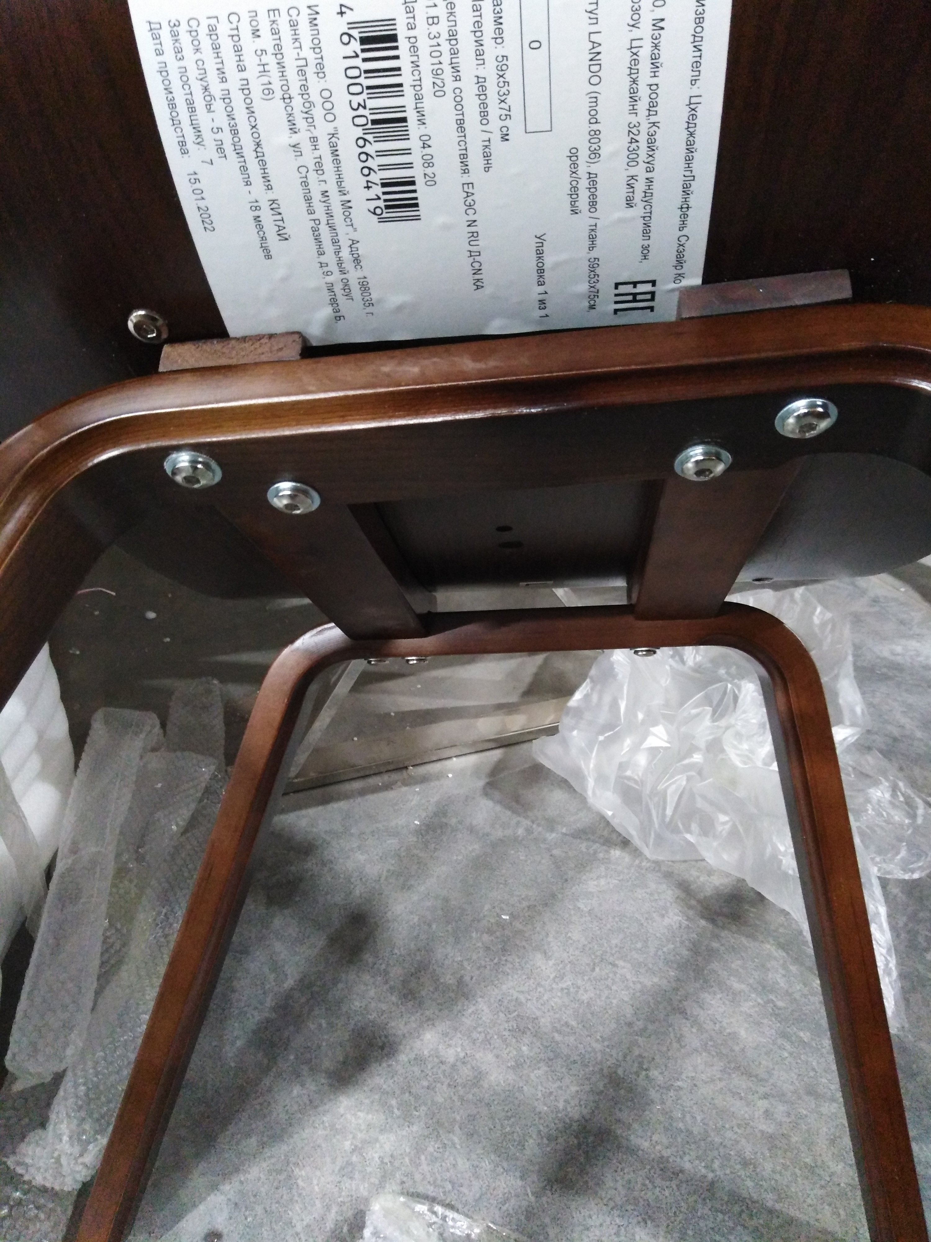 Описание дефекта: не совпадают отверстия крепления ножек с сиденьем