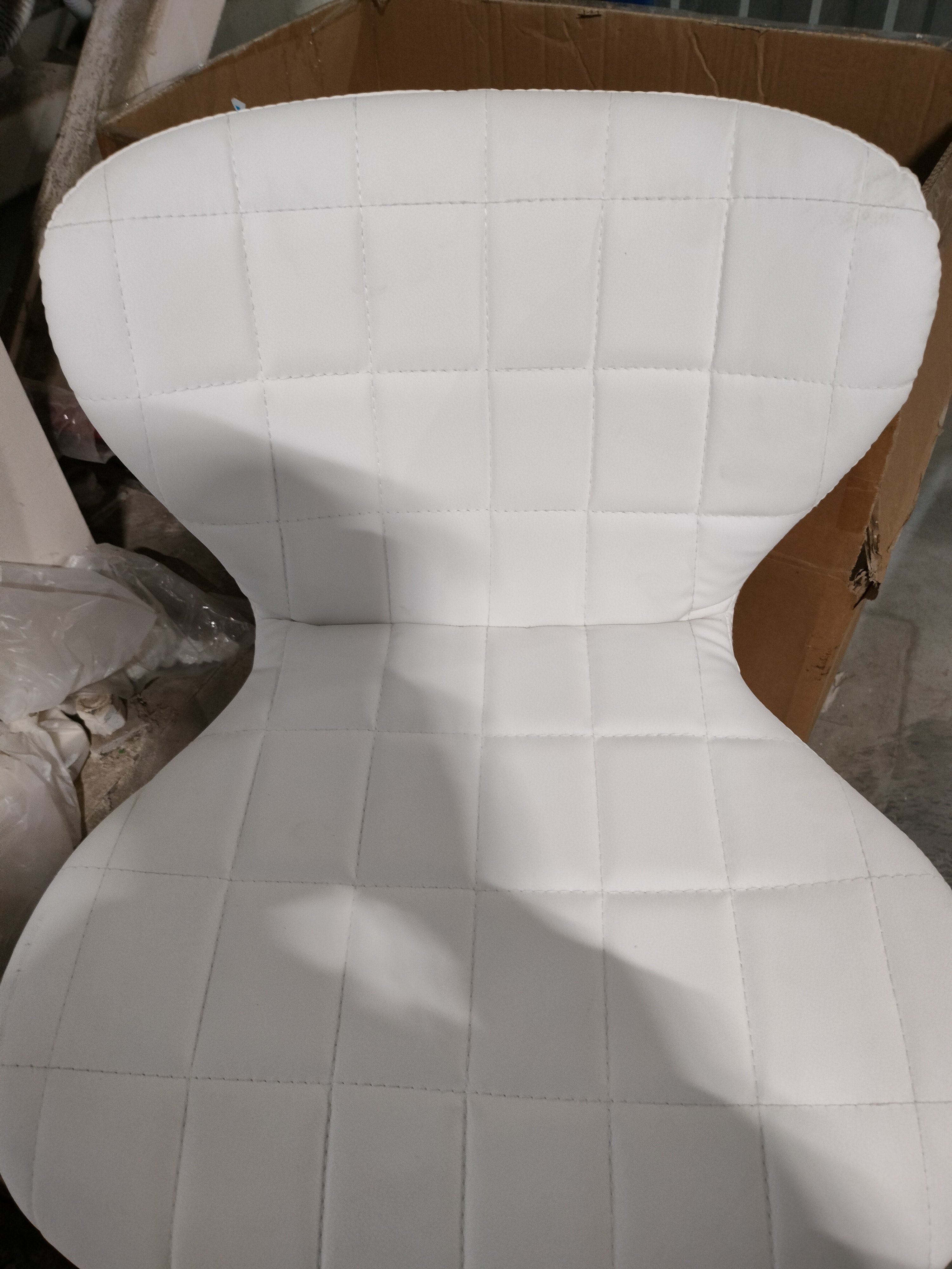 Описание дефекта: при вскрытии упаковки обнаружили , на спинке крязный к/з , обивка сиденья не ровная , потертость к/з, без нижней части ножки +блин