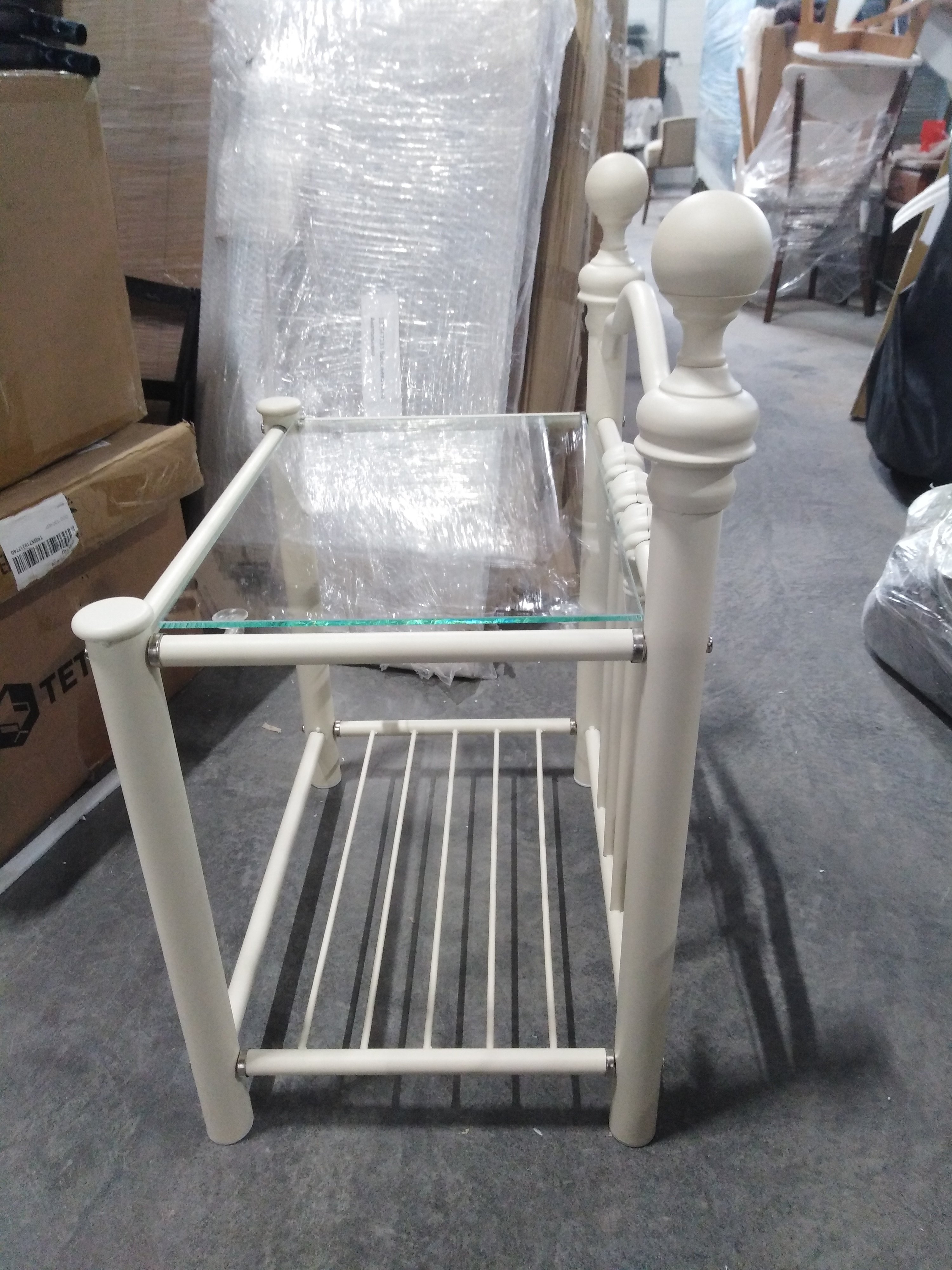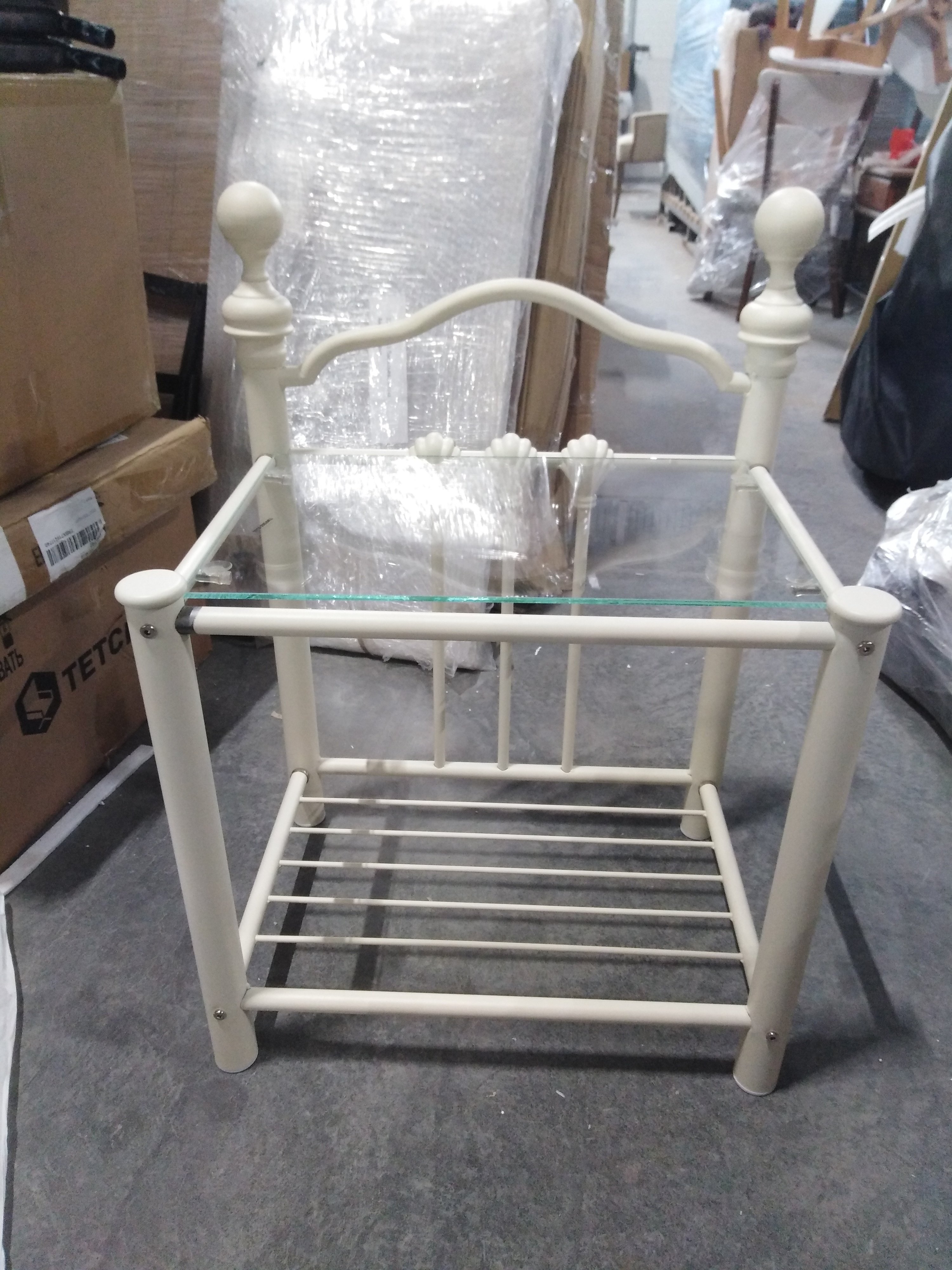 Описание товара без дефектов: Стильная прикроватная тумба «Дерби» (Derby/Дерби) из Английской коллекции , выполненная в классическом викторианском стиле, добавит вашему интерьеру легкости, утонченности и грациозности. Изящные литые элементы, изысканные узоры и оригинальные наконечники прекрасно впишутся в интерьер спальни или гостиной. Прочное металлическое основание надежно, устойчиво и долговечно. Верхняя часть тумбы изготовлена из безопасного закаленного стекла, которое выдерживает высокие температуры, отличается высокой прочностью и основательностью. На тумбе можно разместить предметы декора, косметику, технику, книги или журналы, не опасаясь царапин и сколов. Прикроватная тумба «Дерби» (Derby/Дерби) с поверхностью из закаленного стекла в цвете античный белый (Antique White/Антик Уайт) будет красиво смотреться в помещении любого стиля и привлекать внимание всех гостей. Идеальное решение для загородного дома или городской квартиры. Модель поставляется в разобранном виде, необходима несложная сборка по прилагаемой инструкции.