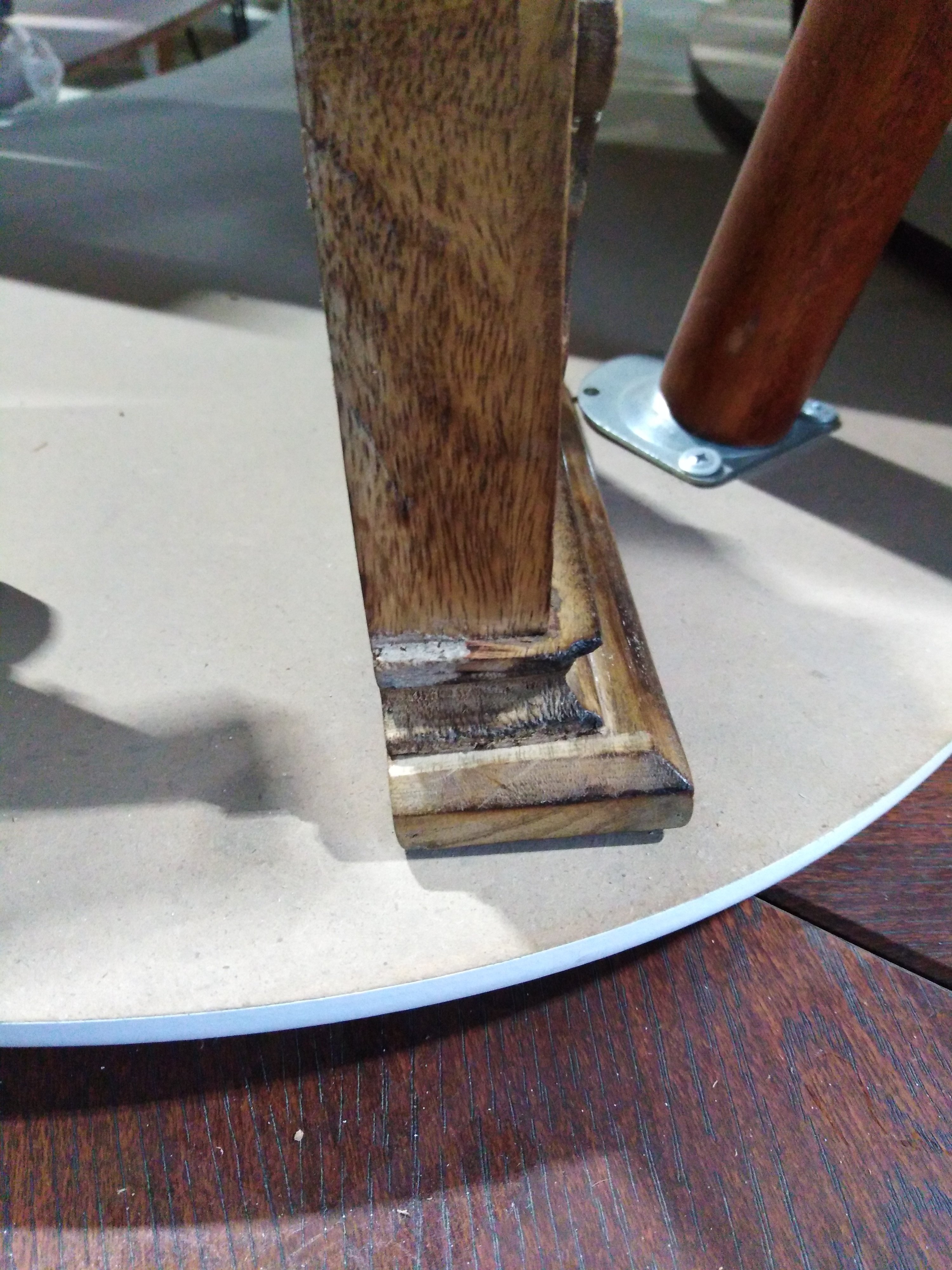 Описание дефекта: нарушение ЛКП, царапины и микросколы на деревянных деталях