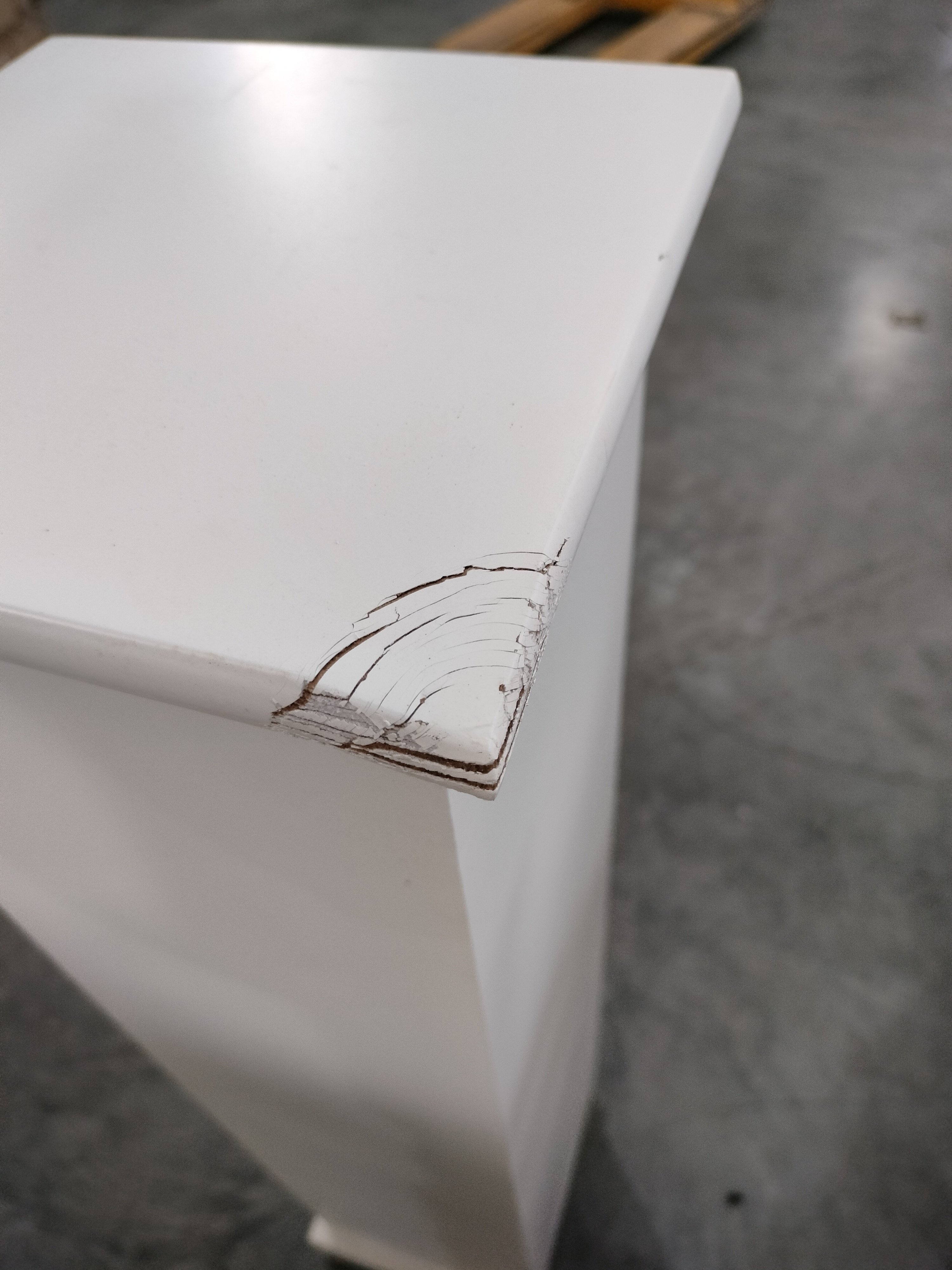 Описание дефекта: при проверики и вскрытии упаковки обнаружили трещина н азадней стенке тумбы
