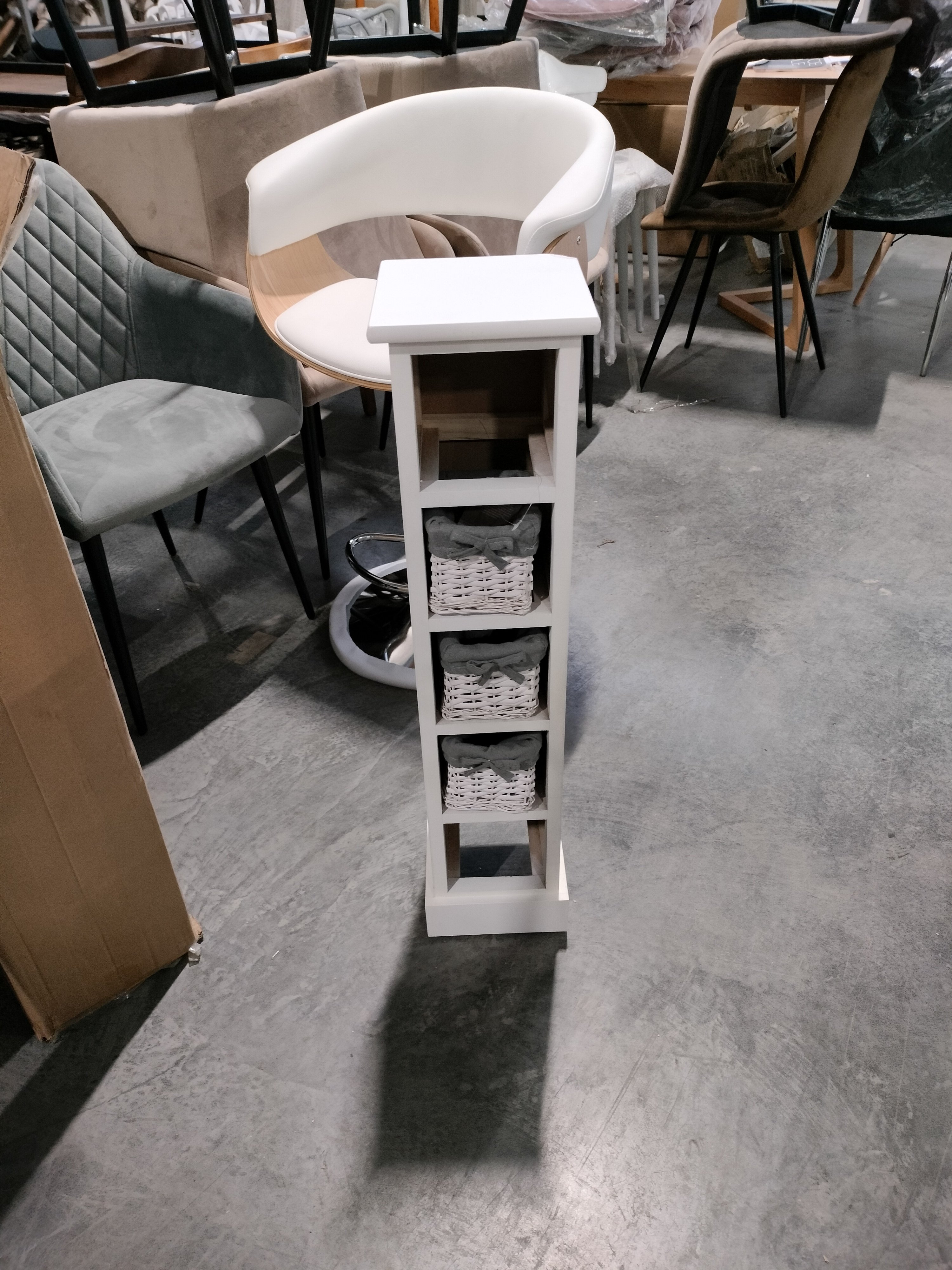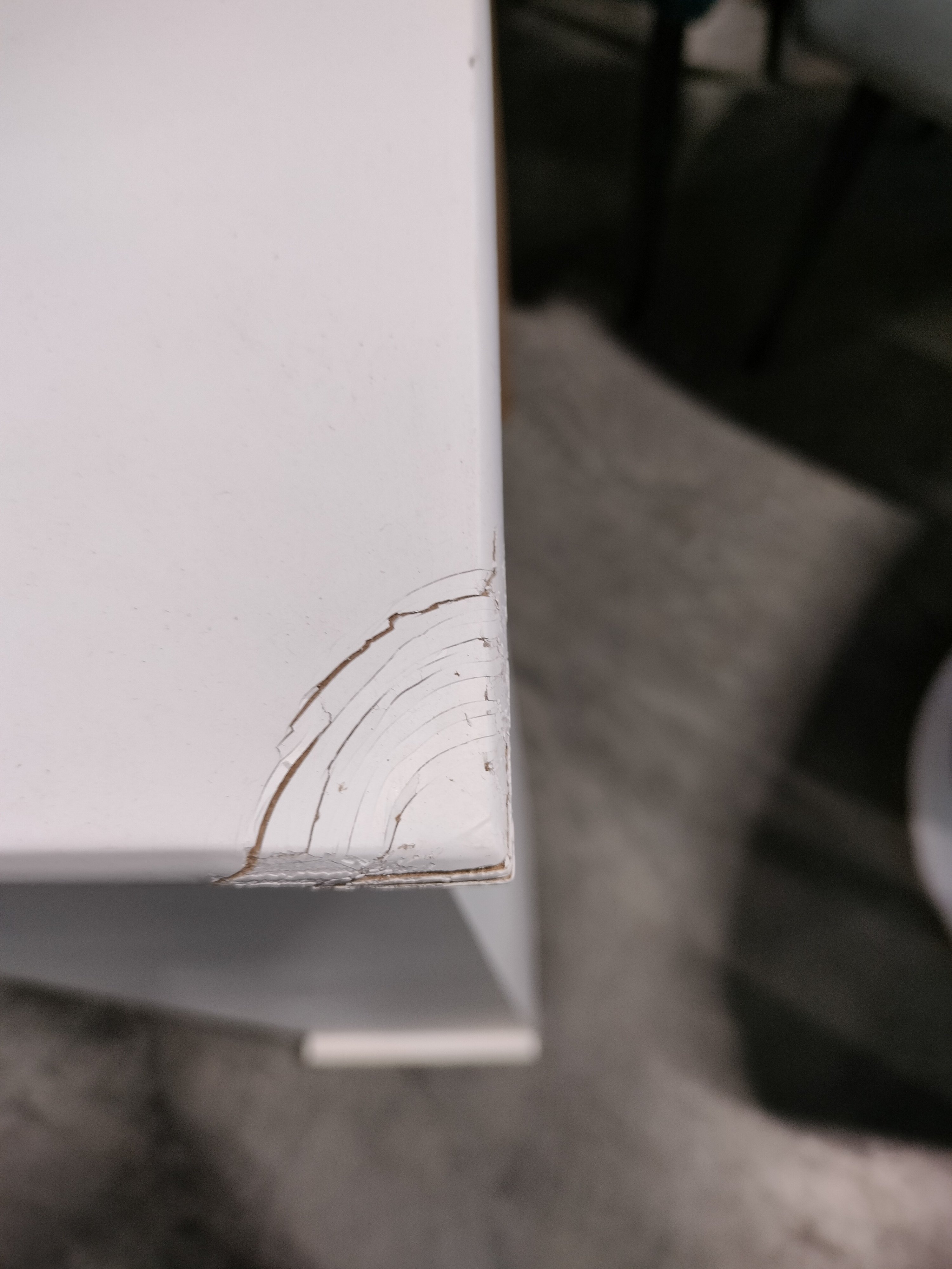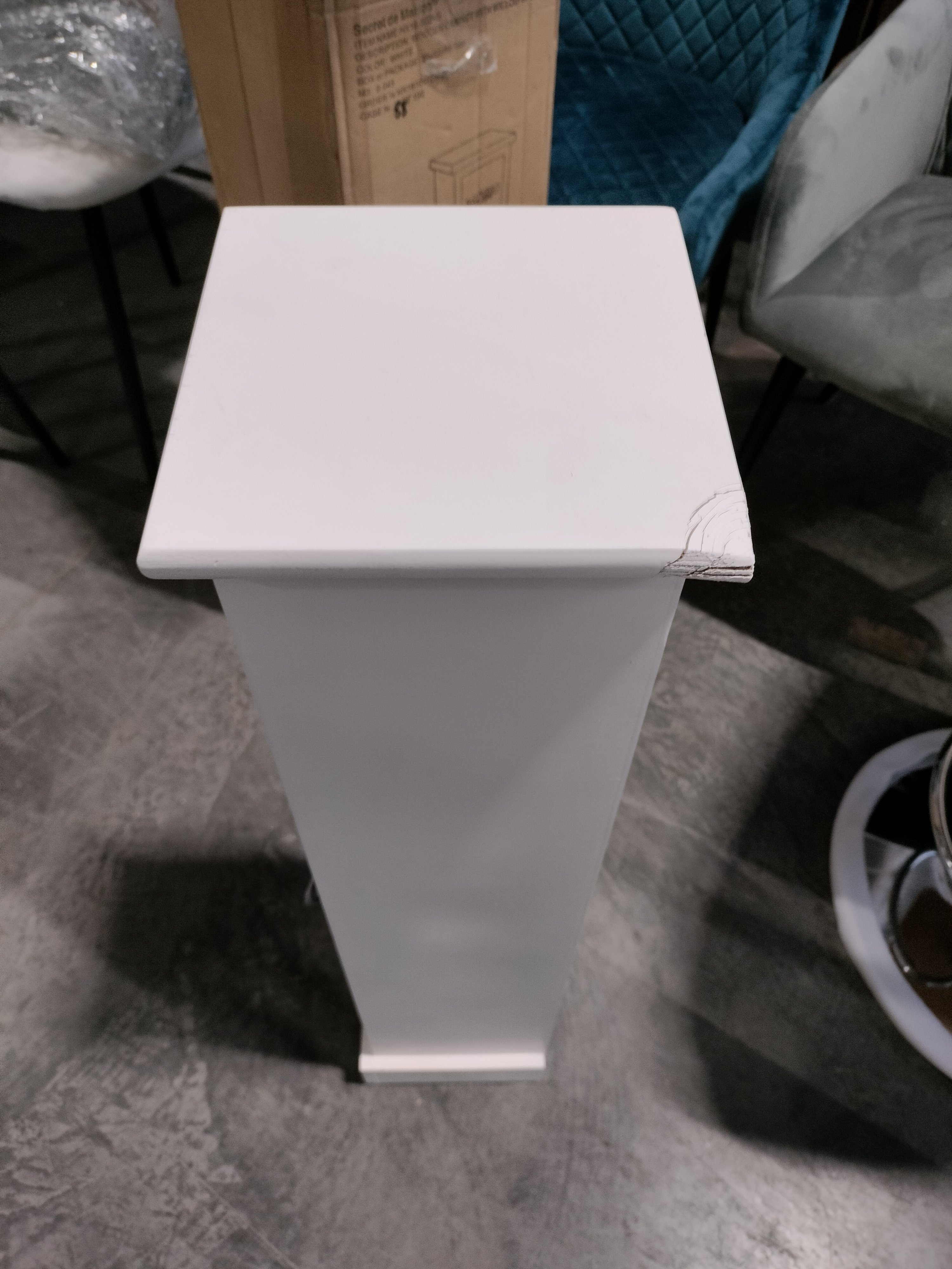 Описание дефекта: при вскрытии упаковки обнаружили нарушение плетения корзины, сколы лкп по все тумбе