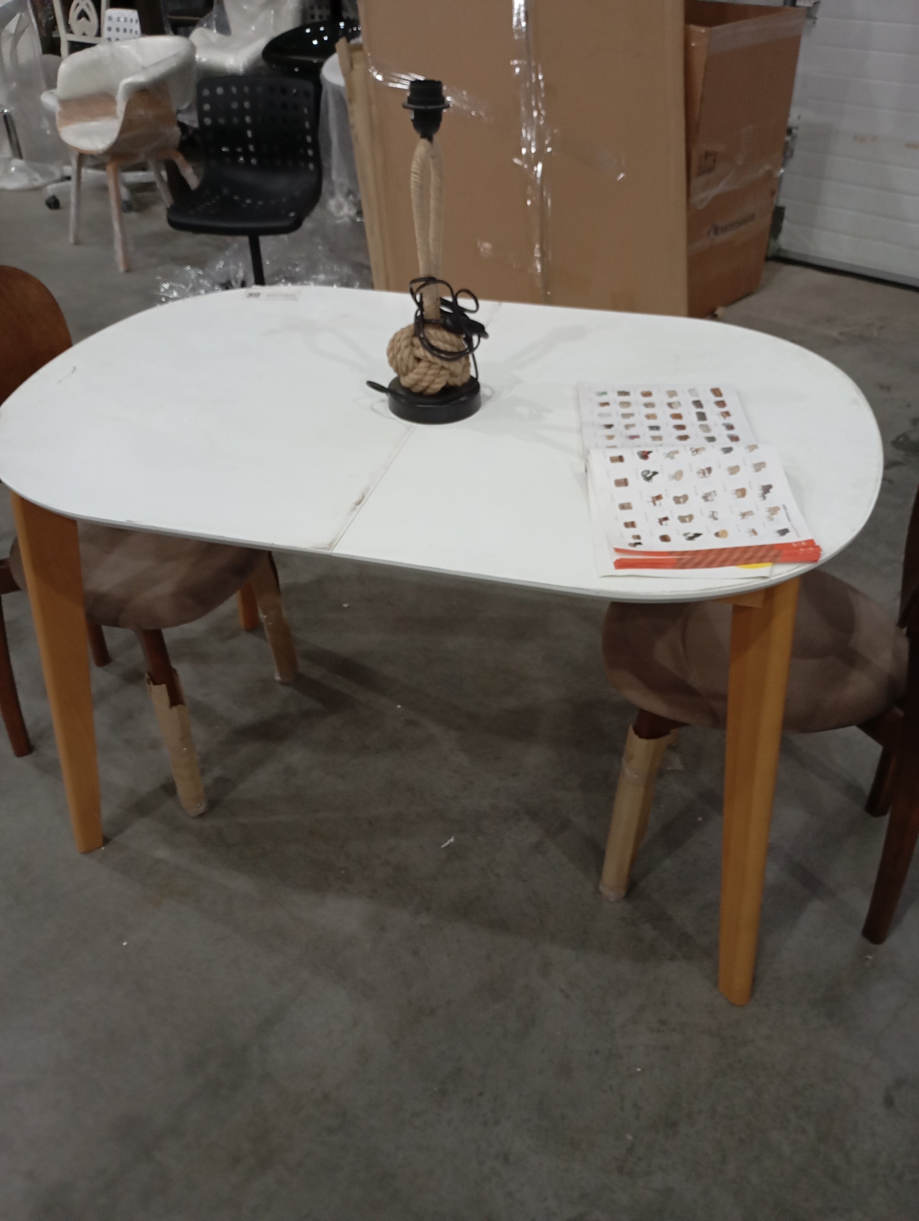 Описание товара без дефектов: Стильный обеденный стол BOSCO из Датской коллекции станет прекрасным украшением любой обстановки. Модель гармонично впишется как в классический, так и в современный интерьер. Контрастное сочетание белой столешницы и ножек естественного натурального цвета поможет создать уют в любом помещении вашего дома. Отсутствие острых углов делает стол BOSCO идеальным решением для семей с маленькими детьми. Модель имеет надежный раздвижной механизм, который легко и без особых временных затрат дает возможность увеличить обеденное пространство. Размеры стола BOSCO позволяют с комфортом разместить от четырех до шести человек, при этом ваши гости не будут чувствовать тесноты или неудобства. Тонкие изящные ножки выполнены из надежной и прочной древесины – массива бука. Столешница овальной формы, изготовленная из МДФ со шпоном бука и глянцевым напылением, отличается элегантностью, практичностью и безопасностью. Она не требует специального ухода, устойчива к воздействию жидкости и тепла. Стол подойдёт для гостиной, для кухни, для загородного дома, для ресторана или для кафе. Стол поставляется в разобранном виде, необходима несложная сборка по инструкции.