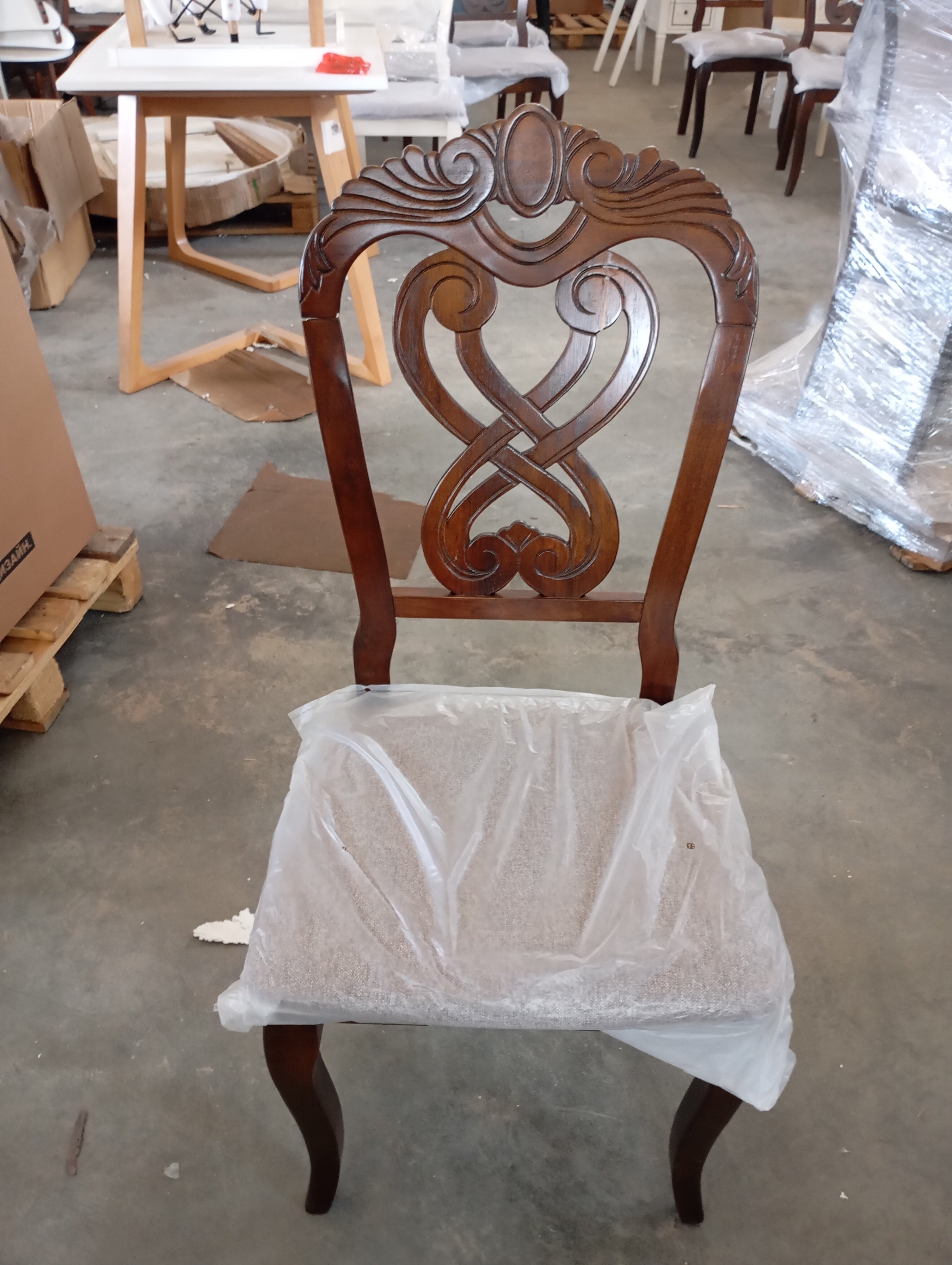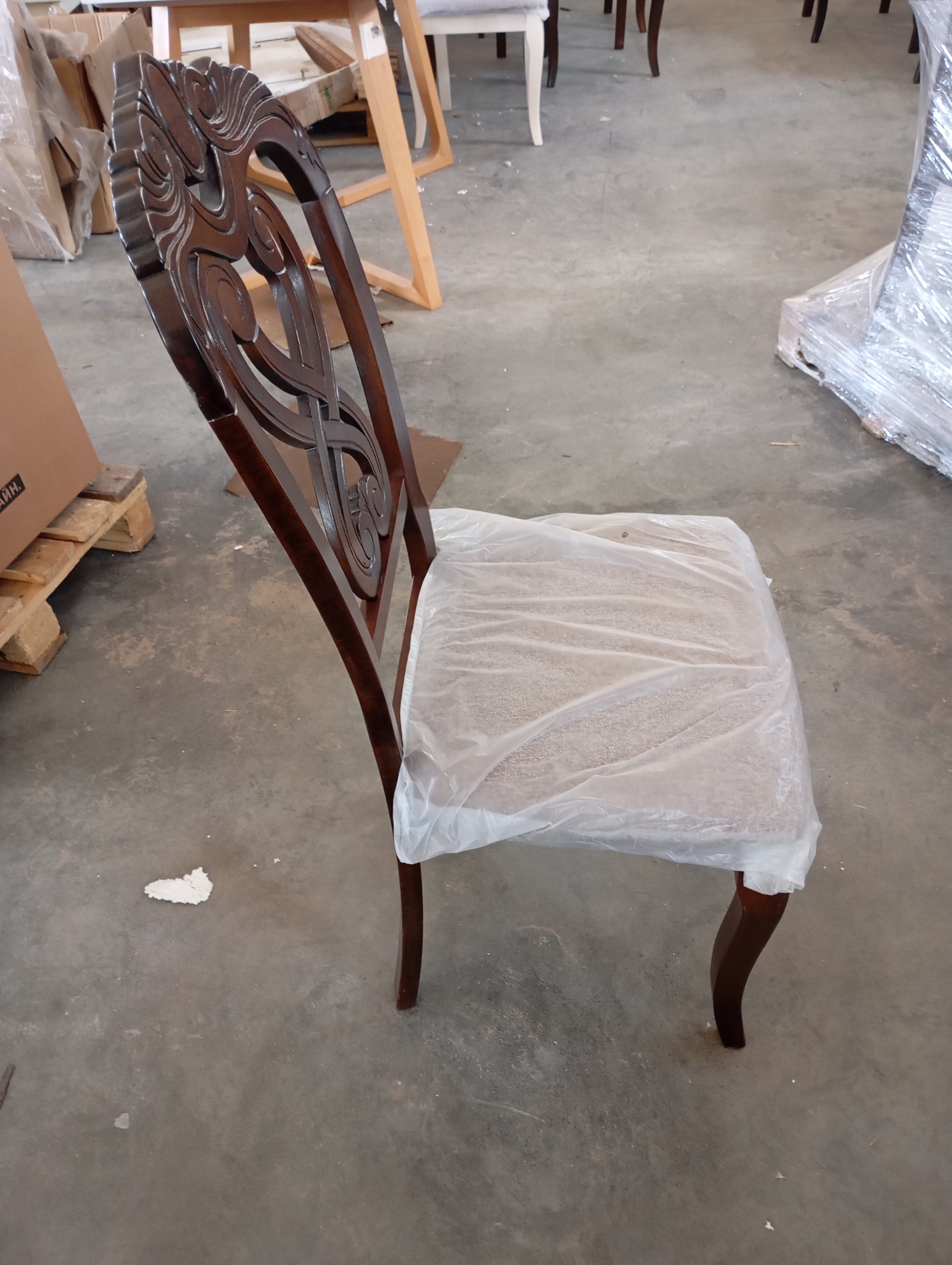 Описание товара без дефектов: Резная спинка, изящные ножки и мягкое сиденье обеденного стула Андромеда (Andromeda) из Дельфийской коллекции - воплощение роскоши, уникальности и изысканности. Модель отлично впишется в обстановку загородного дома или городской квартиры. Стул Андромеда с резной спинкой ручной работы может стать не только частью интерьера, но и нестандартной составляющей обстановки, привлекающей к себе внимание в кафе или ресторане. Утонченные грациозные ножки модели имеют изогнутую форму, что придает ей визуальную легкость и уникальность. Каркас изделия изготовлен из крепкой и прочной древесины - дерева гевеи. Комфортное мягкое сиденье обито тканью, не требующей дополнительного ухода и поддающейся несложной чистке. Безукоризненное сочетание каркаса и ножек цвета темный орех (Cappuchino) с сиденьем благородного коричневого цвета позволяет использовать модель в помещении любой цветовой гаммы. Деревянный стул Андромеда придаст элегантности вашему интерьеру ,он будет вас радовать своим первоначальным видом долгие годы. Стул подойдёт для гостиной, кухни или столовой. Стул очень прост в сборке, инструкция по сборке прилагается.