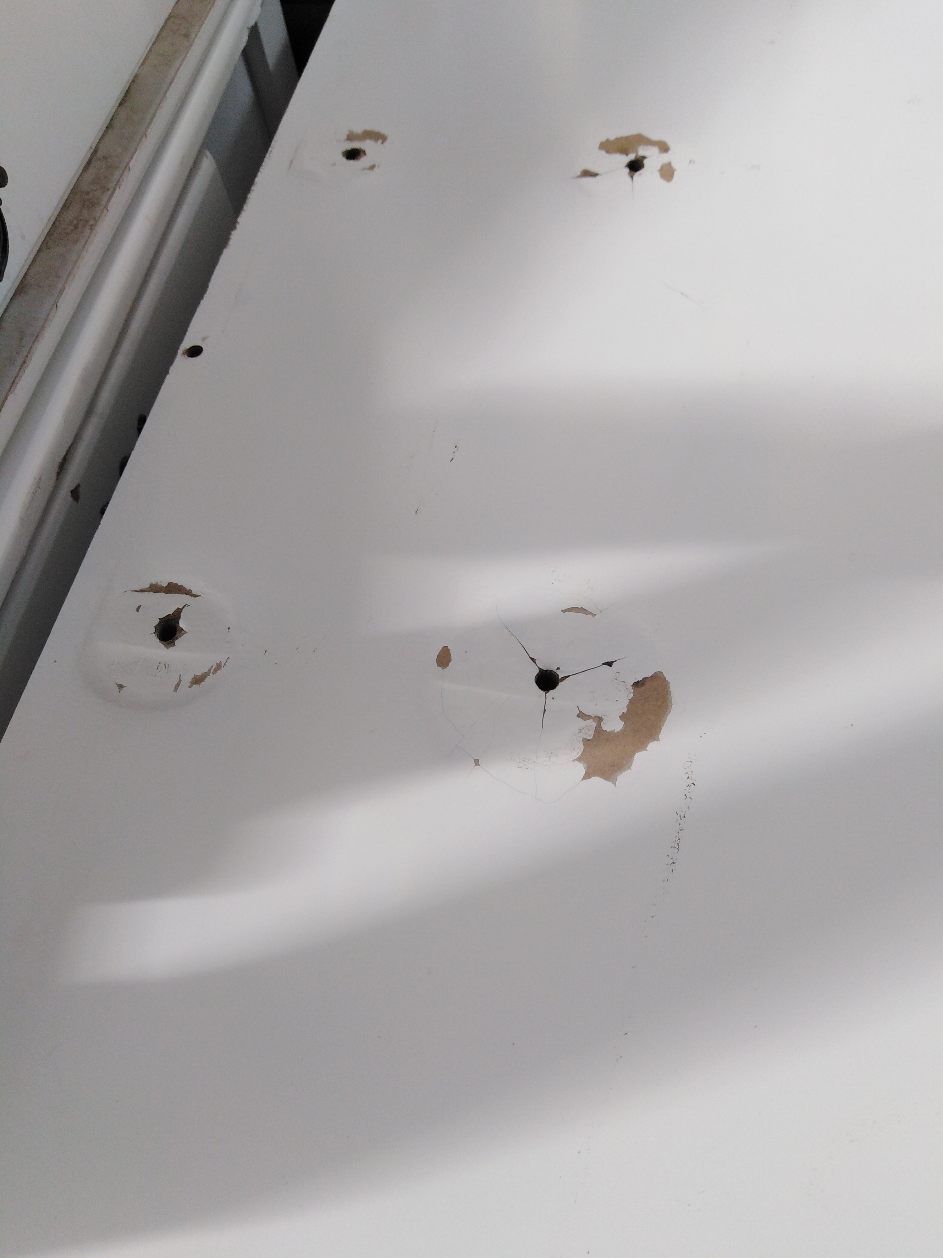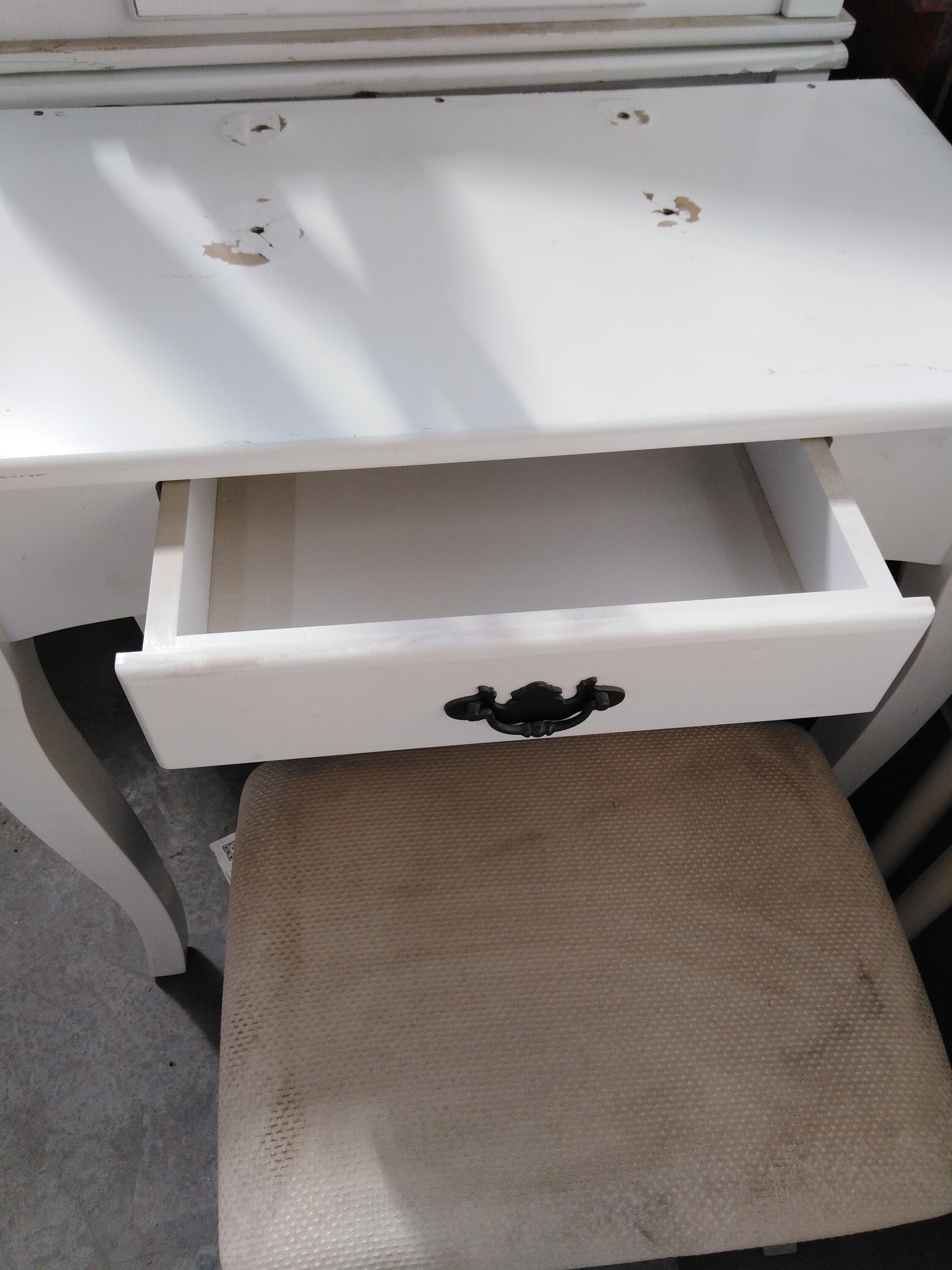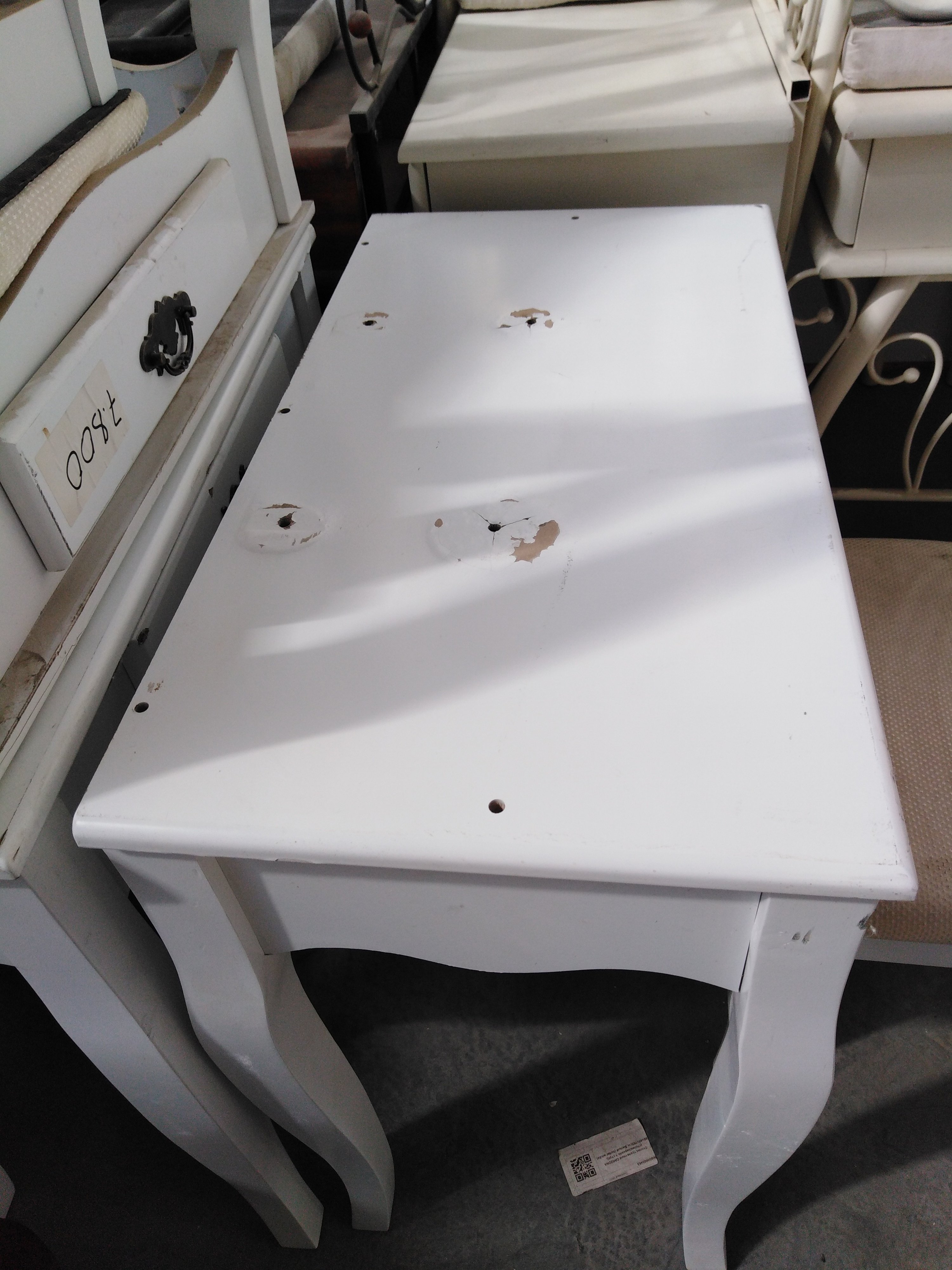 Описание дефекта: Столик продаётся без верхней надстройки, без зеркала. Сколы и трещины на столешнице. Нарушение ЛКП