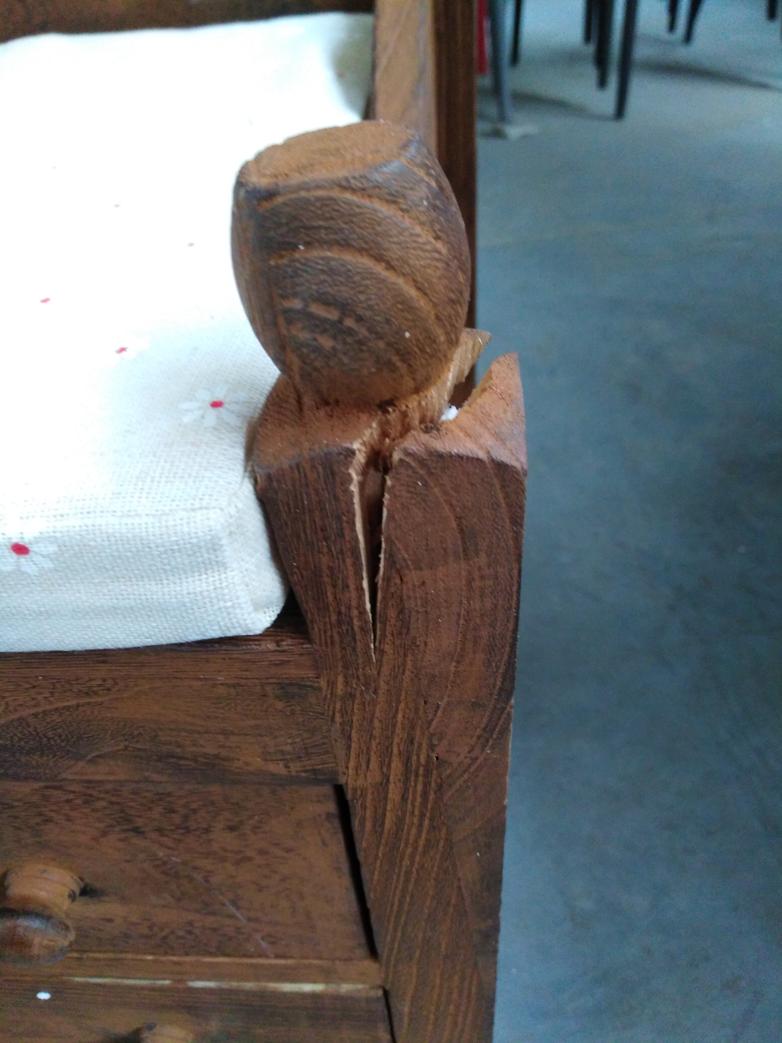 Описание дефекта: нарушение ЛКП, сколы и трещины по дереву