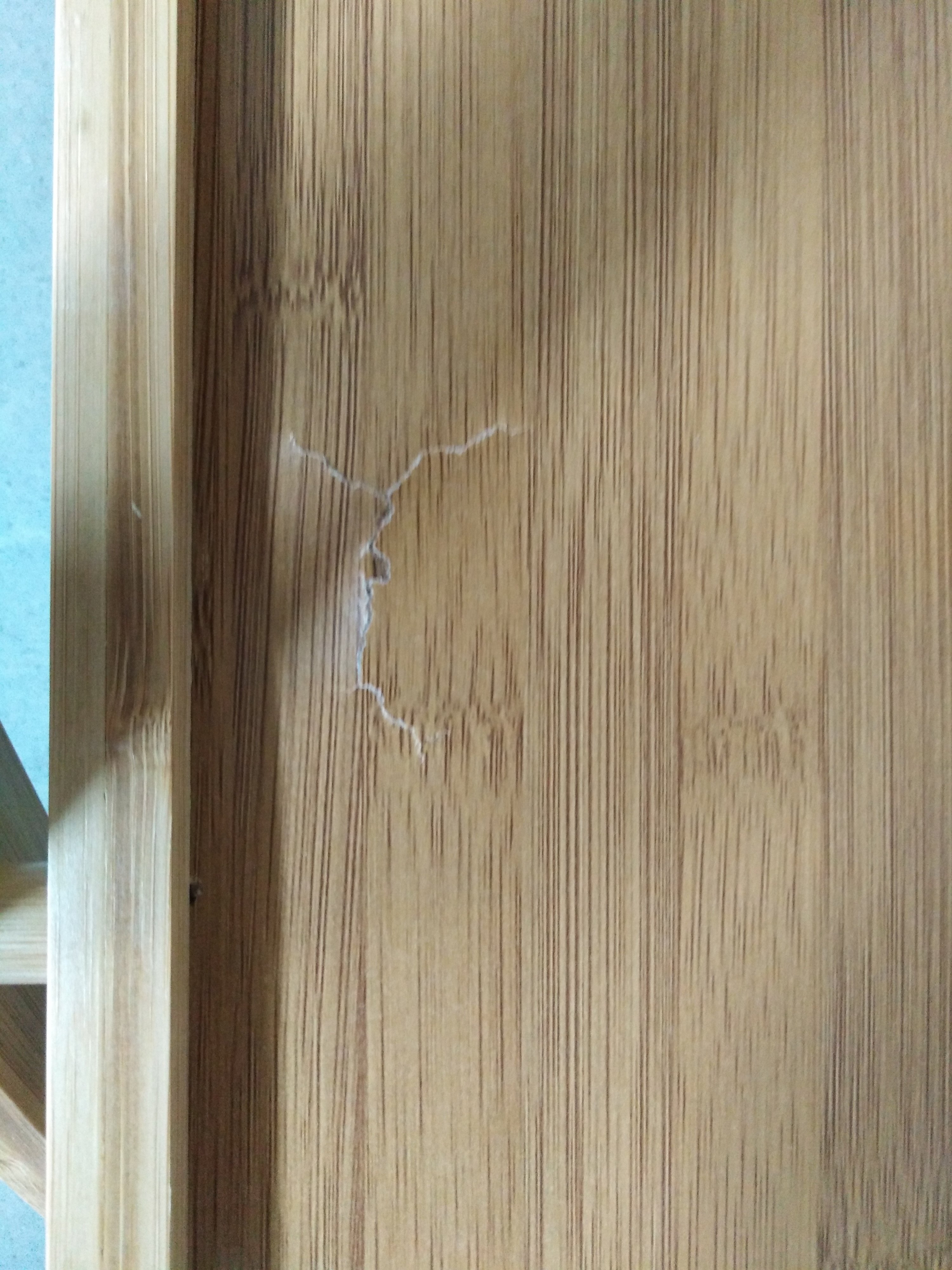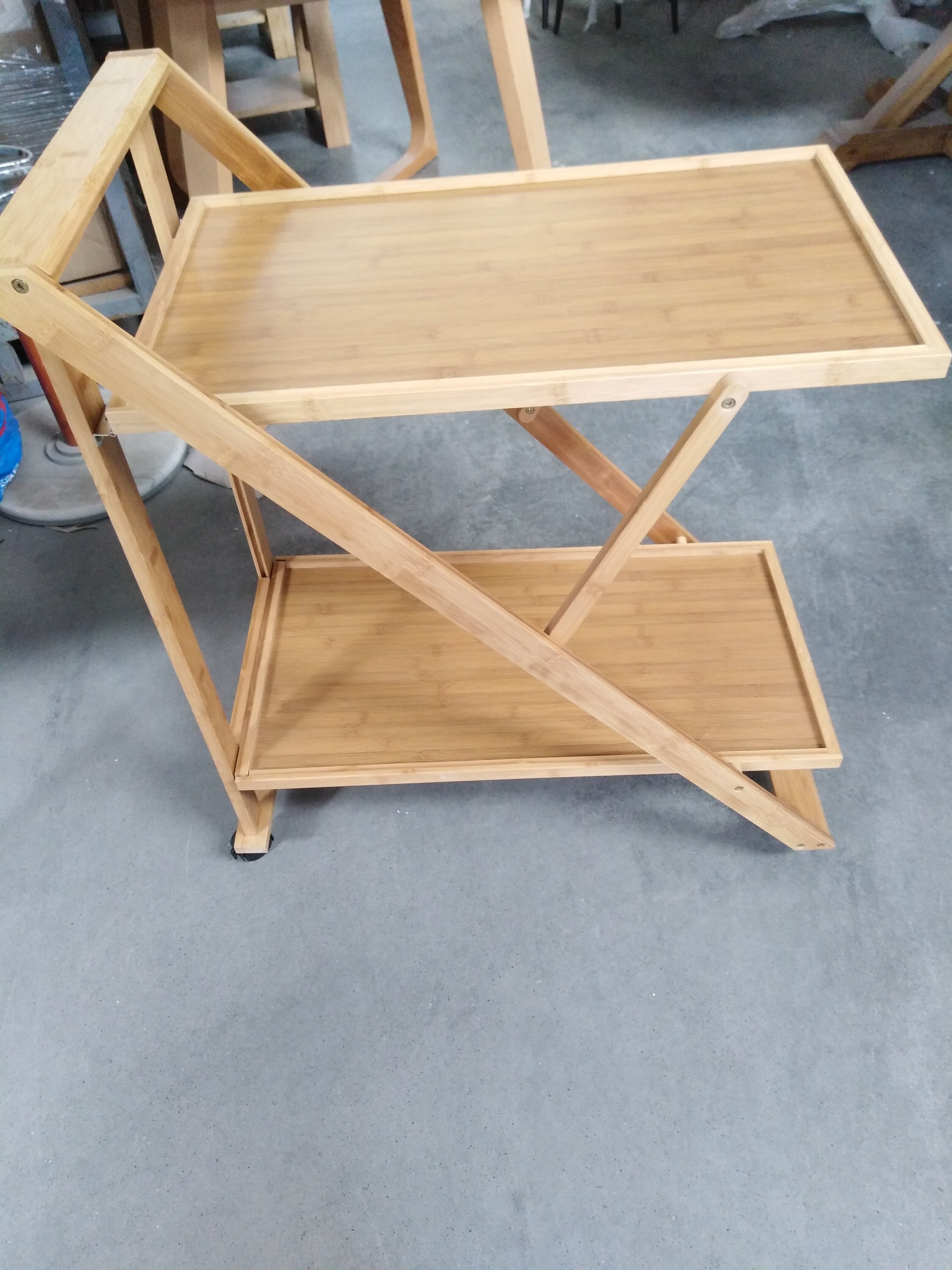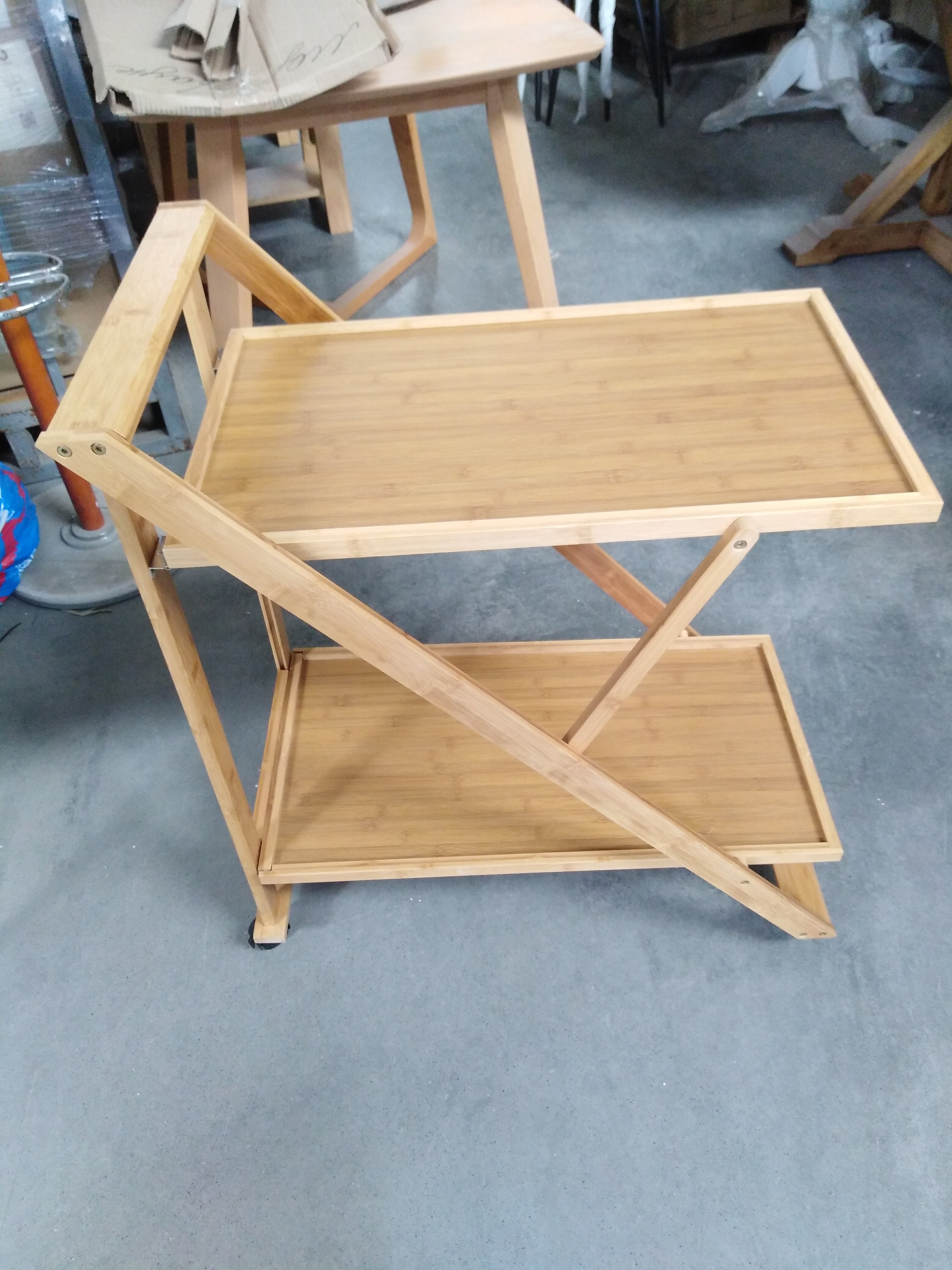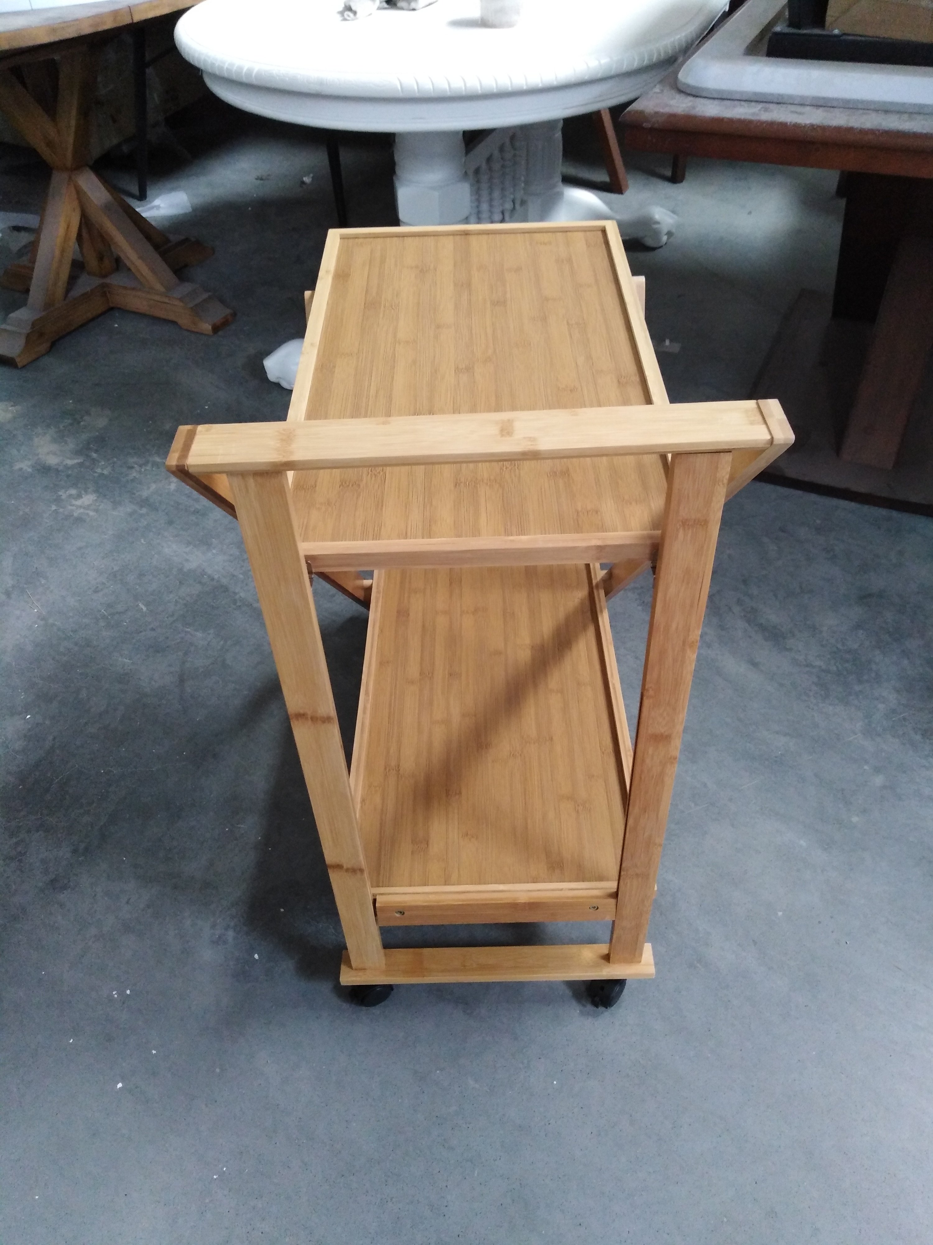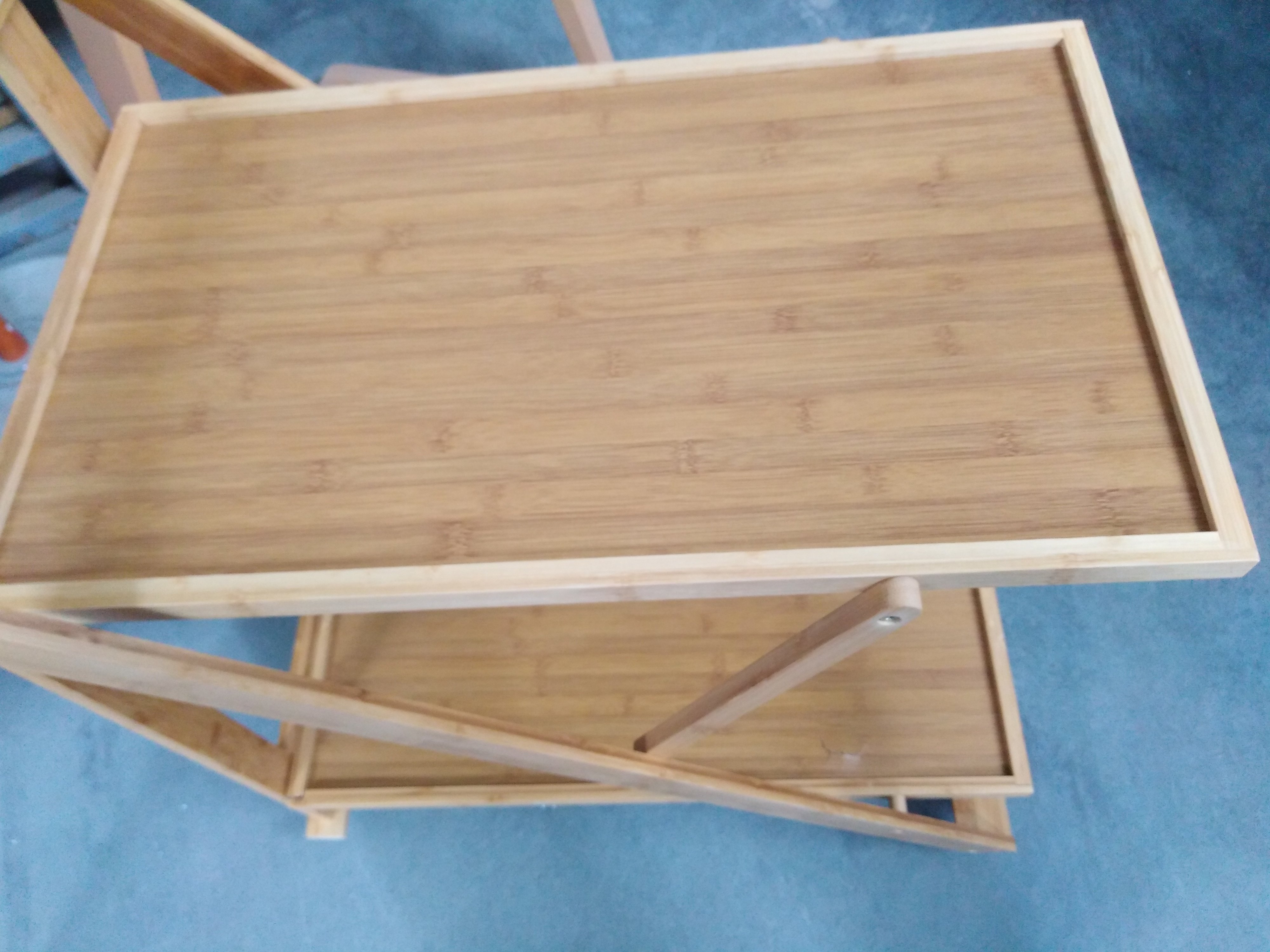 Описание товара без дефектов: Основание на колёсиках. 2 столешницы. Материал: прессованный бамбук. Цвет: натуральный. Размеры: 72х42х81,5 см