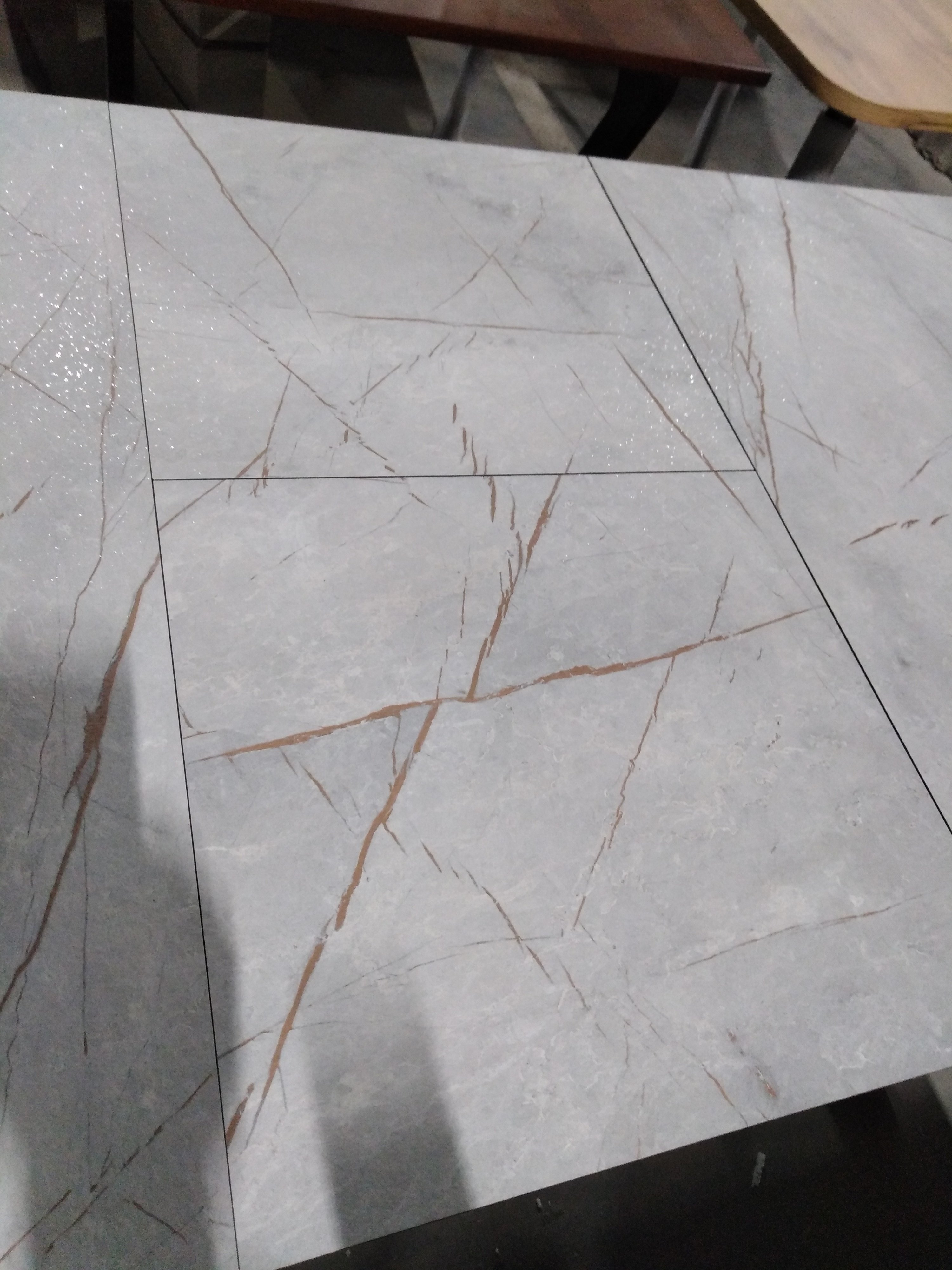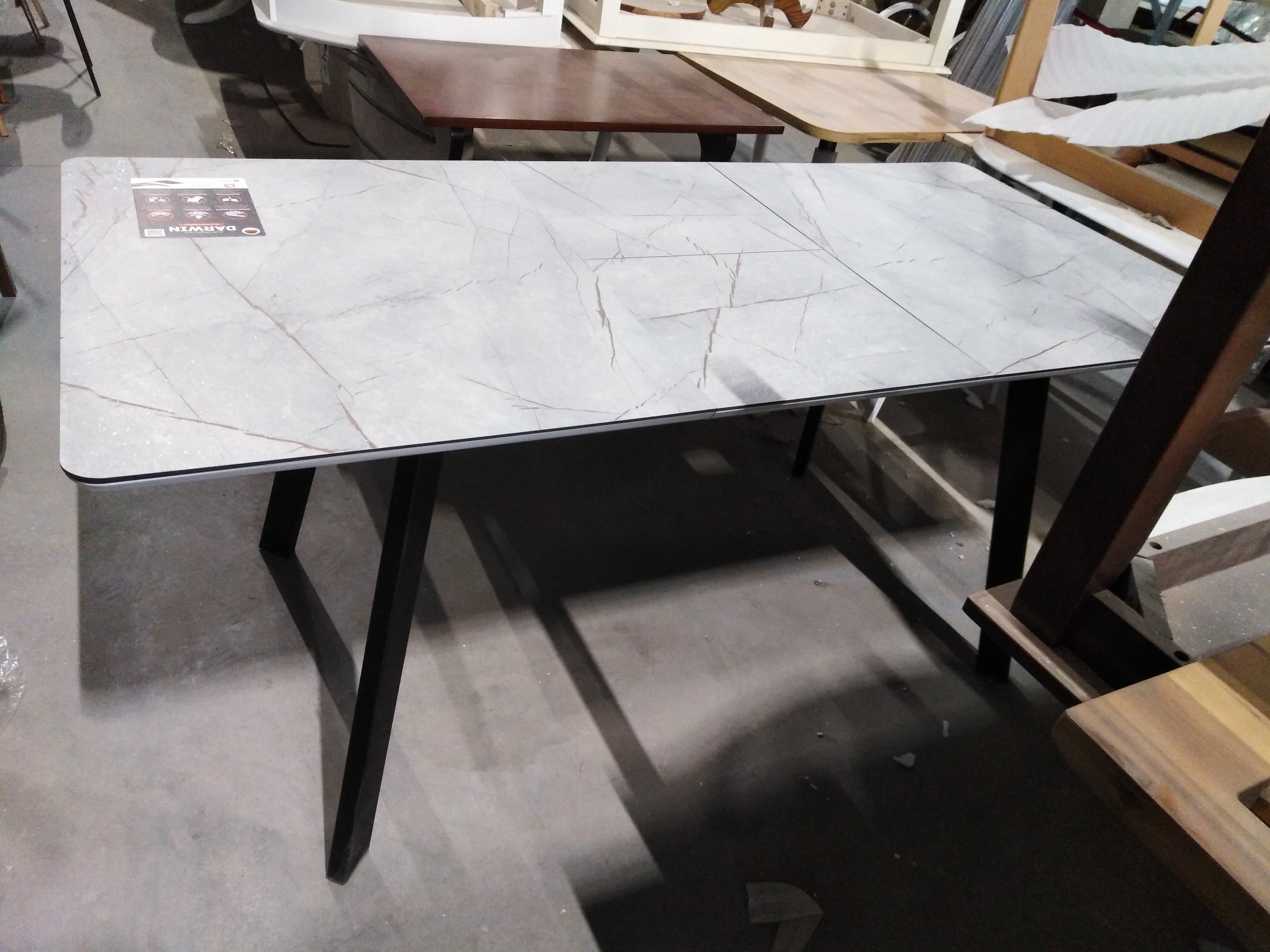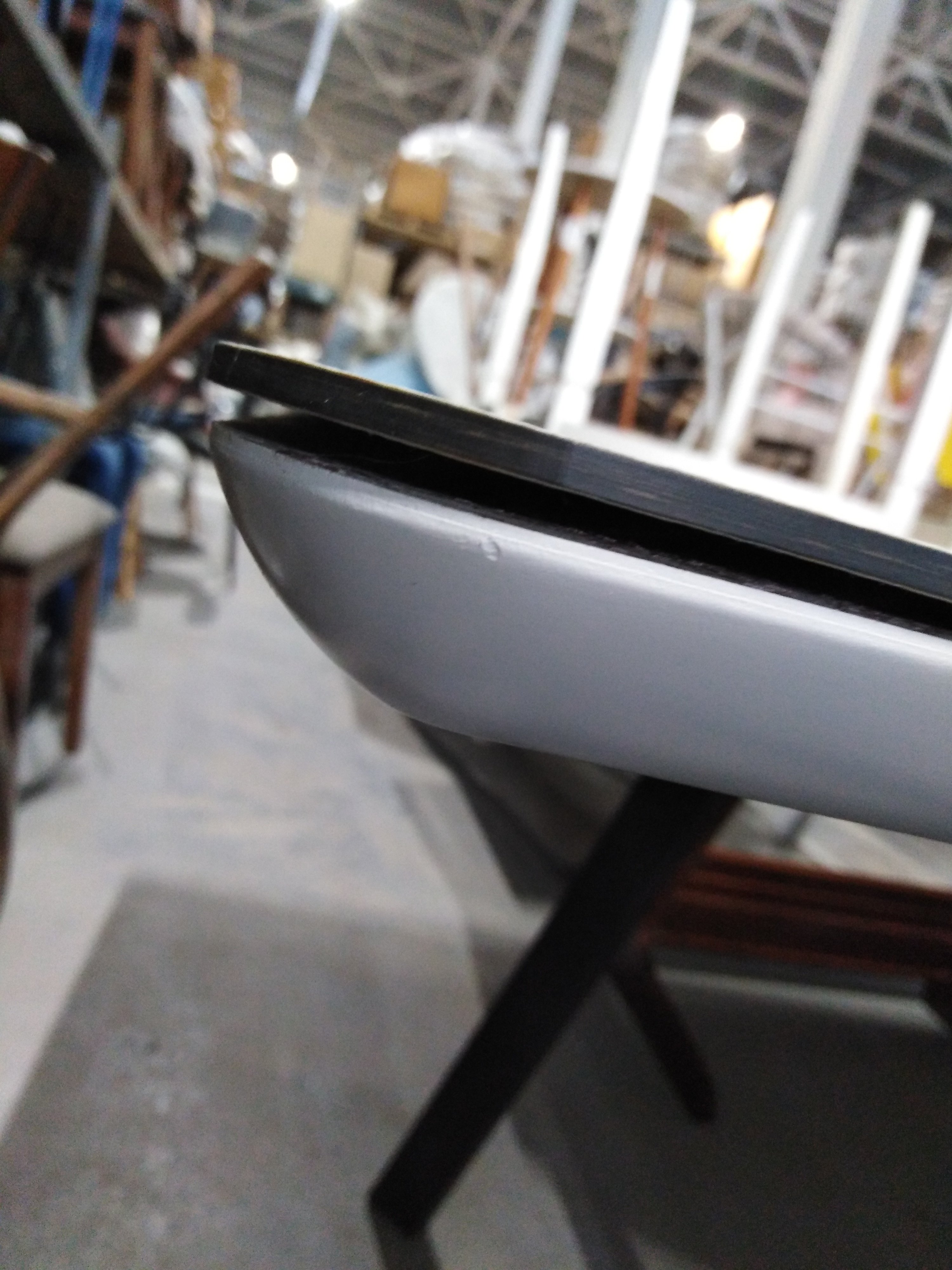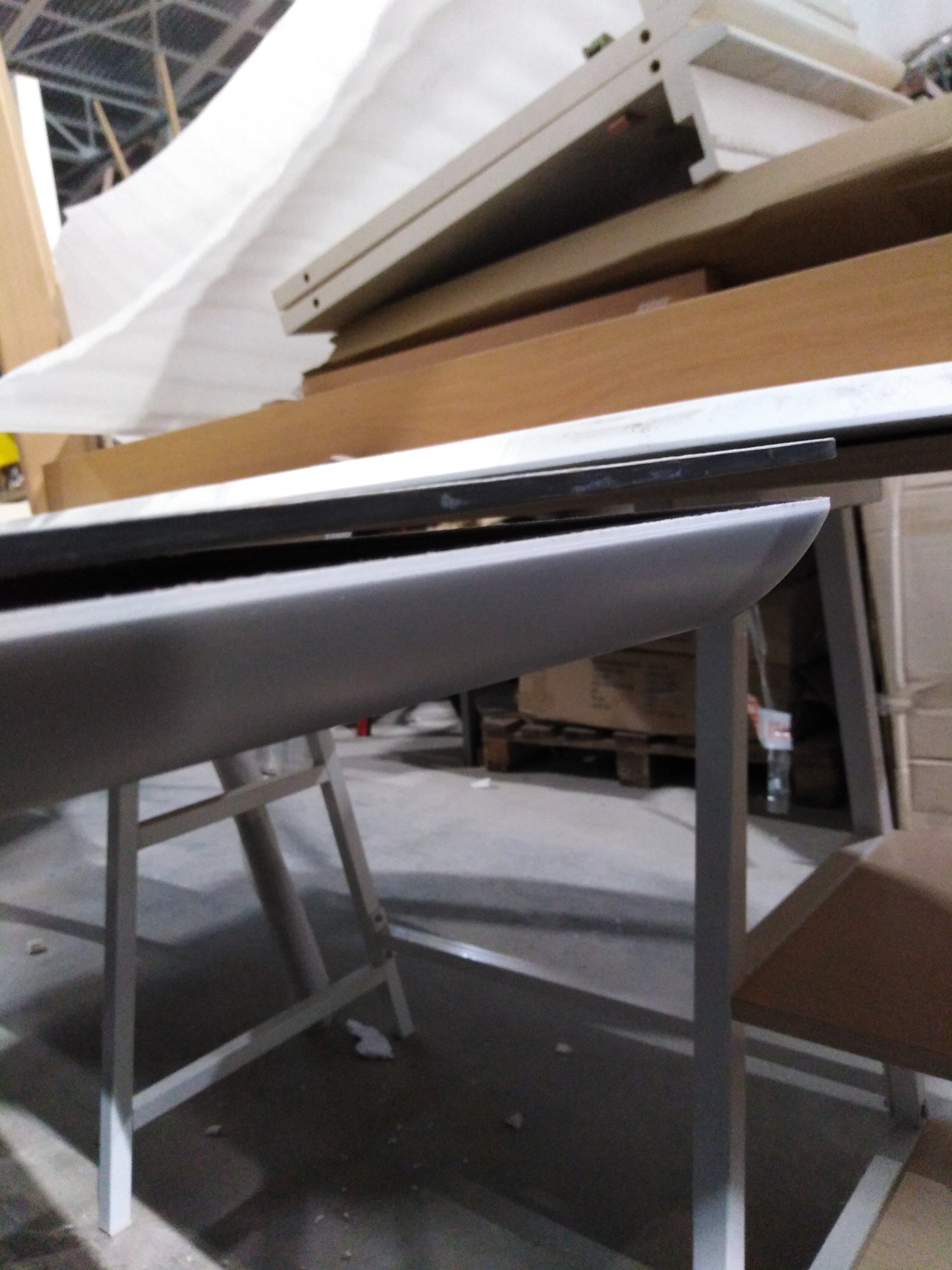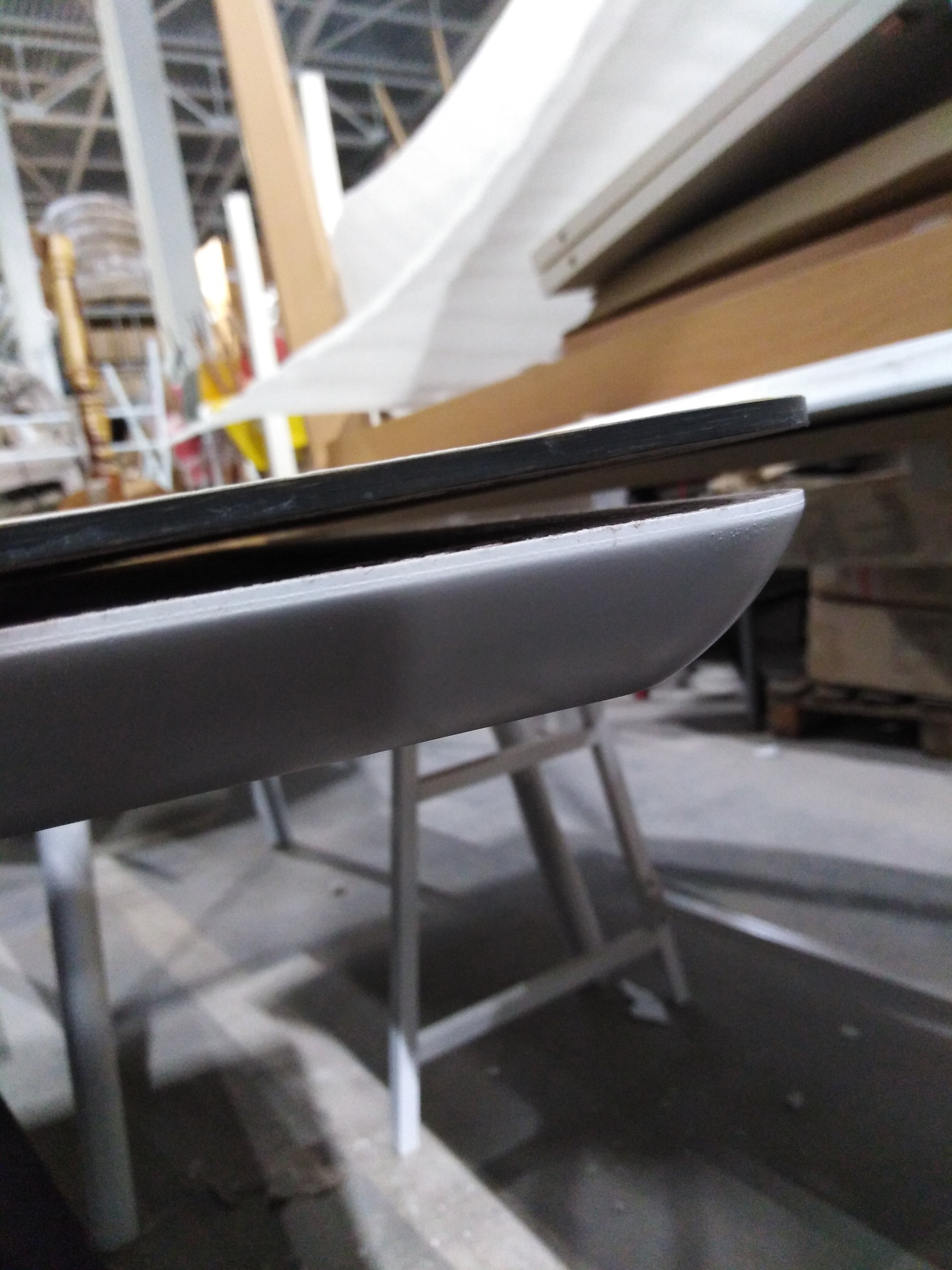 Описание дефекта: стол стоит в собранном виде на экспозиции , Отклеился мрамор на столешнице.
