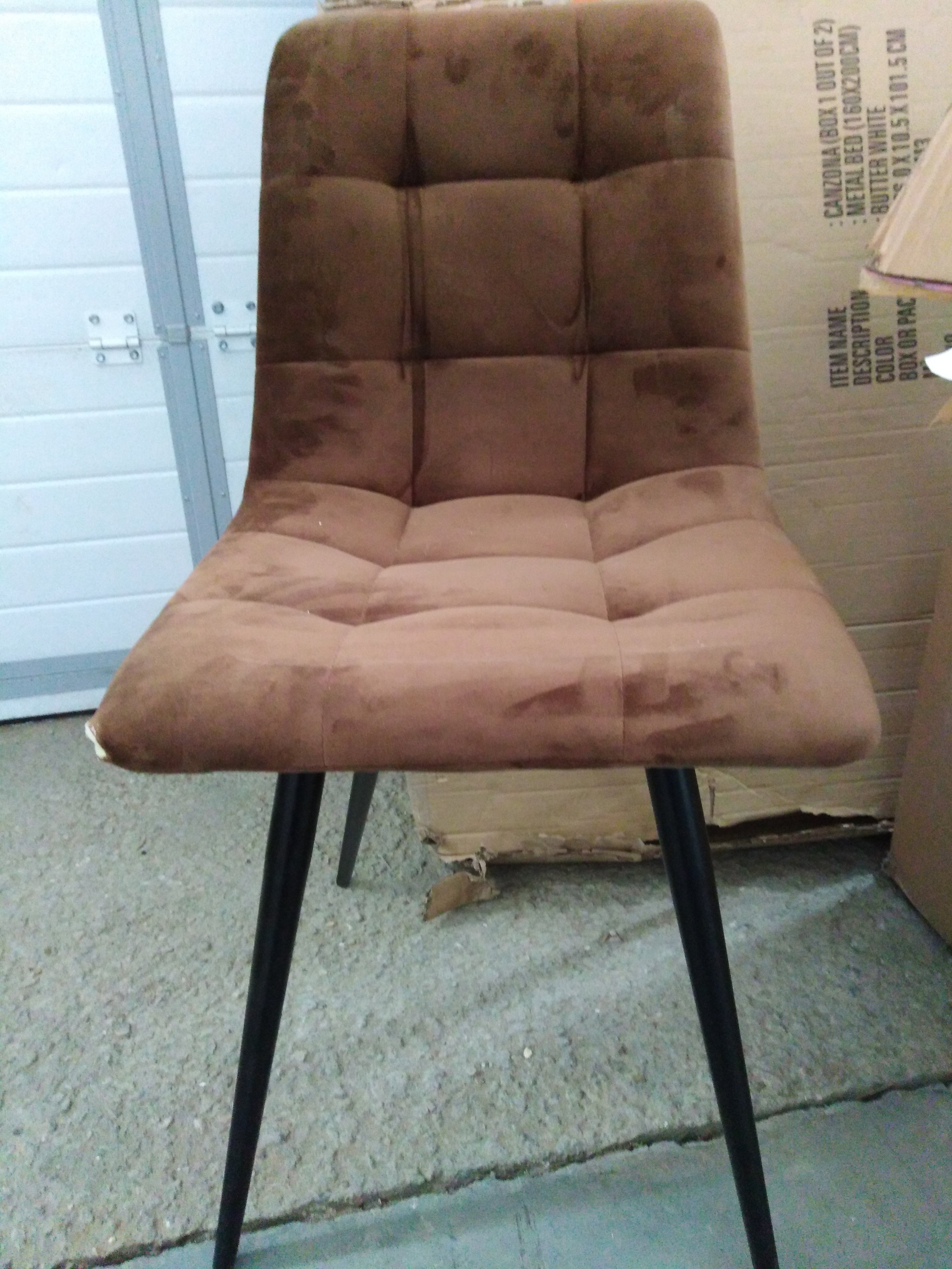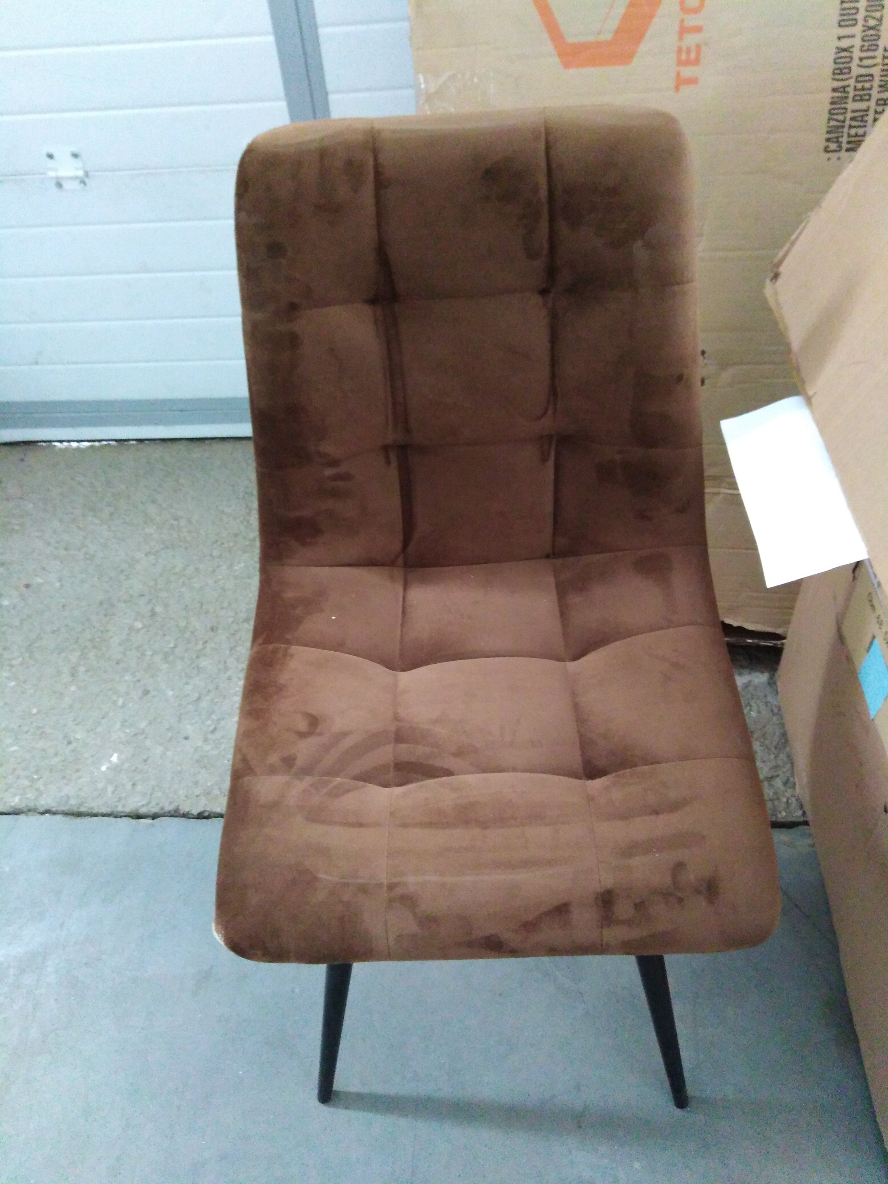 Описание товара без дефектов: Удобный и практичный дизайн стула CHILLY из коллекции Modern позволит ему вписаться практически в любой интерьер. Стул можно расположить в гостиной, кухне или столовой. Он хорошо подойдет для обстановки городской квартиры, загородного дома, кафе или ресторана. Тонкие металлические ножки с порошковым покрытием, стеганая тканевая обивка и лаконичные формы стула идеально соответствуют концепции современного стильного пространства. Мягкое сиденье и спинка позволяют комфортно расположиться на длительное время. Практичная тканевая обивка коричневого цвета отличается устойчивостью к износу и долговечностью, благодаря чему стул не требует специального ухода и будет долгое время радовать вас своим первоначальным видом. Монолитный каркас изделия выполнен из многослойного гнутоклееного шпона толщиной 10 мм. Наполнение - комбинация пенополиуретанов различной плотности.