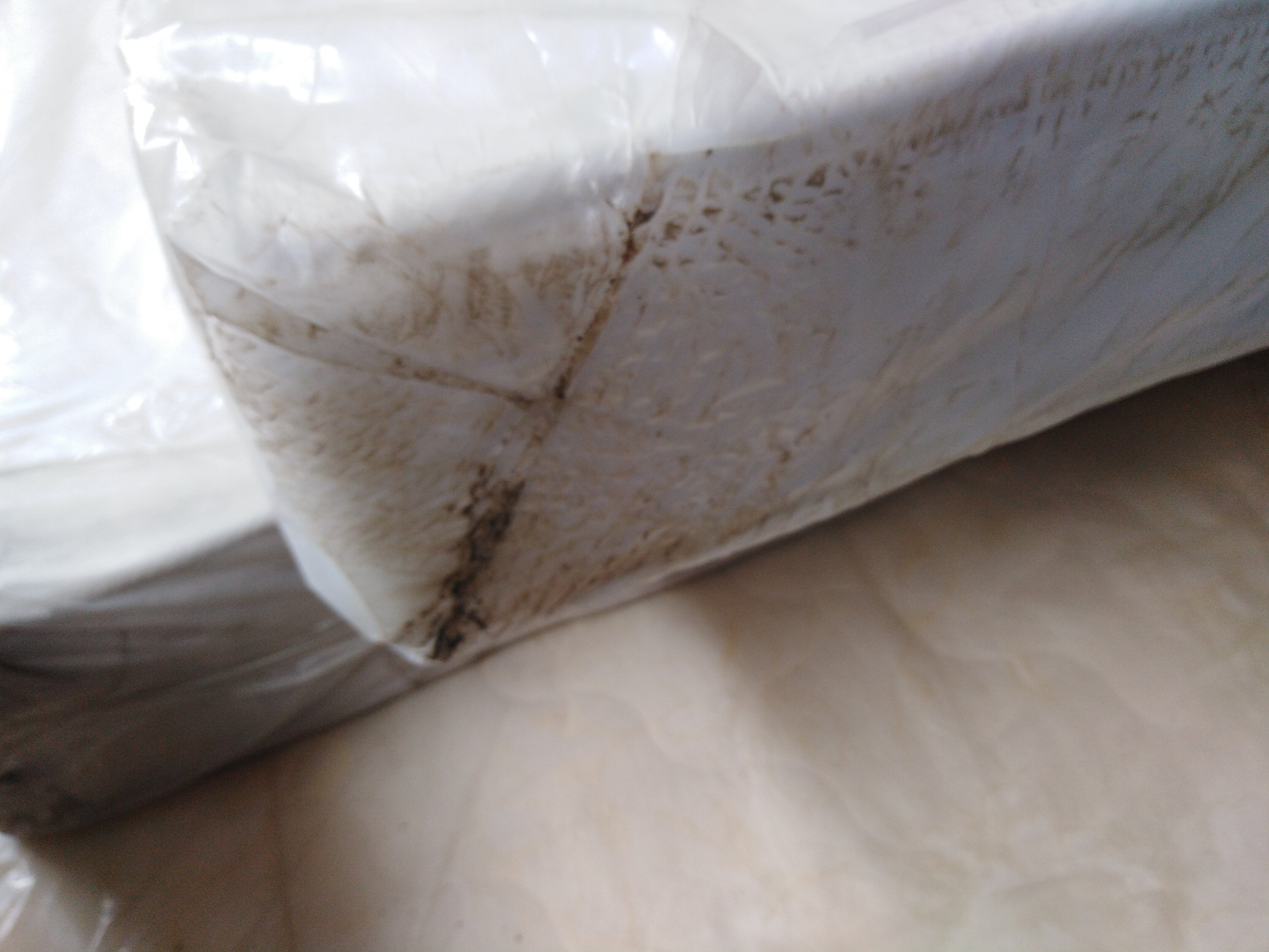 Описание дефекта: нарушена упаковка, желтые пятна, сильные загрязнения, возврат с Ростова
