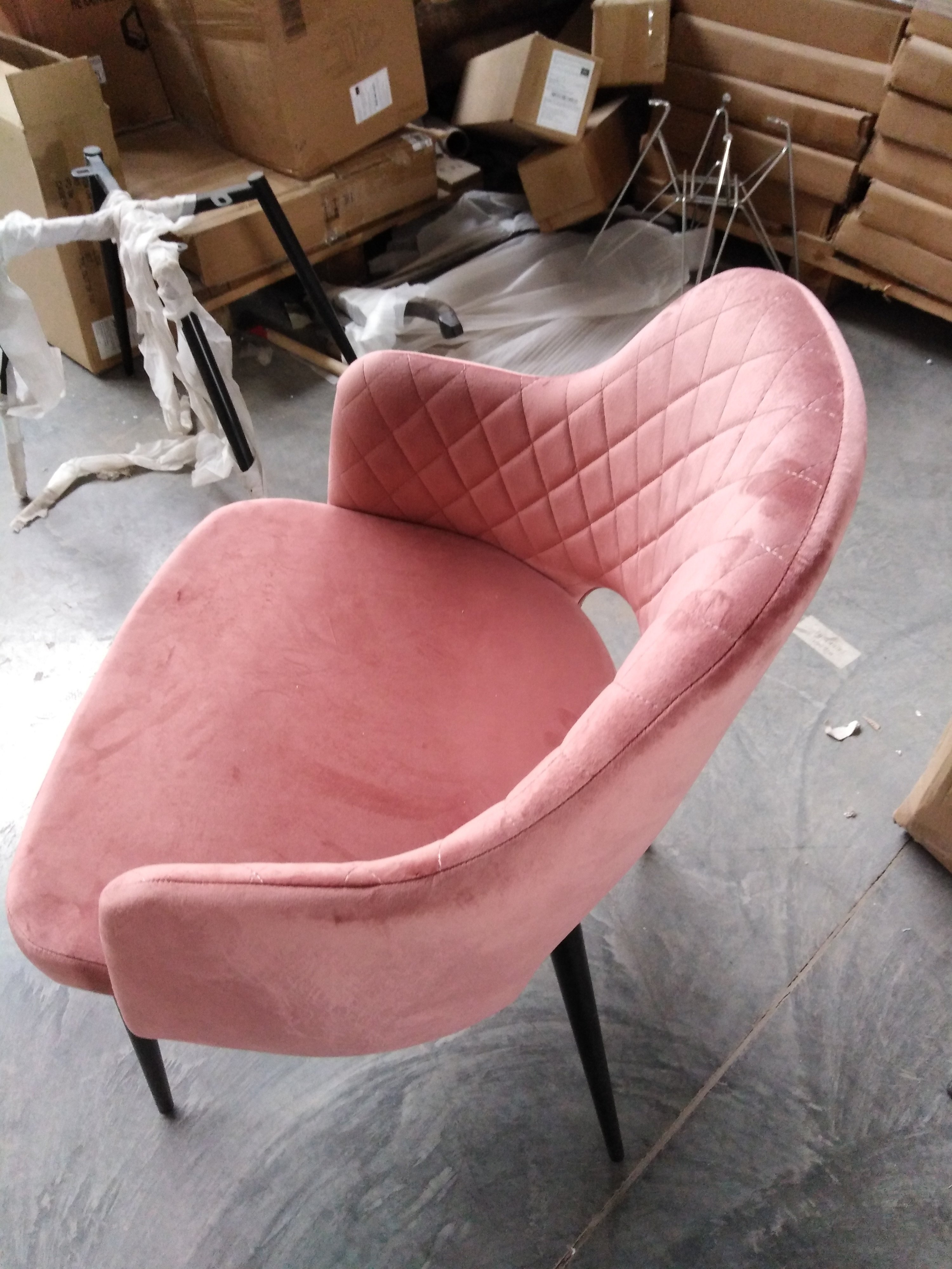 Описание товара без дефектов: Удобный и практичный дизайн кресла VALKYRIA из коллекции Modern позволит ему вписаться практически в любой интерьер. Кресло можно расположить в гостиной, кухне или столовой. Подчеркнутый цветовой контраст изделия и его лаконичные формы идеально соответствуют концепции современного стильного пространства. Простая форма, стеганая обивка и черные металлические ножки придают креслу особую привлекательность, оригинальность и визуальную легкость. Мягкое сиденье и спинка позволяют комфортно расположиться на длительное время. Практичная тканевая обивка коралловго цвета отличается устойчивостью к износу и долговечностью, благодаря чему кресло не требует специального ухода и будет долгое время радовать вас своим первоначальным видом. Каркас кресла изготовлен из многослойного гнутоклееного шпона толщиной 10 мм.